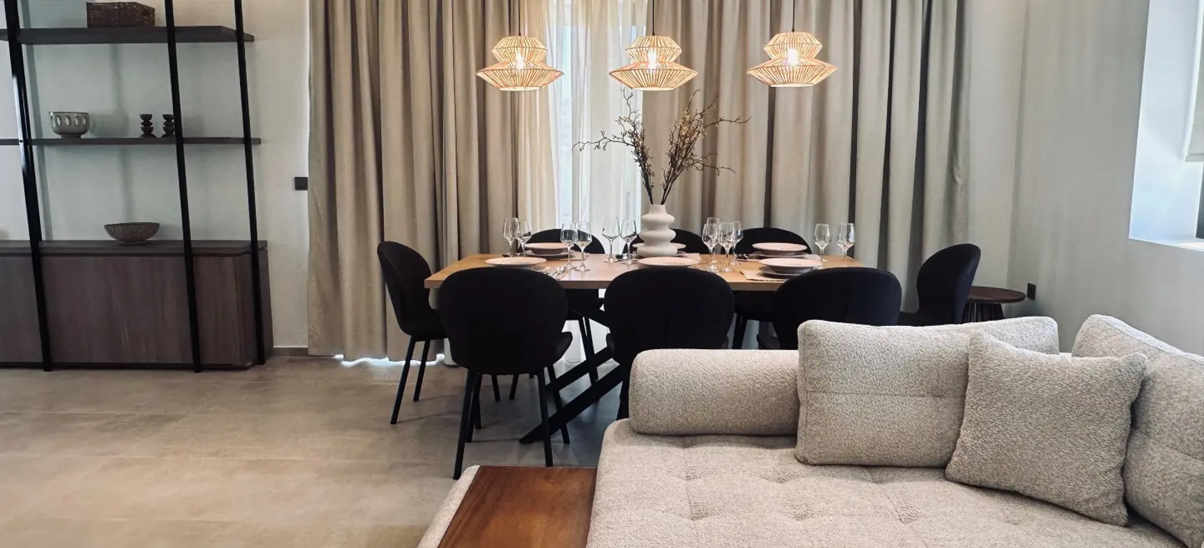Every detail within the villa is meticulously crafted to provide a luxurious experience. Modern amenities, including a fully equipped kitchen, ensure a comfortable stay. Unwind in the stylish living area or savor meals in the elegant dining room.