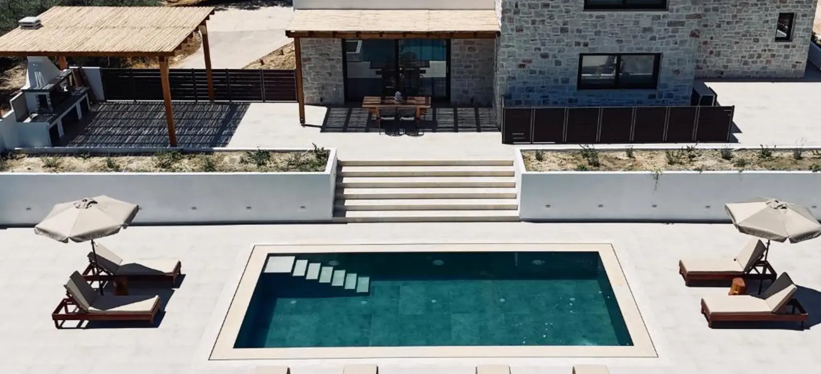 Zakynthos is the most southern of the Ionian Islands and one of the most popular Greek islands. The island has three distinct geographical areas: the northwest is mountainous with quaint traditional mountain villages; the central region is a fertile plain rich with olive groves and vineyards and the southeast is characterised by beautiful beaches. Rich in beauty and tradition, both historical and cultural, Zakynthos, or Zante as it is also called, is the "ideal" of any traveller. The villa is located close to Zakynthos town, in the area of Marineika just above Tsilivi village and beach. This part of the island offers total privacy in peaceful, green surroundings. Olive trees, vineyards and pine trees surround the property creating a natural shelter from the sounds of the nearby roads. The villa is secluded but also close to amenities such as super markets, taverns and shops.