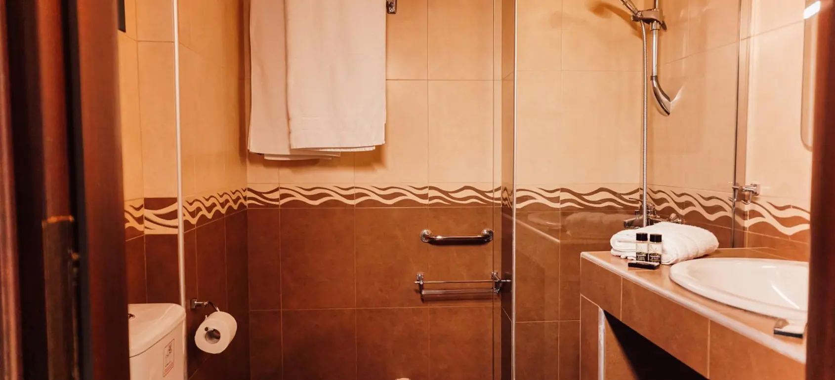 Executive Suite Sea View The 60 sqm Executive Sea View Suite in Kyparissia has 2 bathrooms. Room Facilities: Balcony, Sea view, Pool view, Satellite channels, Safe, Air conditioning, Heating, Fireplace, Tile/Marble floor, Wardrobe/Closet, Hairdryer, Toilet, Bathroom, Bathtub or shower, Refrigerator.