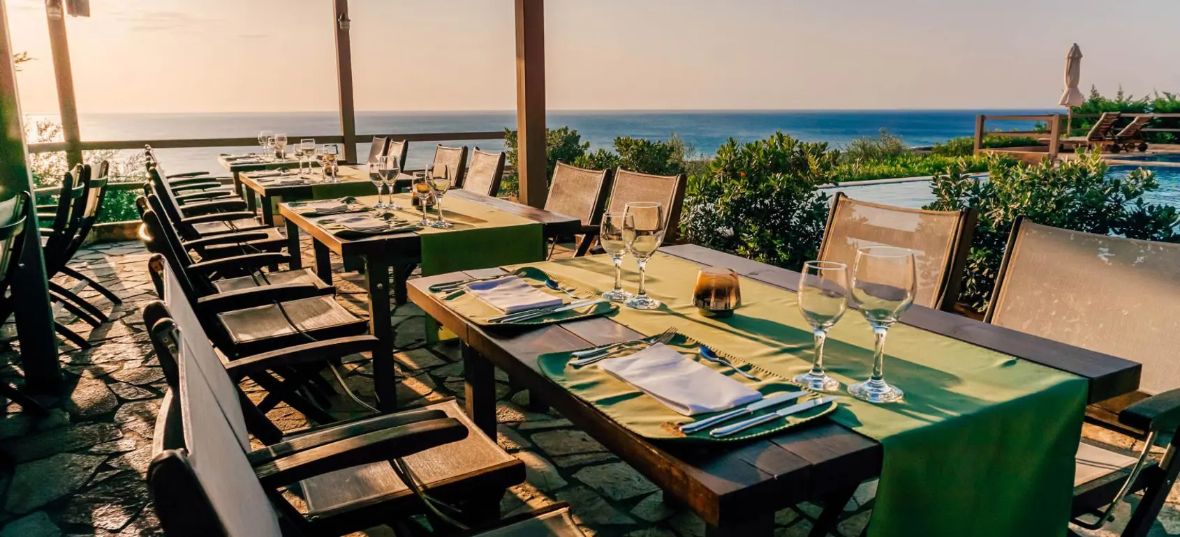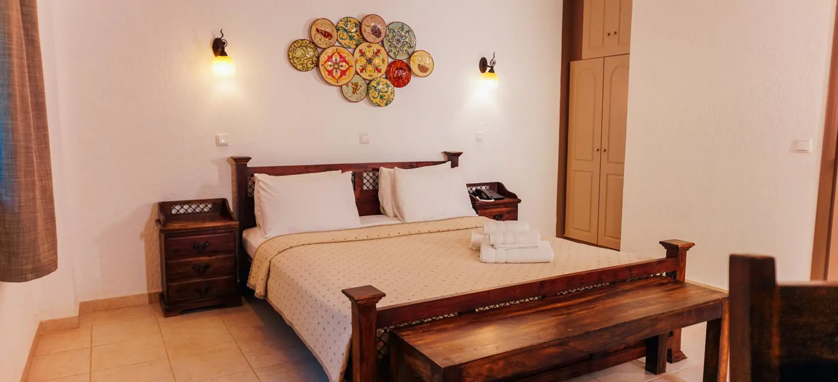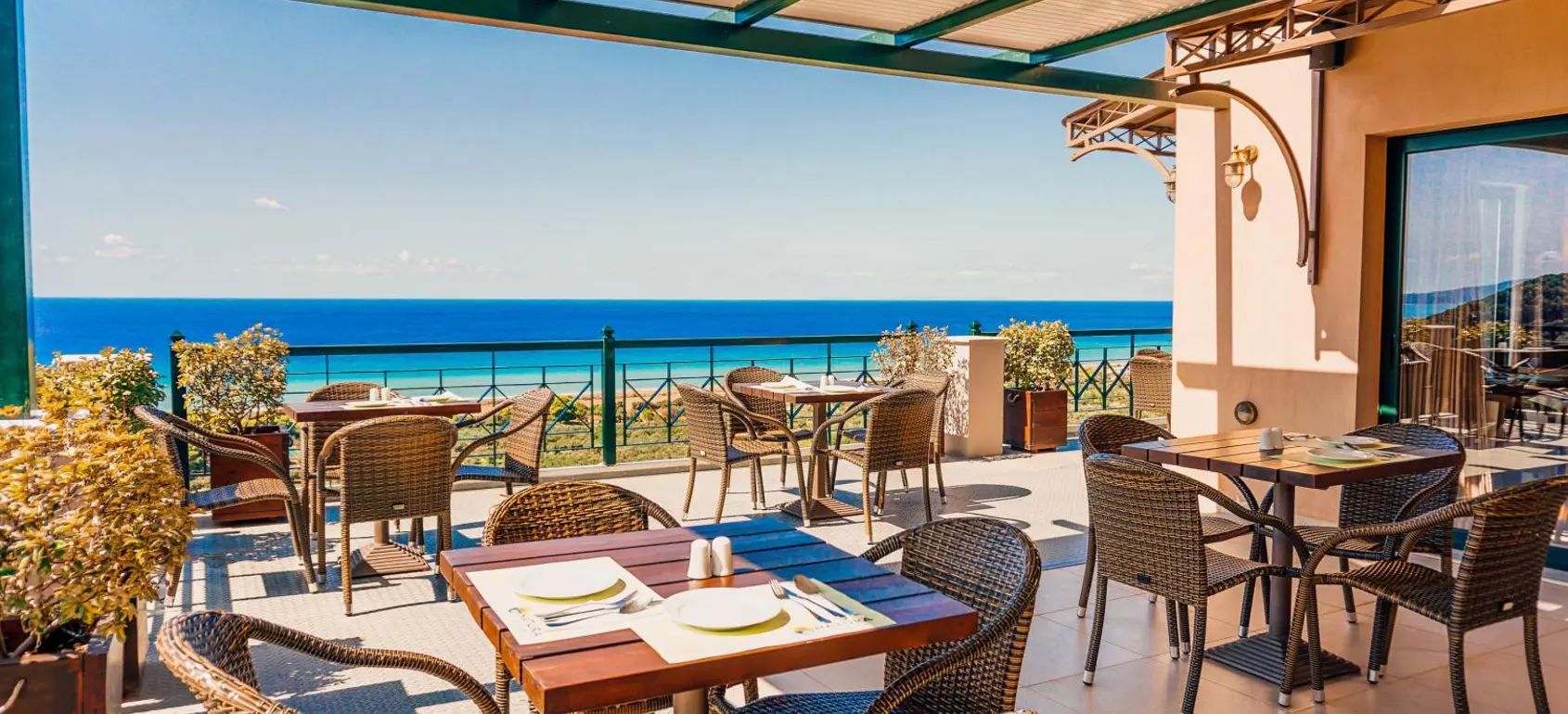The choice of the specific location was made after a lot of thinking, because the owners wanted all the rooms to have a view of the endless blue of the Ionian Sea and be located on a hill, firstly for the panoramic view, and secondly in order to have the ideal climate for which after all the area of the Gulf of Kyparissia is famous world-widely. So, in a hotel built in a traditional rhythm, a heartbeat away from the coastline of the longest sandy beach in Europe, the guest can enjoy the sea breeze, rest his eyes upon the eternal green of olive and pine trees, and also get acquainted with the cultural greatness and the history of thousands of years of a unique area, without having to spend a lot of time along the way. The Hotel blends perfectly with the natural environment, built as a small village in the traditional architecture of the homes in the area, hipped tile roofs, and a strong element of stone and cobblestone walkways.