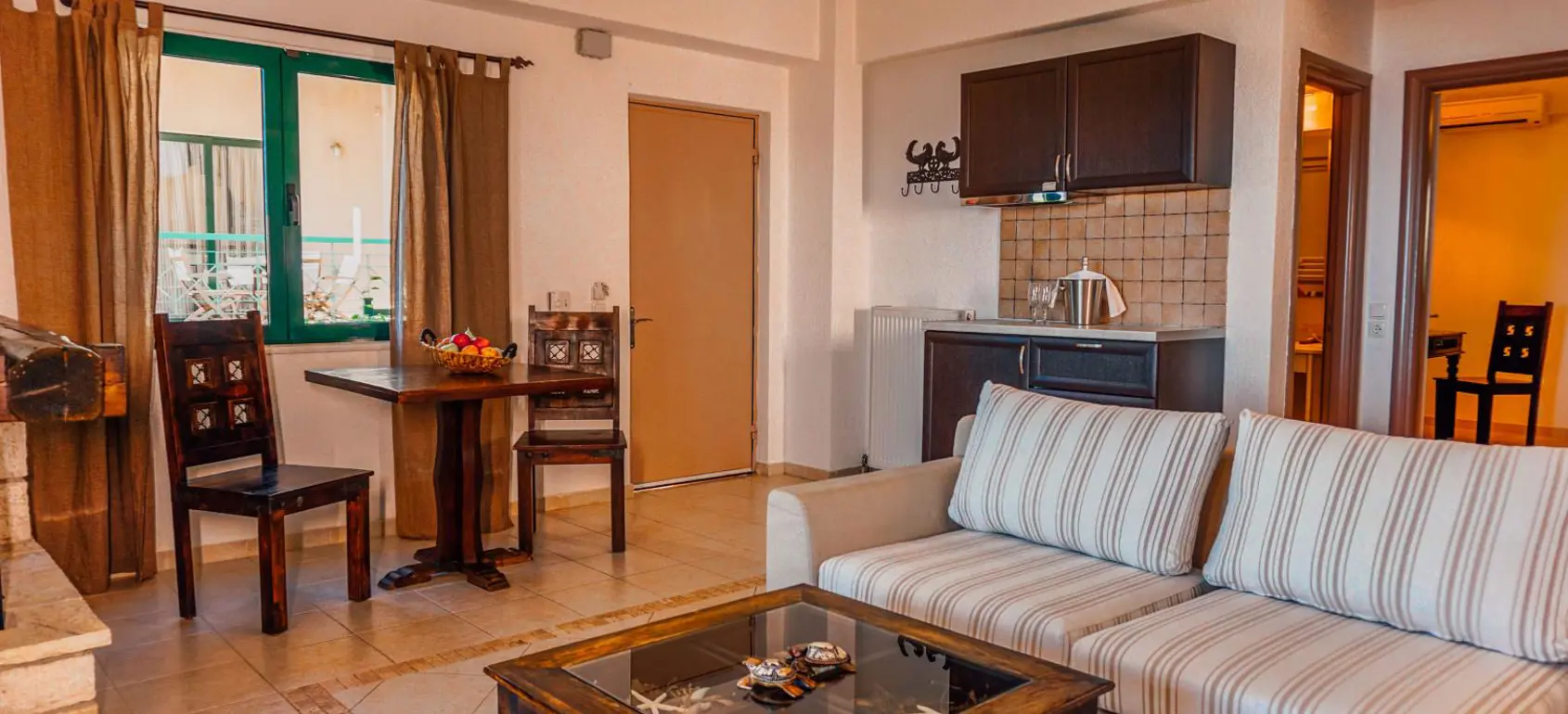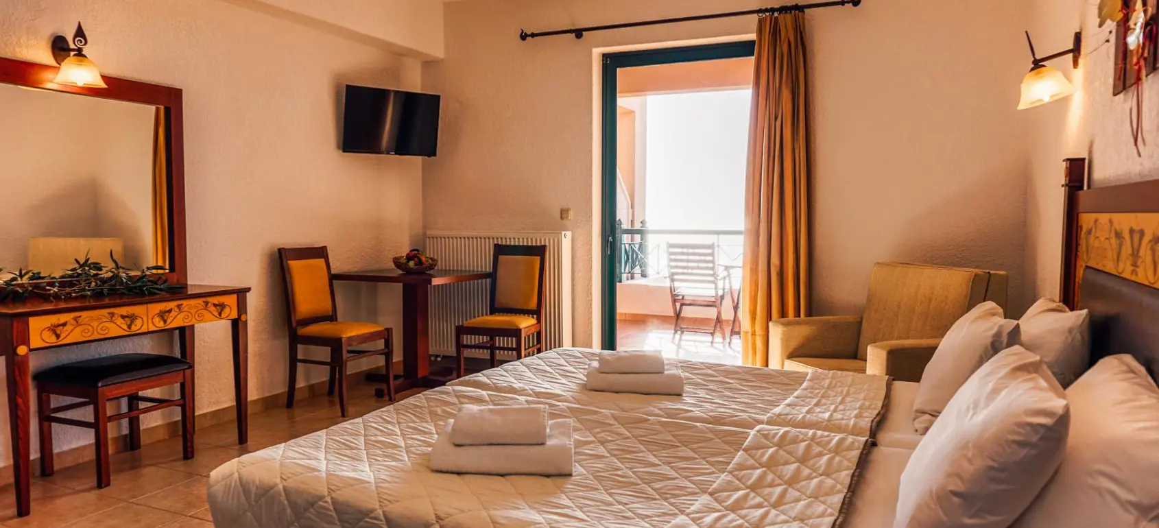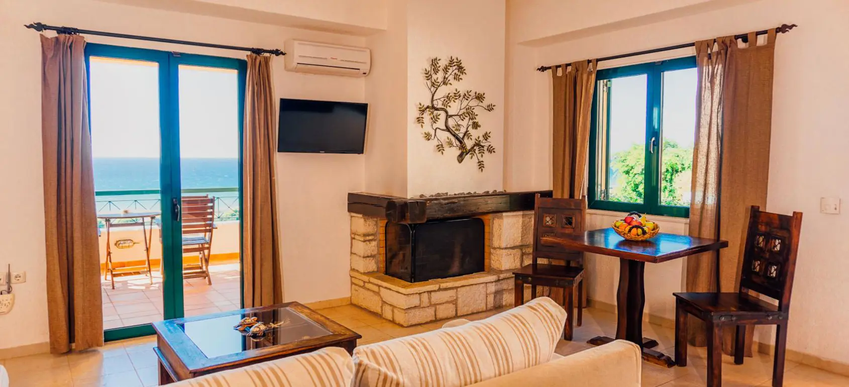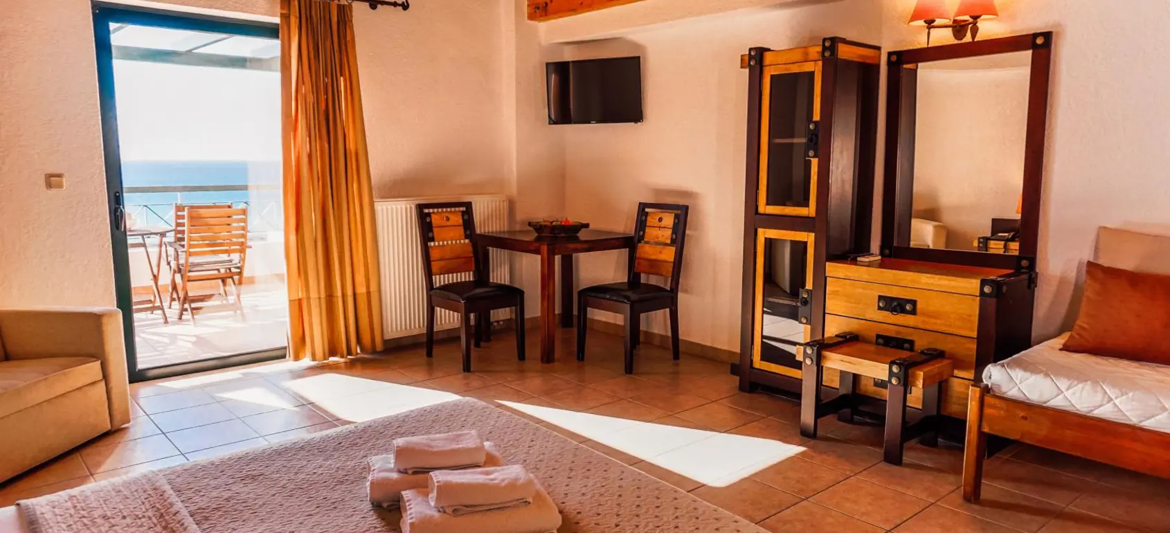 Junior Suite Sea View Junior Suite of 55 sqm at Kyparissia with Sea View. Spacious, air-conditioned apartment with satellite TV and balcony with views.