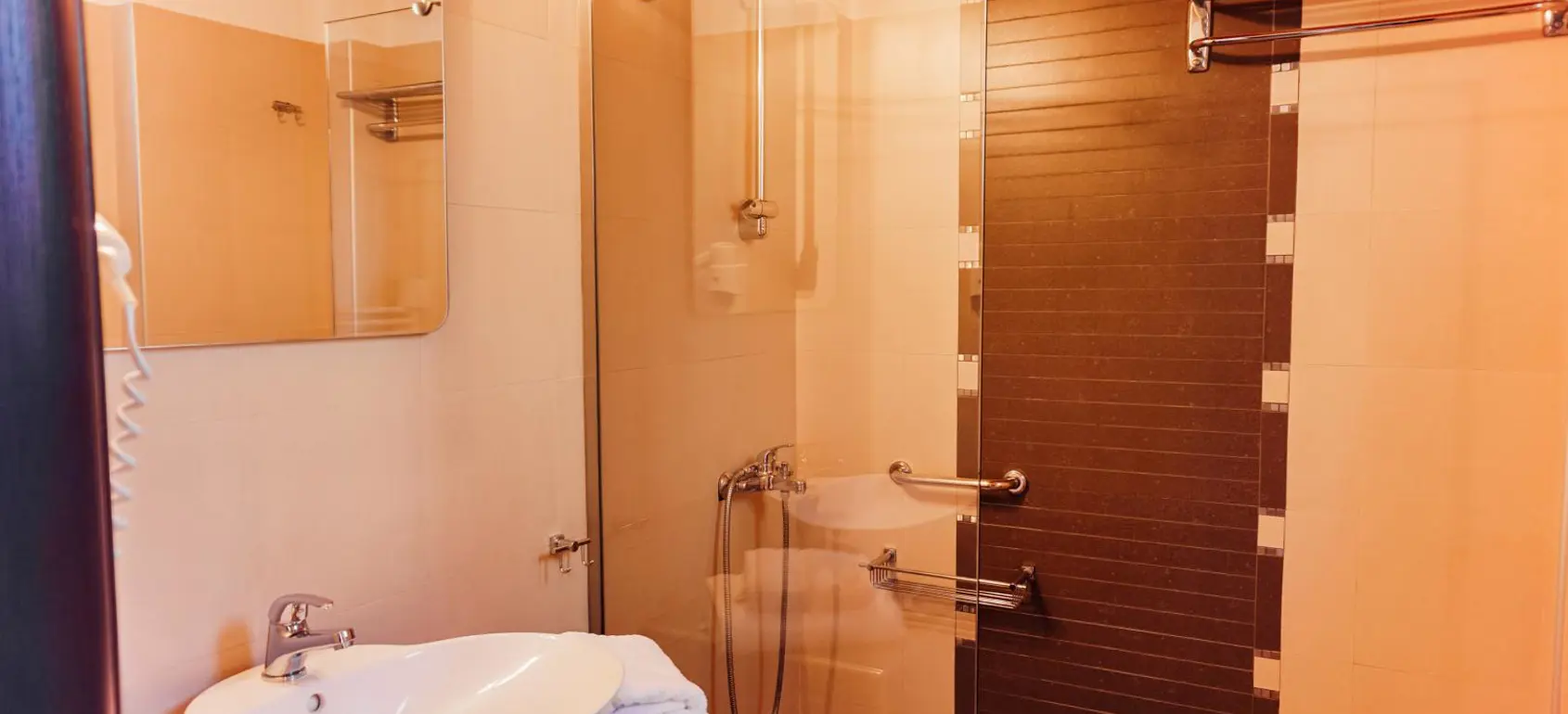 Luxury Suite Sea View Double-space room with a size of 60 sqm. It is located on the highest level of the hotel with an unhindered view to the beach of Kyparissia ‘s bay and to the town of Kyparissia as well. In one of the rooms is the main bedroom with a sunset view and the other can be used either as a living room, an office or a bedroom. The luxury suite has an elegant bathroom with a bathtub. It combines simplicity, luxury and functionality.