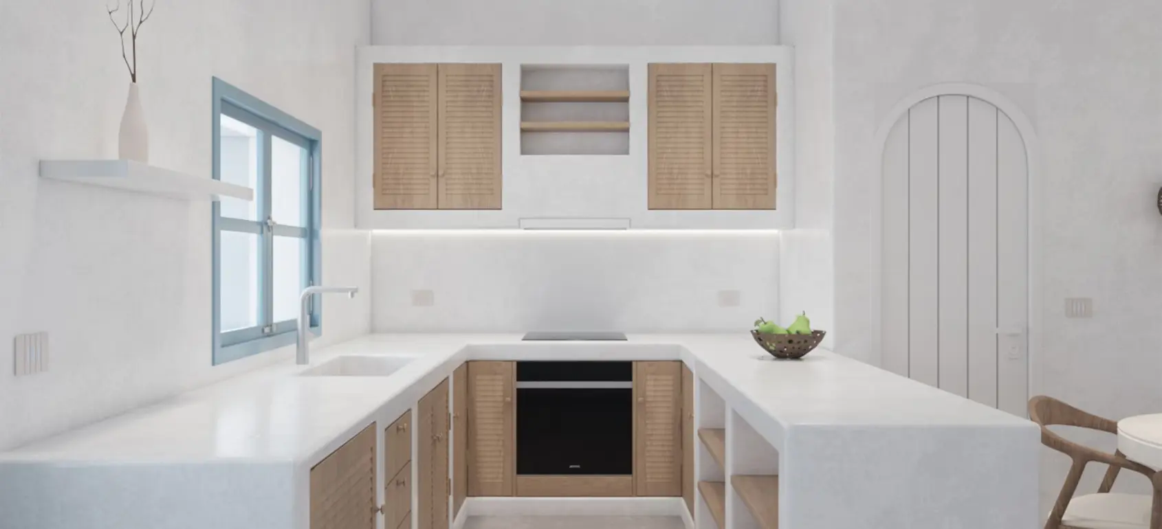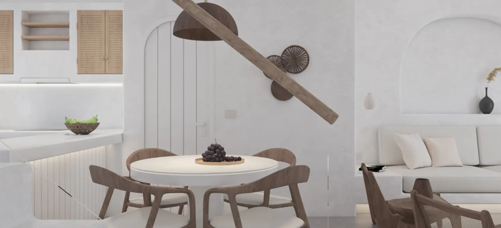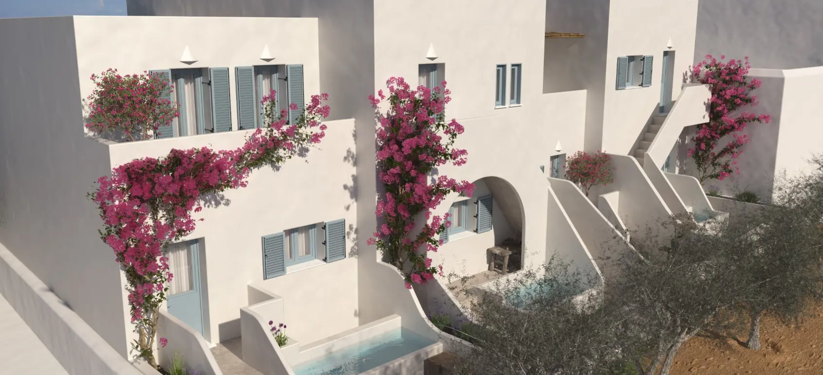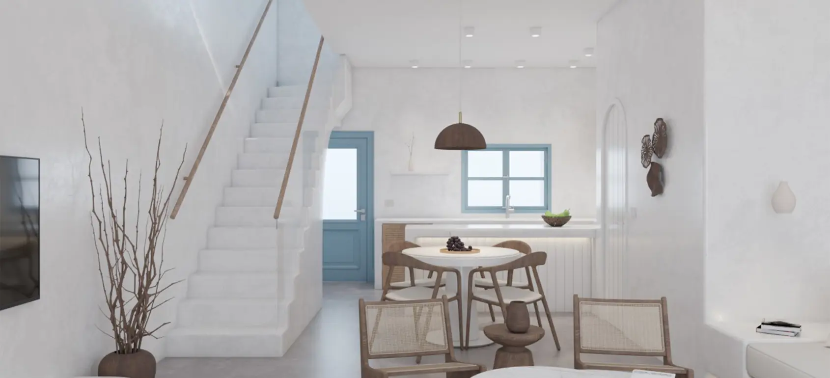 The four villas complex celebrates the main feature of the Cycladic beaches- their sun-kissed sand, soft and warm, creating outstanding color, with sunlight filling each residence with its magnificent splendor. Traditional whitewashed walls, iconic Greek marble, contemporary twists, floor-to-ceiling glass, sleek design accents, and statement fittings. Each villa boasts 4 master bedrooms, a modern kitchen, balconies, a Jacuzzi and a landscaped courtyard. Sizes range from 135sqm to 180sqm.