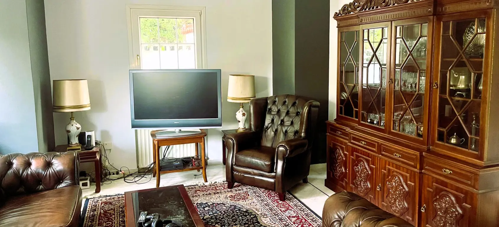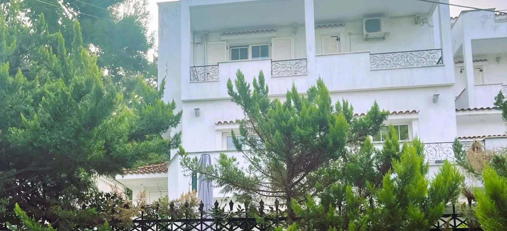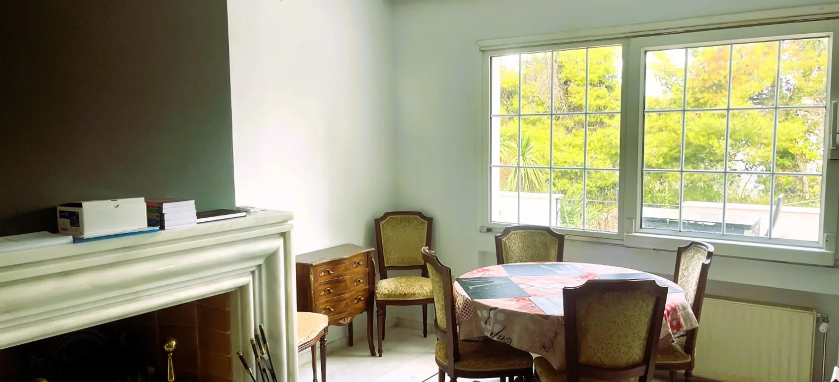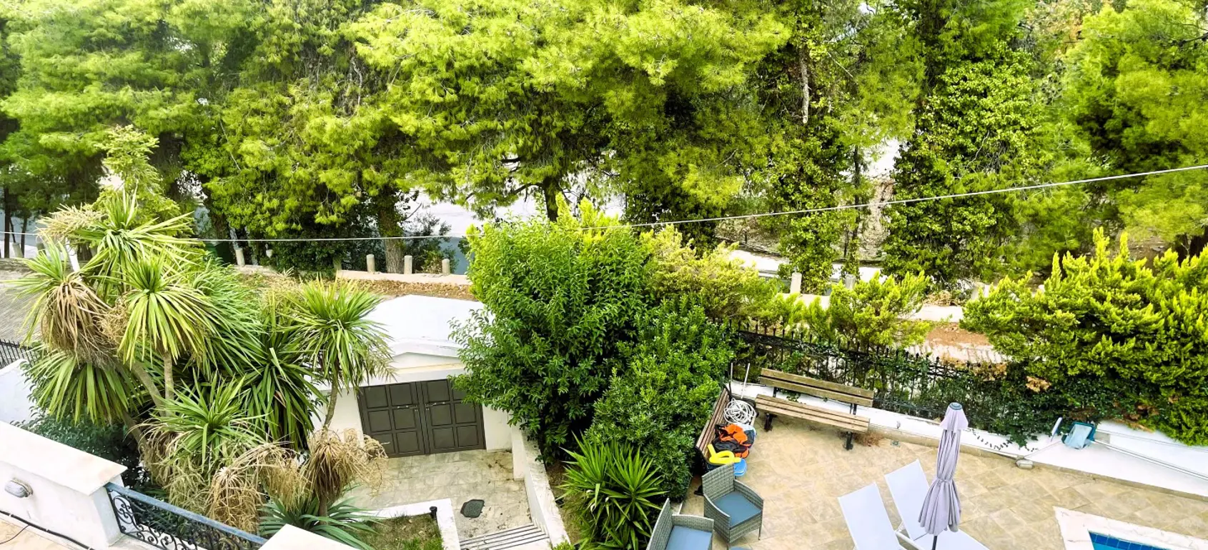 Entering to the house from the main entrance there is a large reception area. From there, there is access to the semi-basement and to the main area. The main area is divided into a living room, a dining room and the kitchen. The living room has a large fireplace lined with Pentelic marble, large double window overlooking the small opposite forest and double patio doors leading to a very large 40 sqm porch overlooking the front garden and the pool. The dining room has a double window and a door with access to the rear garden. One of the dining room walls is lined with carved wood panels and a mirrored door which leads to a large kitchen. The kitchen is fully fitted, it has a large closed storage space. Between the main area and the 1st floor, there is a triple wardrobe and a 16 sqm closed storage space with a big window for natural lighting.
