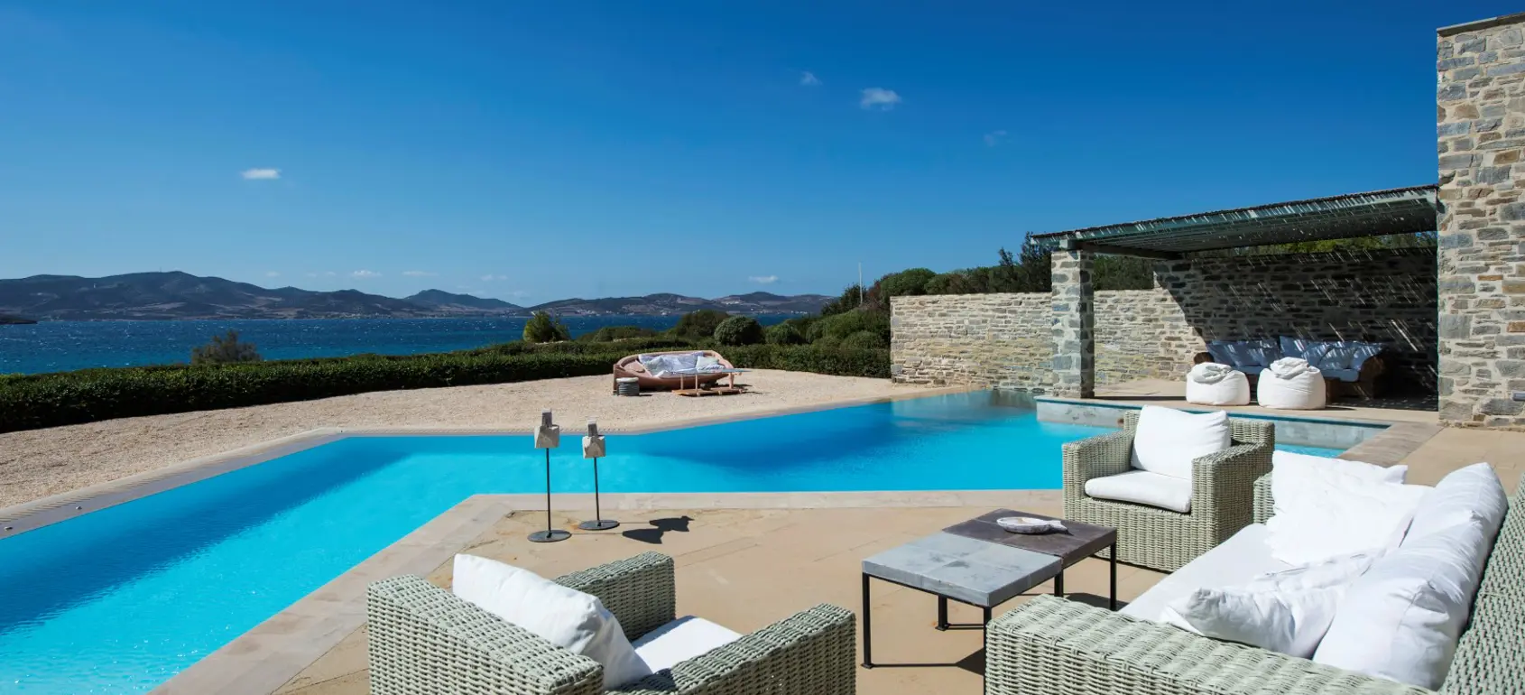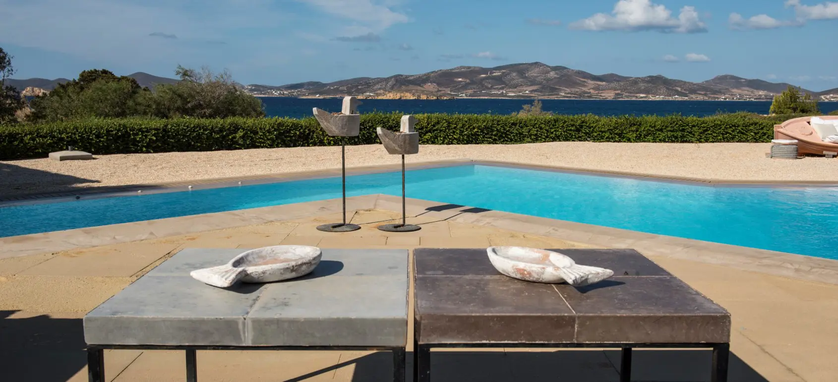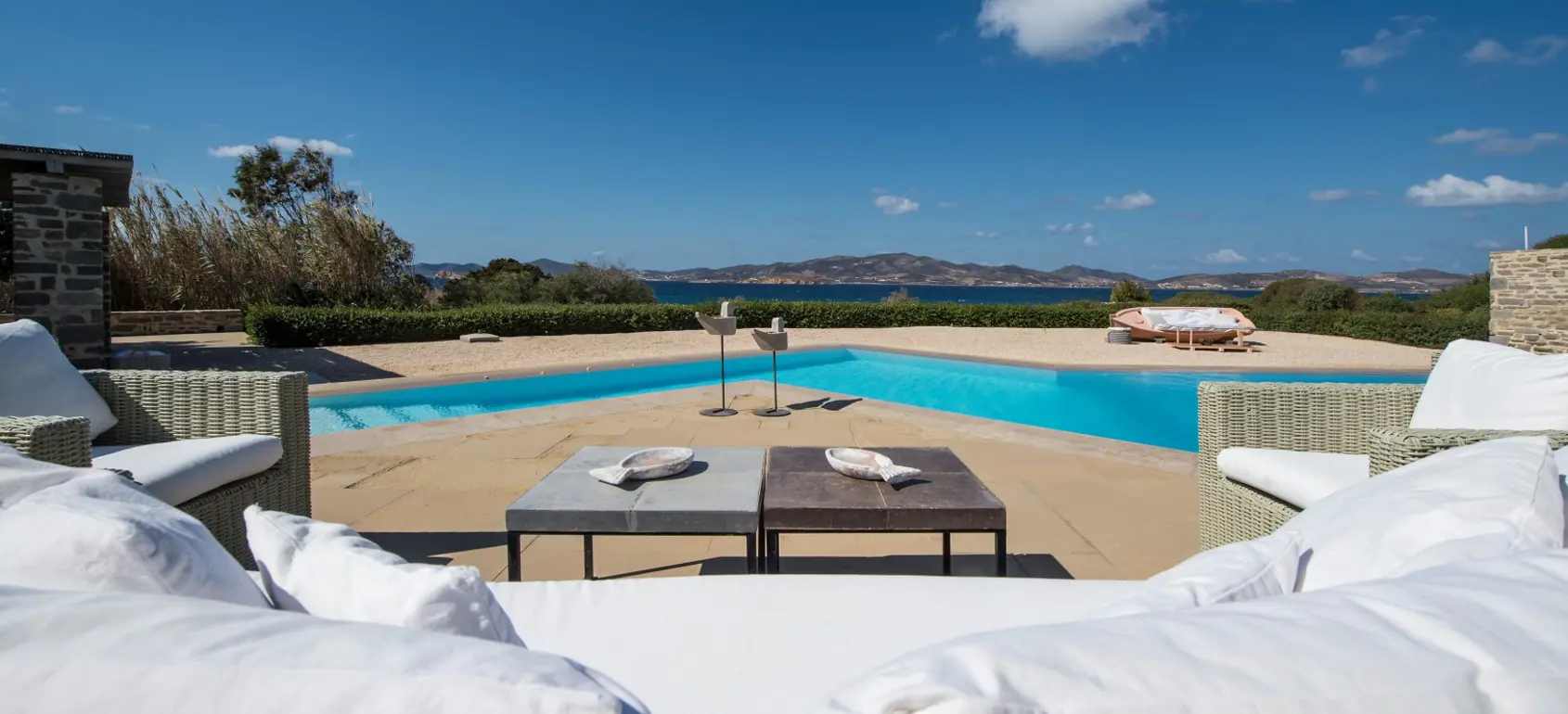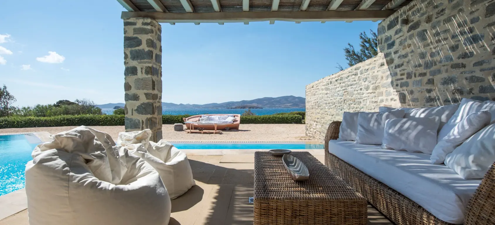 The outdoor area features a large swimming pool with amazing sea views. All outdoor relaxing spaces and verandas offer amazing sea views, inviting you to enjoy the beauty of the Greek light!