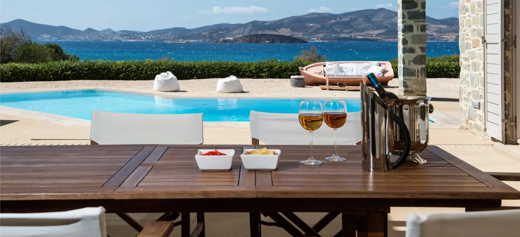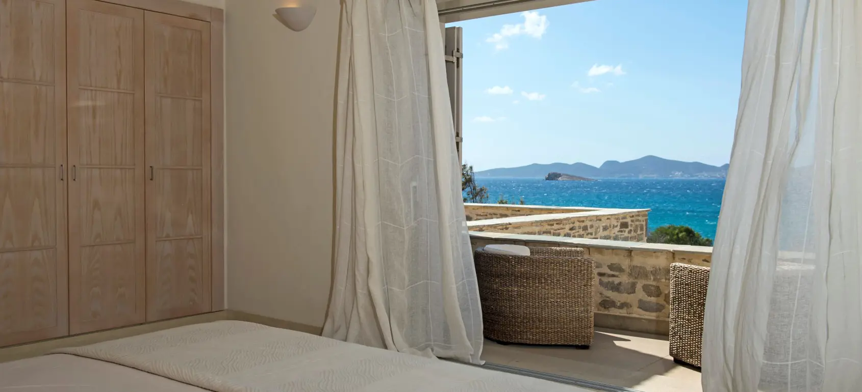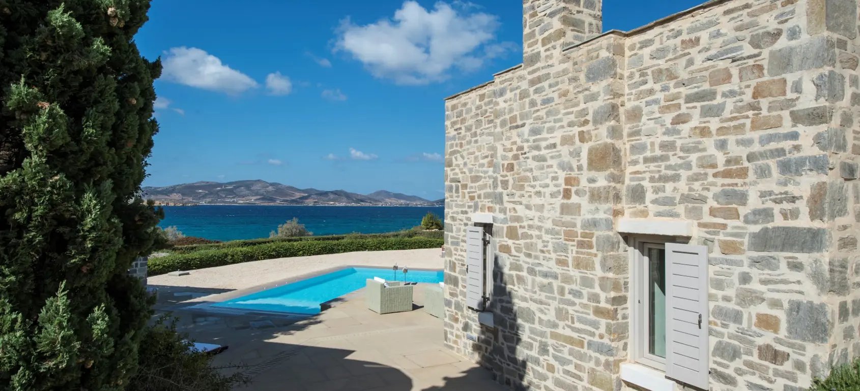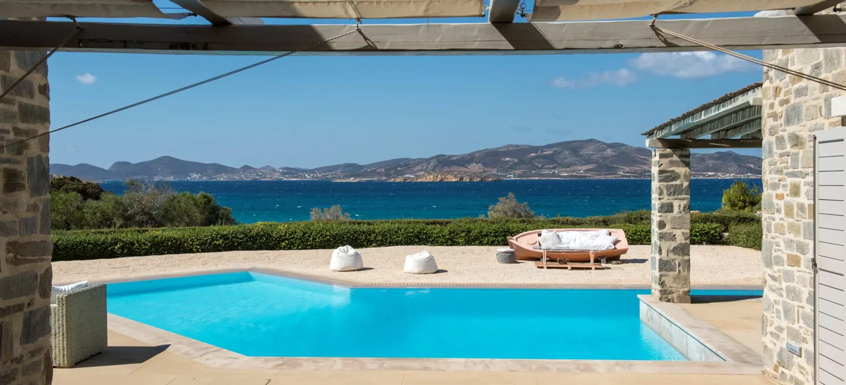 The outdoor area features a large swimming pool with amazing sea views. All outdoor relaxing spaces and verandas offer amazing sea views, inviting you to enjoy the beauty of the Greek light!