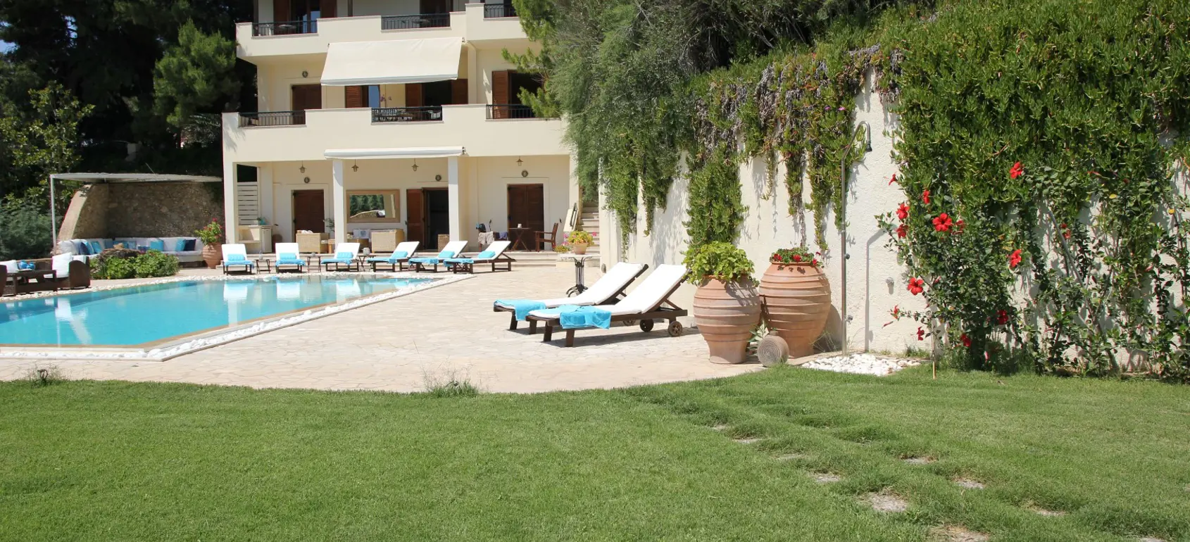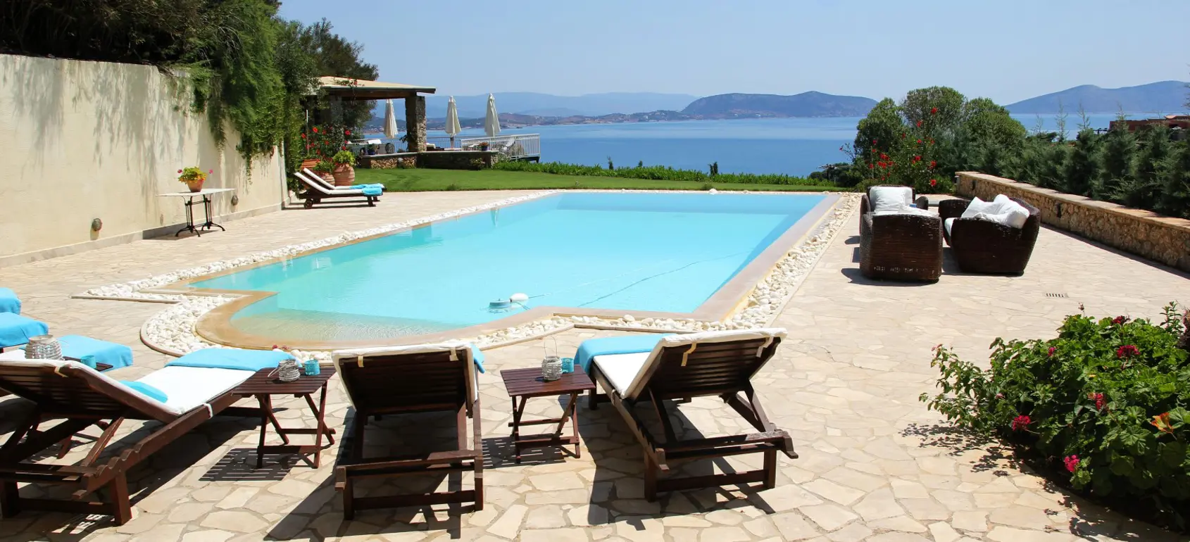 This luxury villa is located in Porto Heli, a charming picturesque port and seaside resort with a wide variety of sandy beaches, located in the Peloponnese. Here one can enjoy the tranquillity, the unique climate (240 days of sunshine), the priceless cultural values and the unforgettable traditional Greek way of life. For those who wish to be away from mass tourism, this area offers an environmentally clean atmosphere, crystal clear waters, sandy beaches, lush forests and olive groves. For those who prefer a more active life and want a variety of nightlife, the island of Spetses is the destination you must visit, it is located just ten minutes by water taxi from Porto Heli (24 hour service).