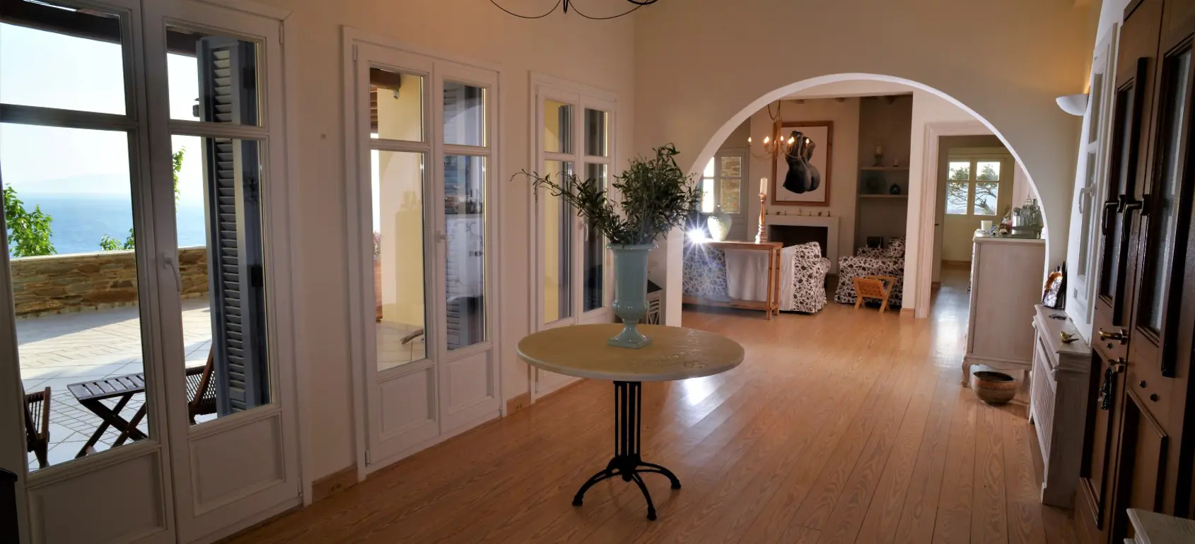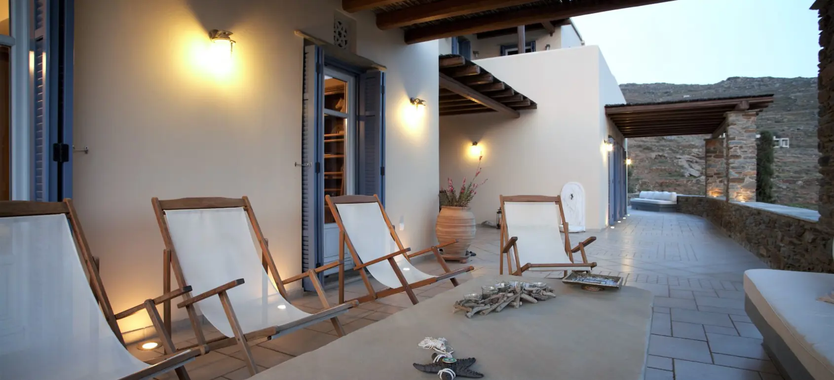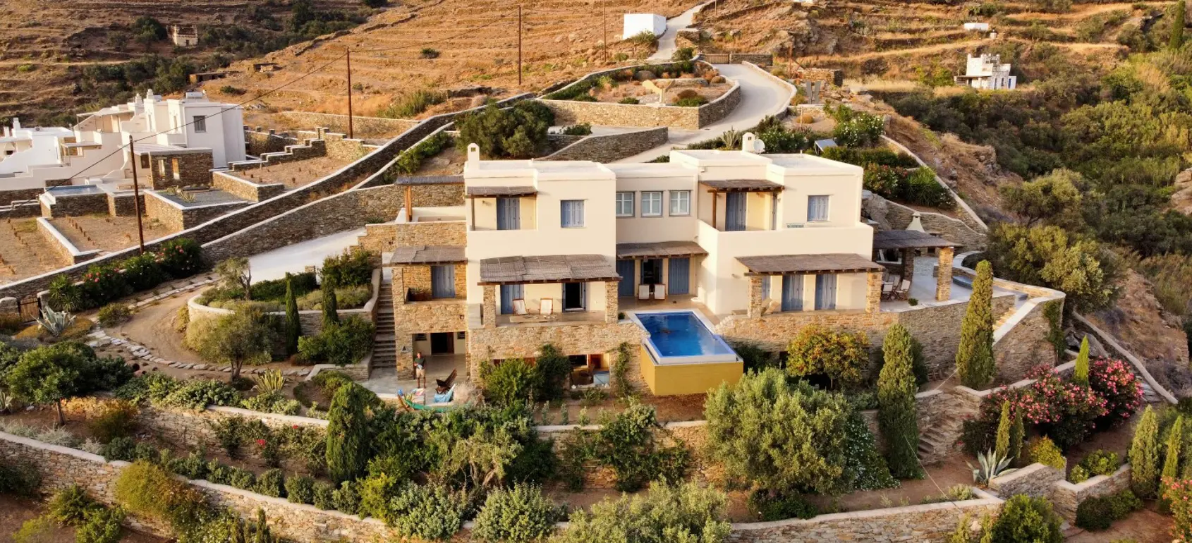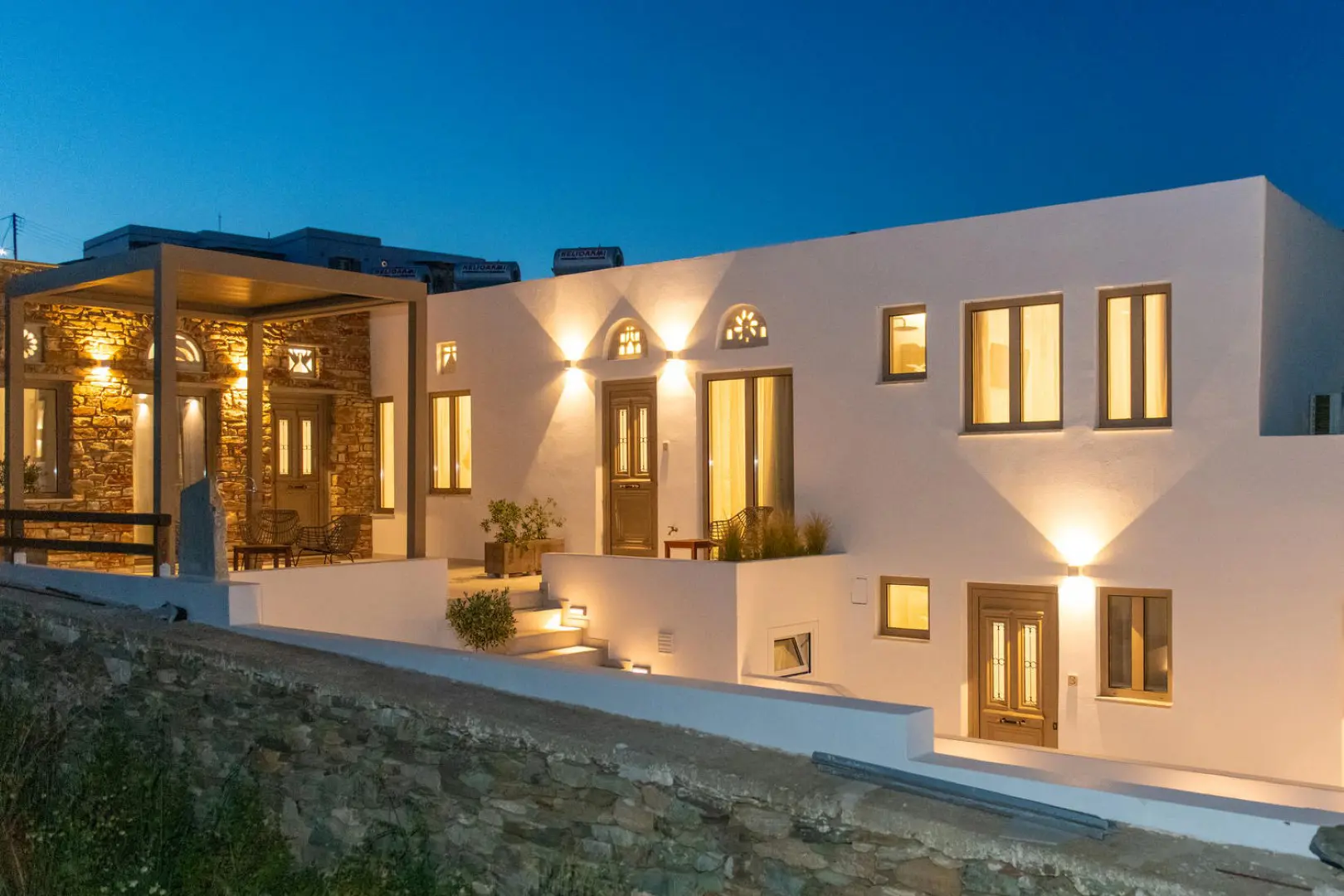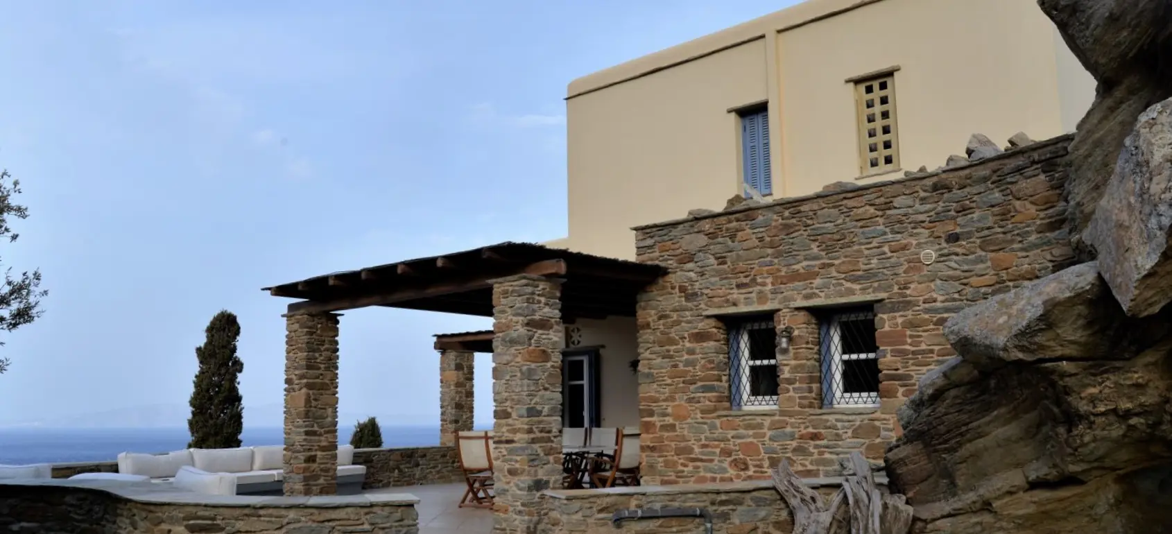 Located in Agios Romanos area, this stunning property has been landscaped with large terraces to ensure an uninterrupted view that will never be obstructed. The nearest beach is just 150 meters away via a traditional stone-paved path that passes right outside the garden gate, with an elevation difference of 65 meters.