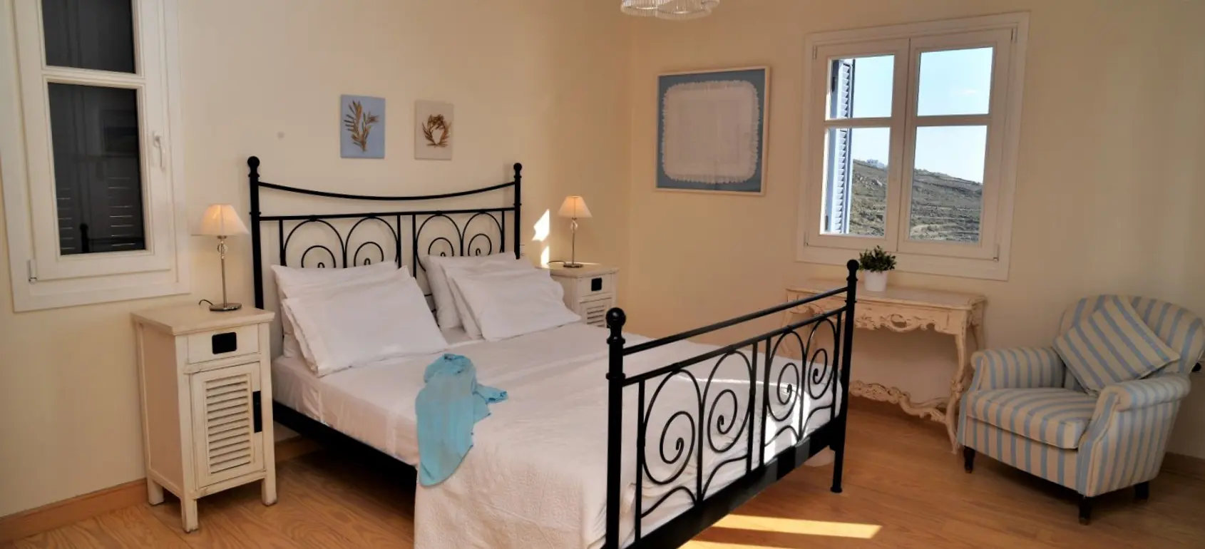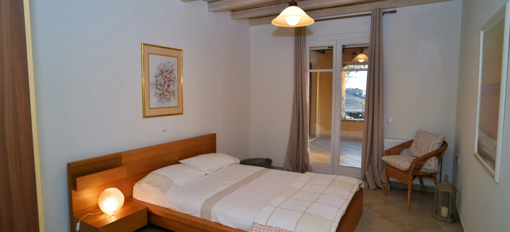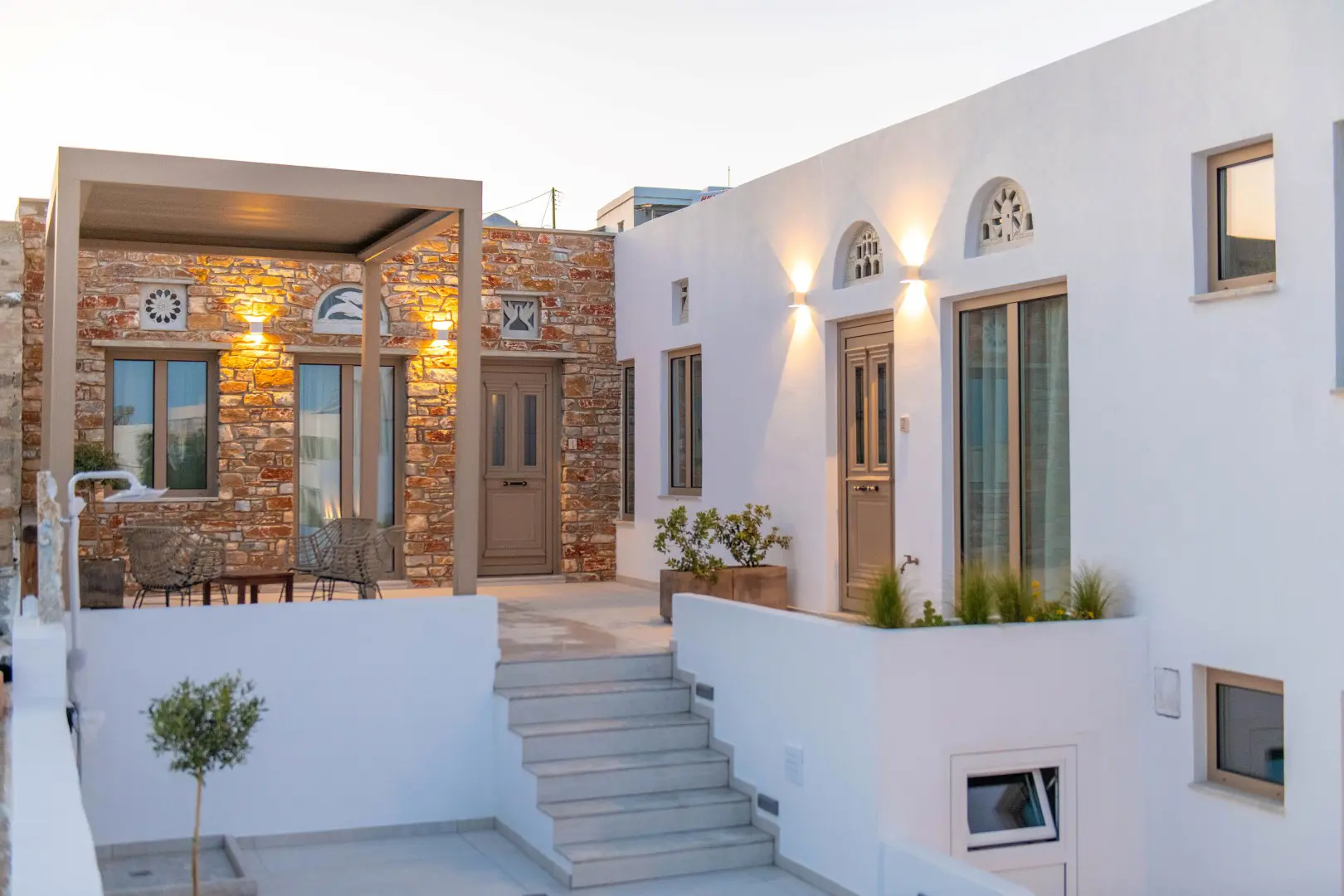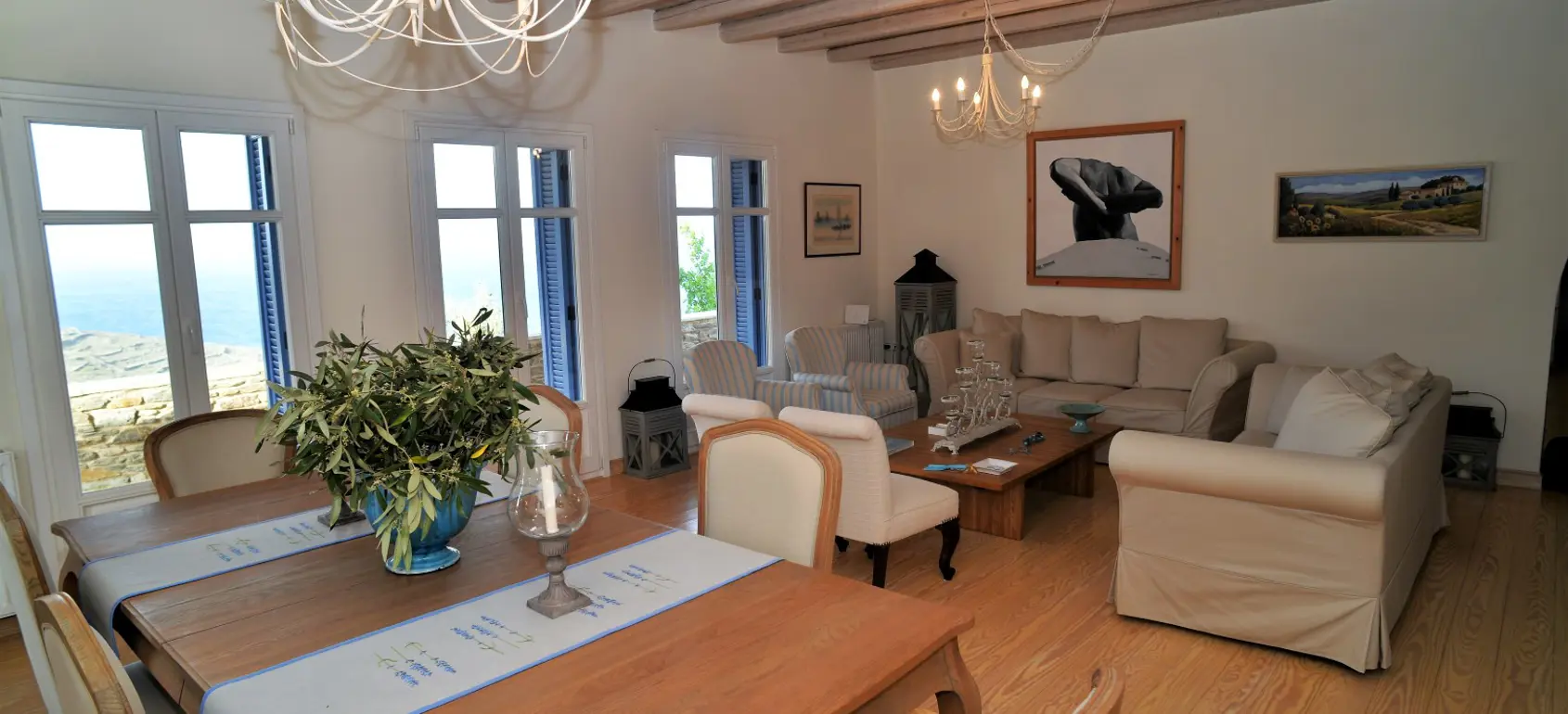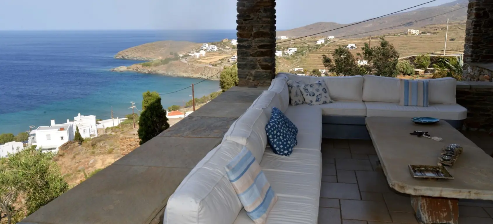 Located in Agios Romanos area, this stunning property has been landscaped with large terraces to ensure an uninterrupted view that will never be obstructed. The nearest beach is just 150 meters away via a traditional stone-paved path that passes right outside the garden gate, with an elevation difference of 65 meters.