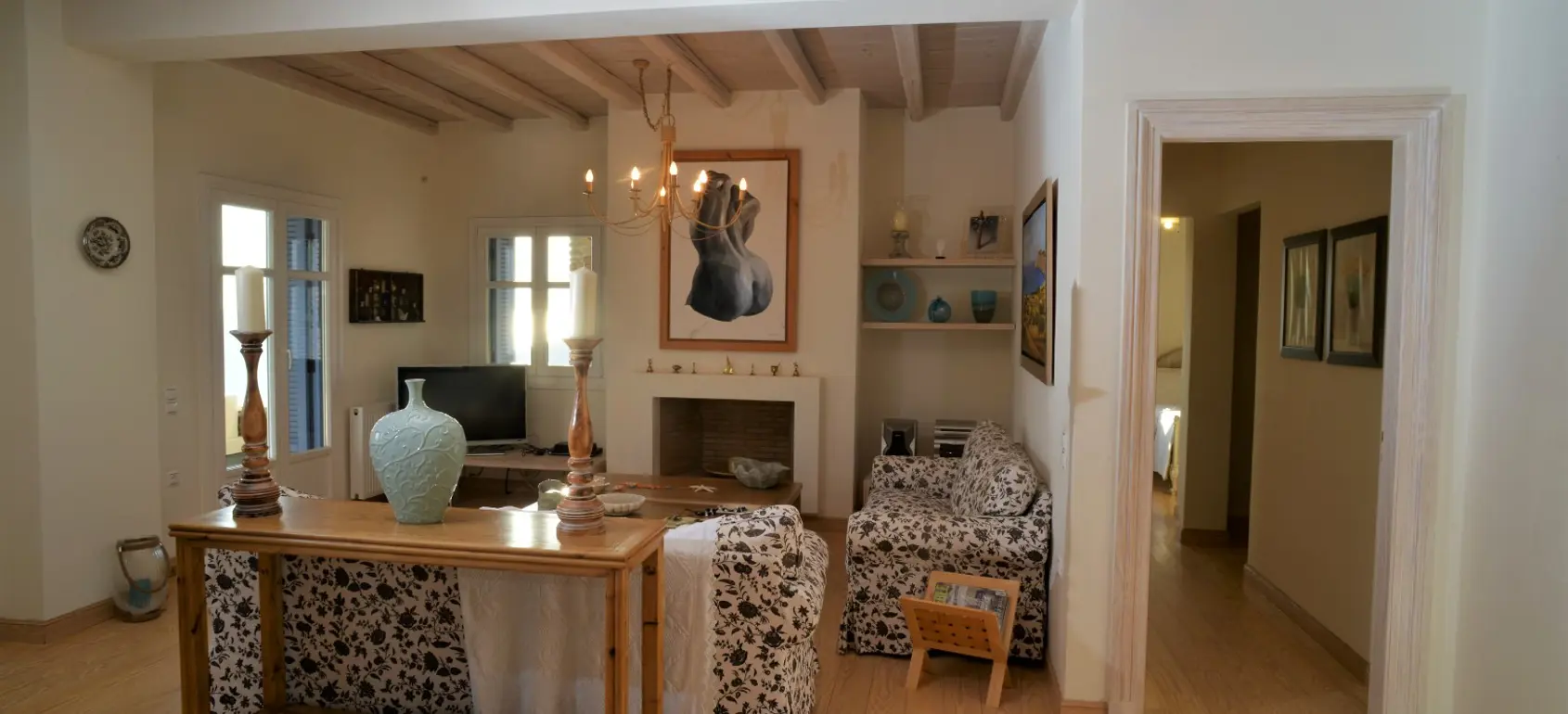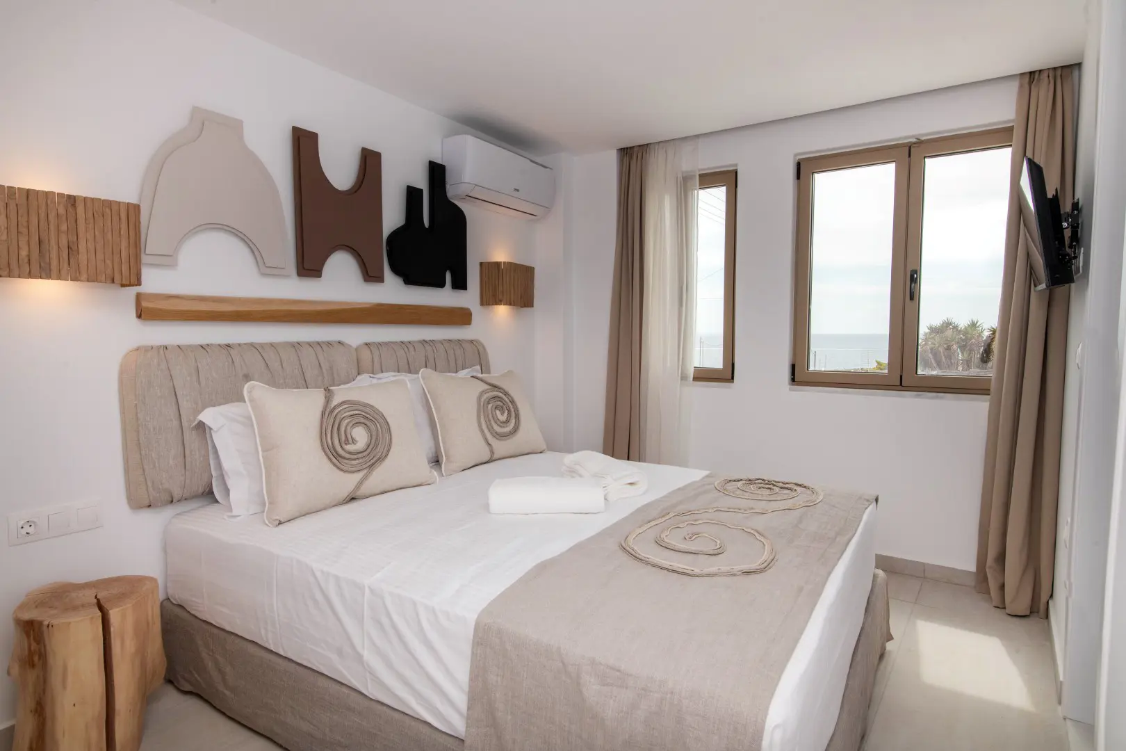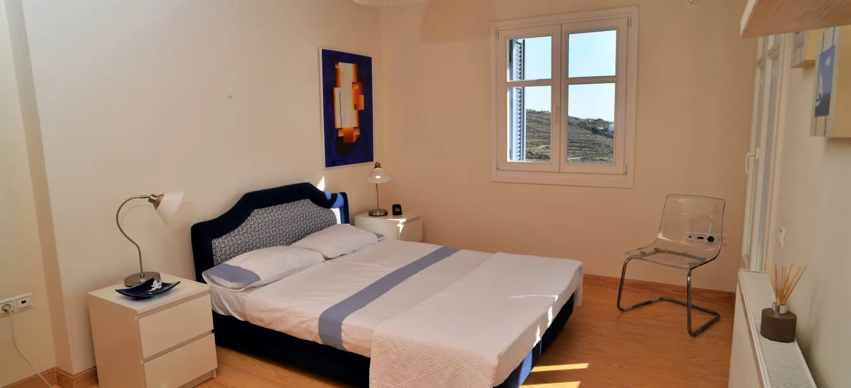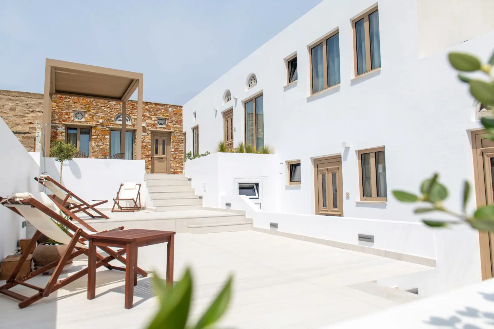 Located in Agios Romanos area, this stunning property has been landscaped with large terraces to ensure an uninterrupted view that will never be obstructed. The nearest beach is just 150 meters away via a traditional stone-paved path that passes right outside the garden gate, with an elevation difference of 65 meters.