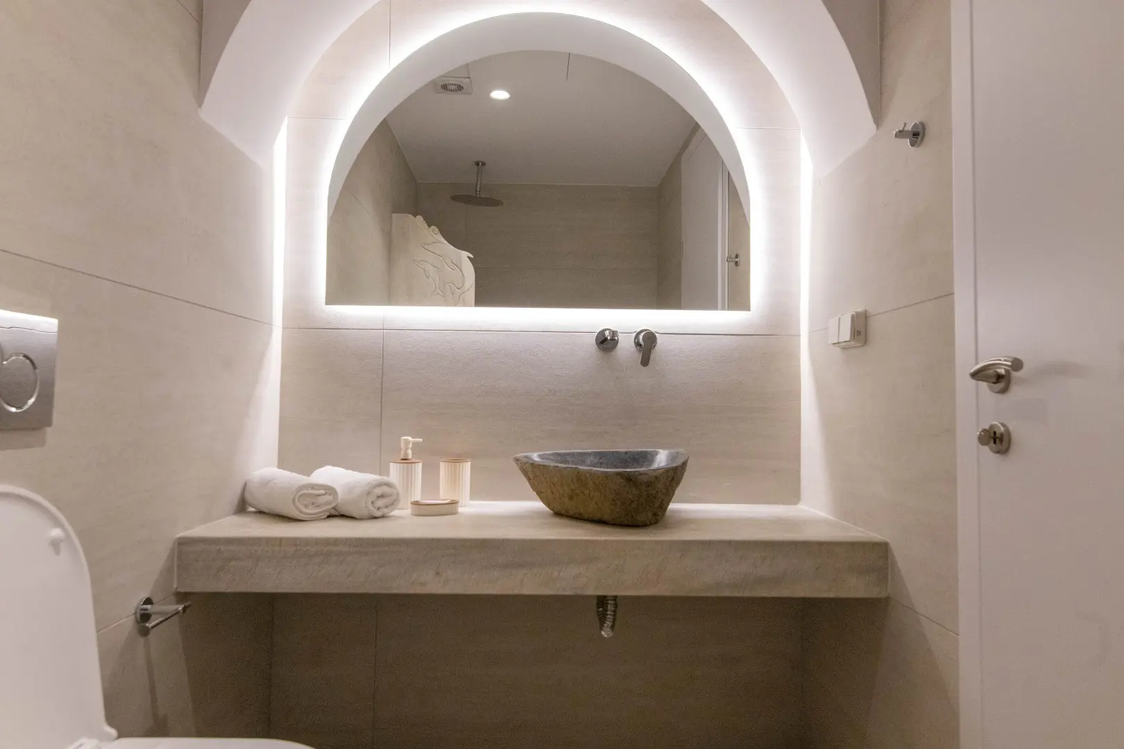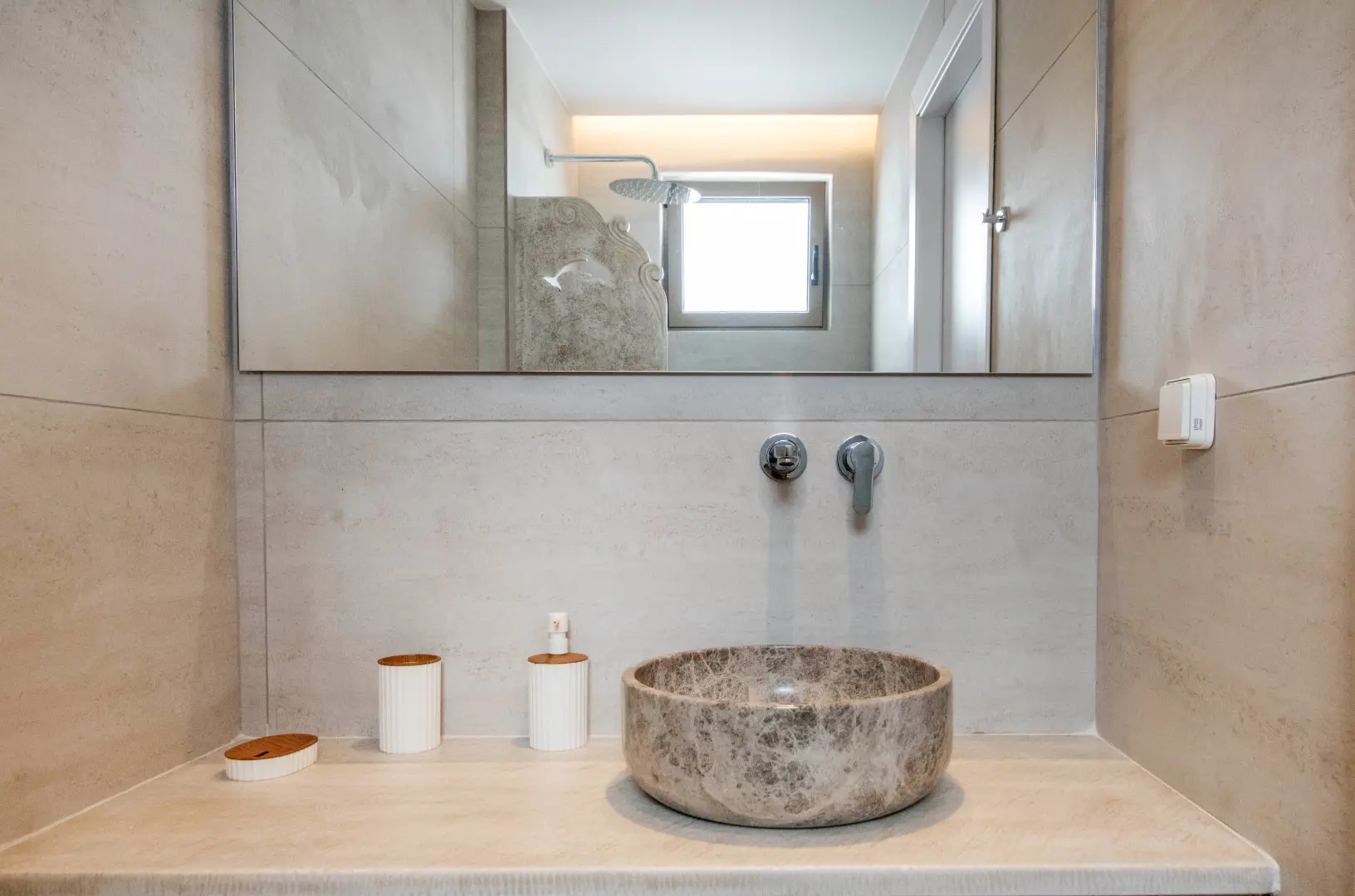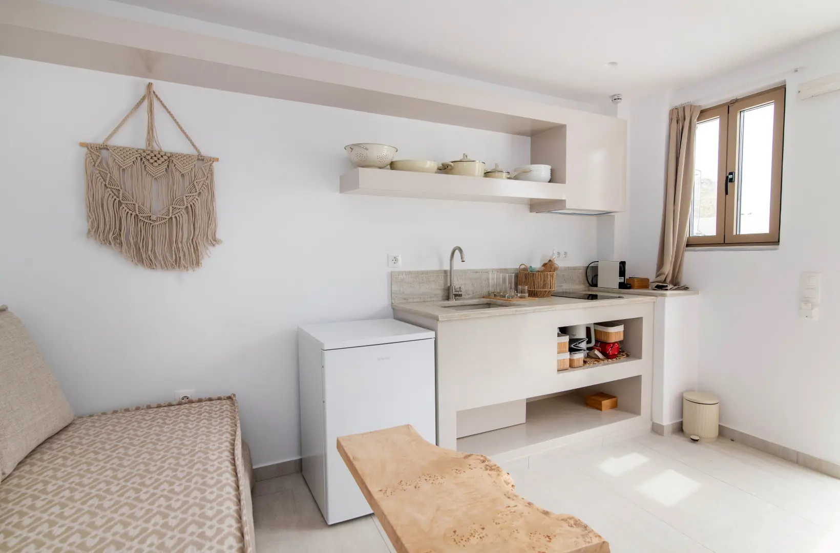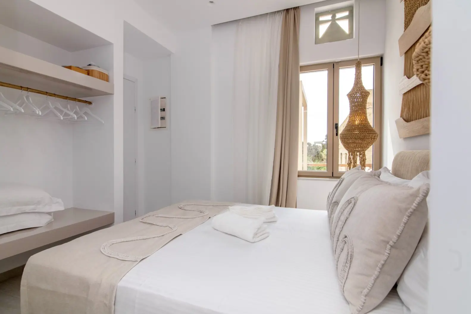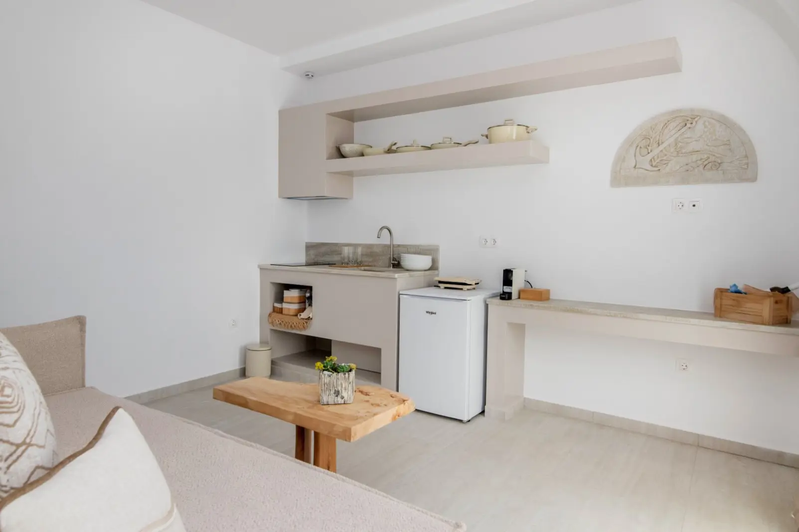 Located in Agios Romanos area, this stunning property has been landscaped with large terraces to ensure an uninterrupted view that will never be obstructed. The nearest beach is just 150 meters away via a traditional stone-paved path that passes right outside the garden gate, with an elevation difference of 65 meters.