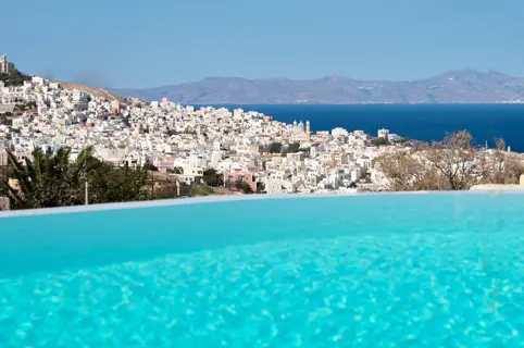Syros, capital of the Cyclades is located at 35 minutes by air from Athens airport, 1 hour and 45 minutes by high speed ferry from Lavrio Port, 2 ½ hours by high speed ferry or 4 hours by ferryboat from Piraeus and Rafina Ports. For over a century, Syros Island was the heart beating at the centre of the Eastern Mediterranean. Today’s Syros emerges from its glorious past, inviting guests to contemplate, explore and experience it to the full. A place of beautiful vistas, relaxing beaches and exciting nightlife, Syros is one of the most visited Aegean Islands. The sandy beach of Megas Gialos is located in the south of the island, 12 km from Ermoupolis and is one of the largest beaches of Syros, offering easy access, protection from the winds and crystal clear waters.