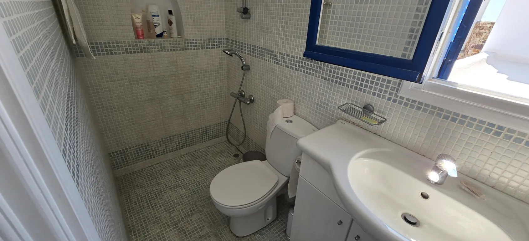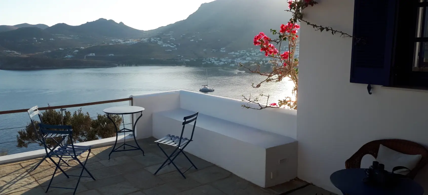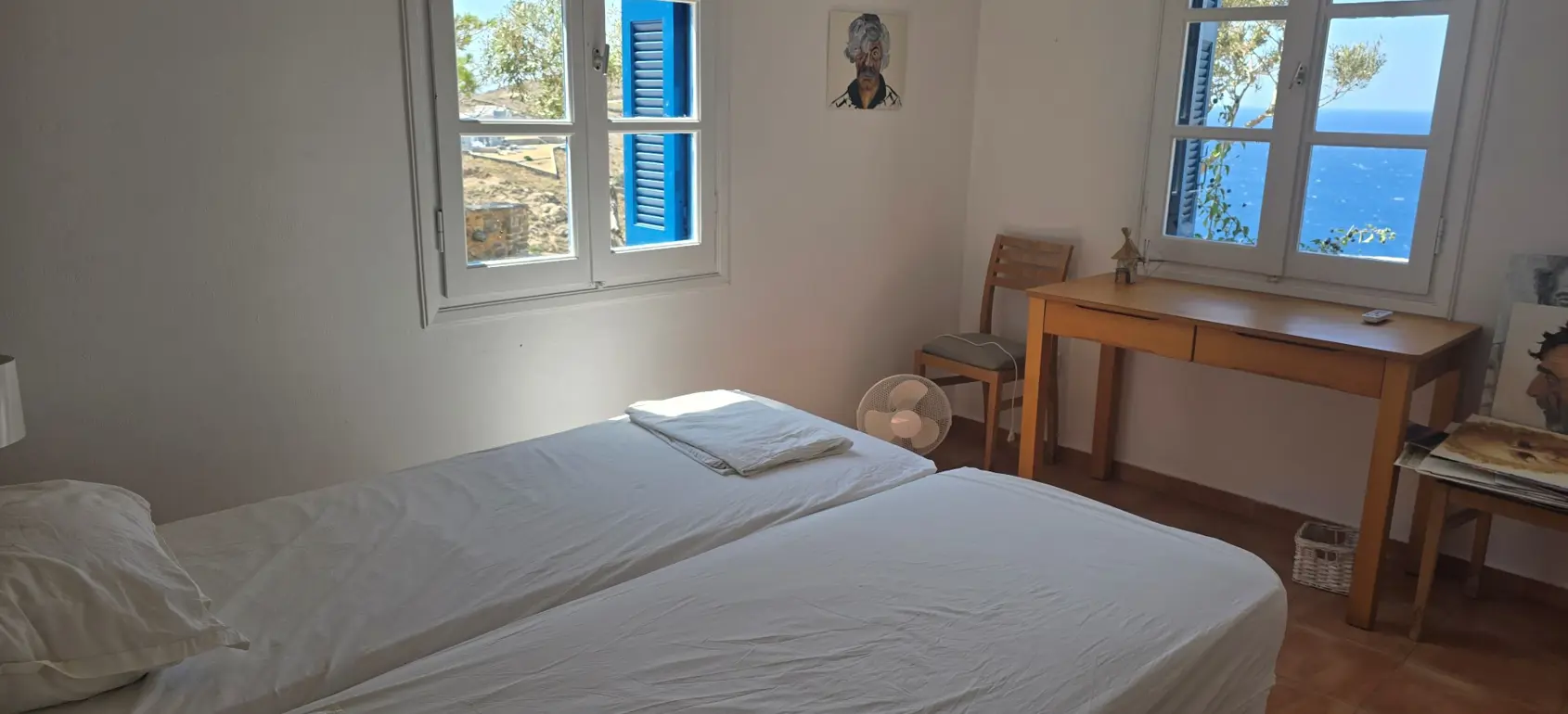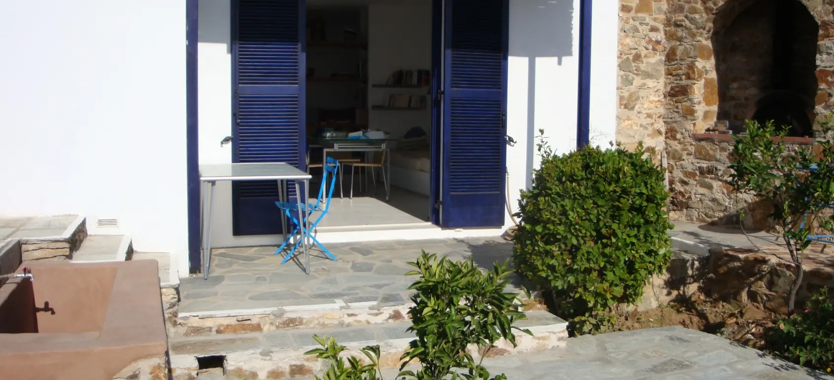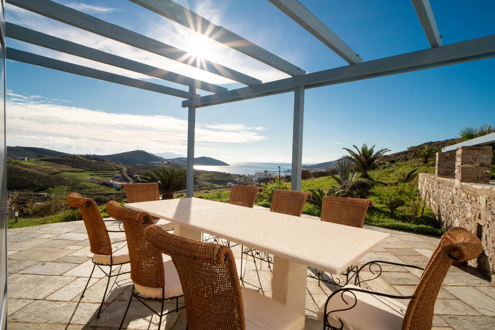 Beyond the charm of this architect-designed house, its location is highly practical: the small, nearly deserted beach just below the property makes the sea feel like this villa's private pool, the large beach of Livadi is only a 5-minute walk away, and the village is 3 minutes away by car.