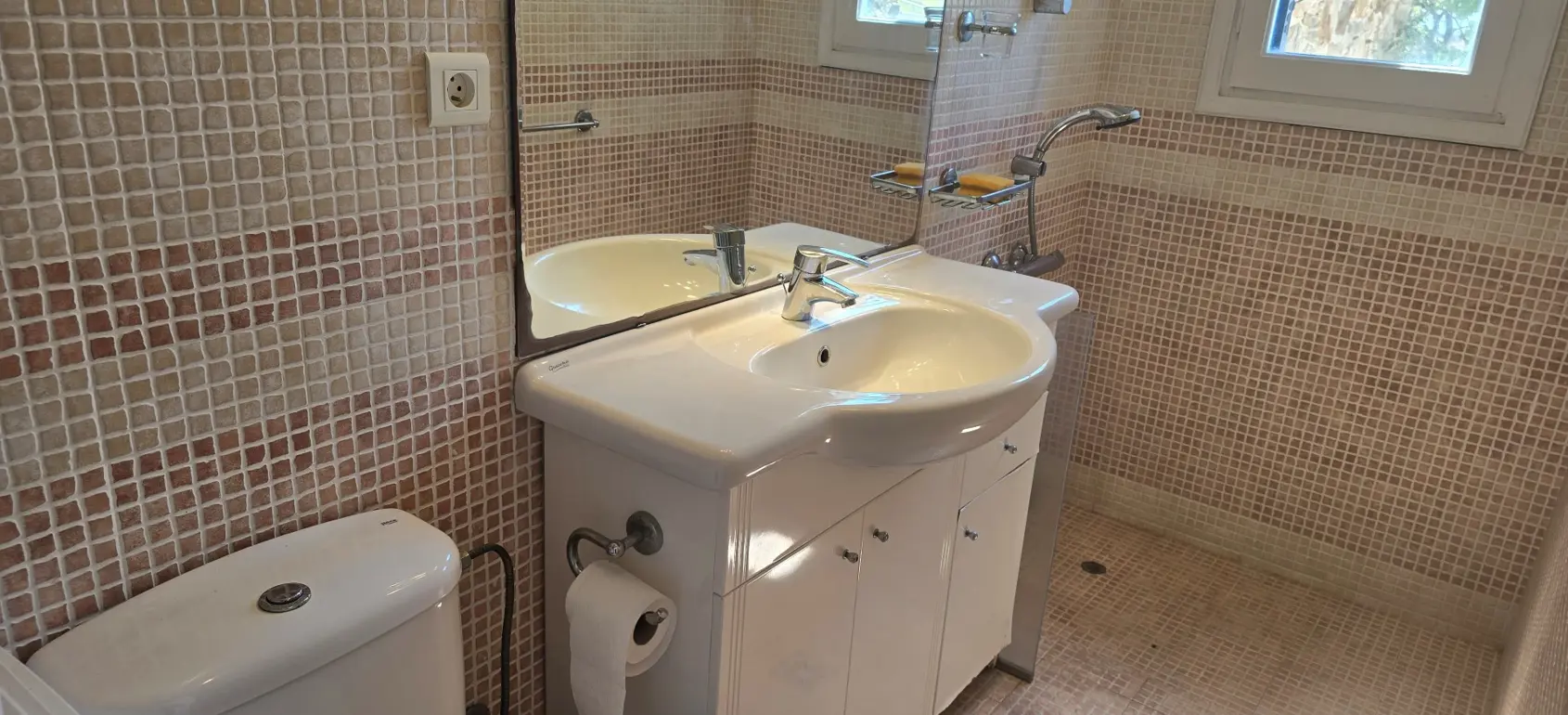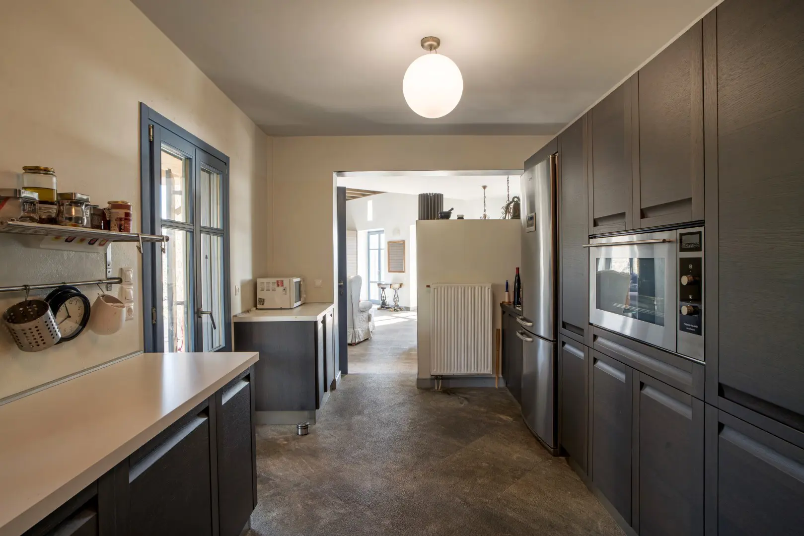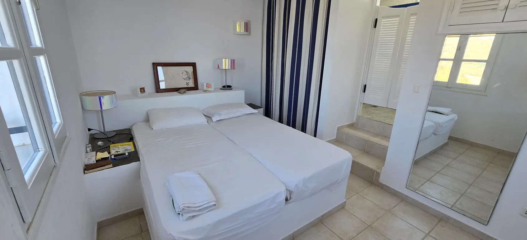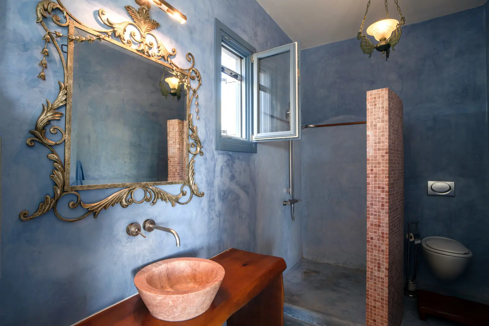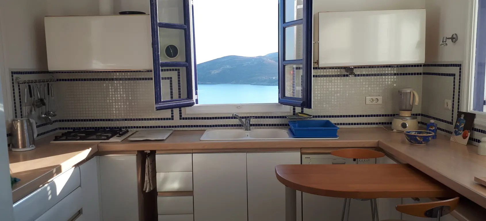 Beyond the charm of this architect-designed house, its location is highly practical: the small, nearly deserted beach just below the property makes the sea feel like this villa's private pool, the large beach of Livadi is only a 5-minute walk away, and the village is 3 minutes away by car.