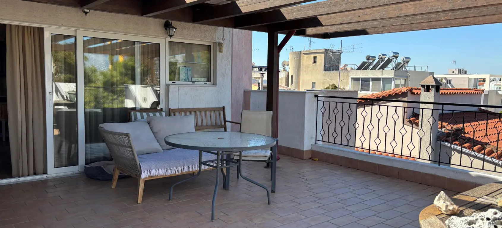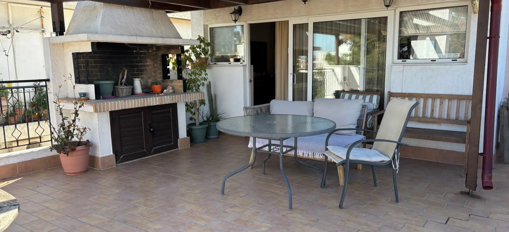 2nd floor, apartment of 78 sqm with living room, fireplace and an open plan kitchen as well as two bedrooms that share a bathroom. Large terrace of 40sqm with pergola, tent and built BBQ.