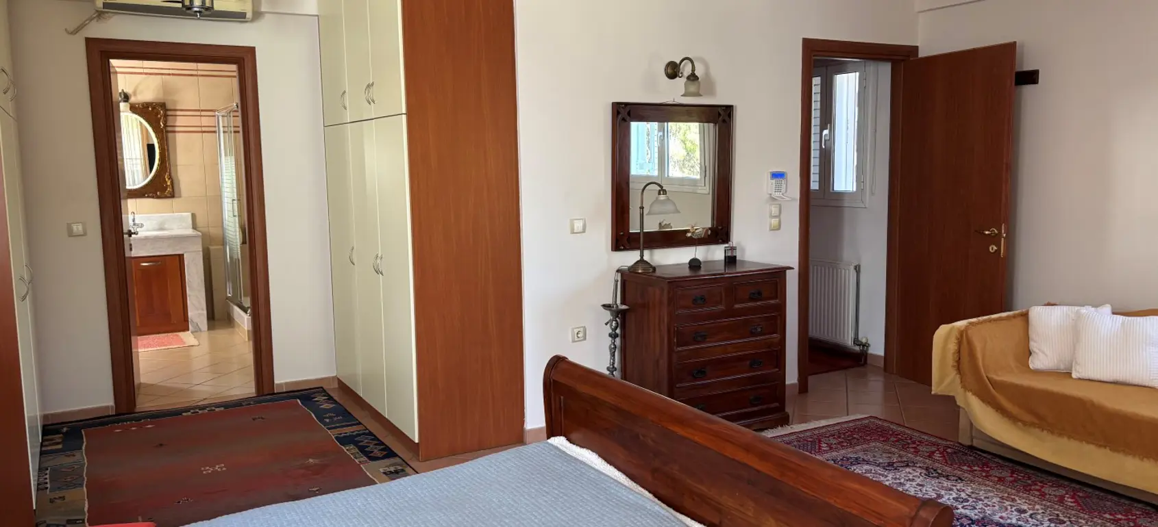 1st floor, one master 35 sq.m with ensuite bathroom as well as two more bedrooms that share a bathroom. The large hall area can be converted to a bedroom or office.