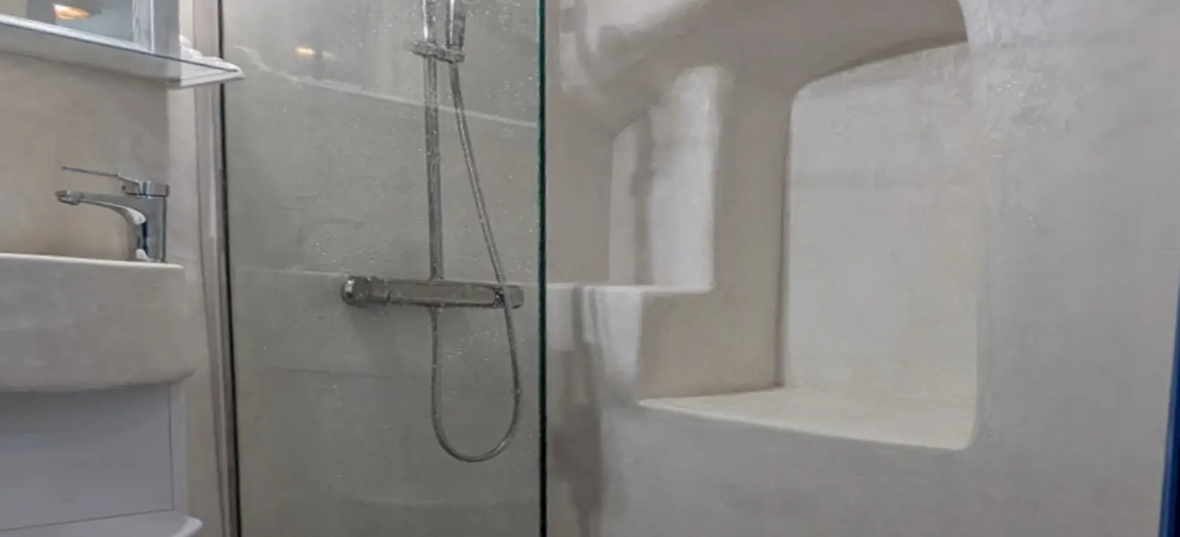 With the unique domed ceiling on the ground floor apartment, which features a big living and dining room with a single sofa bed and a sleeping loft with a 140cm bed, bathroom and kitchen. The bathroom and kitchen were totally renovated in 2022, when the solar water heating also was installed. The ground floor is equipped with a washing machine, a fridge and freezer, a combi oven and a stove. The upper room with separate entrance has its own bathroom and 2 single beds.