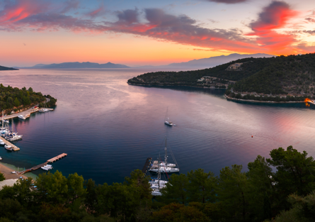 Meganisi, a charming Greek island, a hidden gem in the Ionian Sea, beckons with its unspoiled beauty and authentic Greek charm. It offers serene beaches, traditional villages, and tranquil surroundings. Reached by boat from Nidri, passing Skorpios, the contrast between the bustle of that busy resort and the quiet solitude of Meganisi’s lonely bays and traffic free lanes couldn’t be more marked. With just three or four villages, hardly more than hamlets in reality and almost no tourist development, this is the perfect island to escape from the stresses and strains of a busy life. Even the entrance to Vathi, the island’s main harbour is watched over by twin churches to bless those arriving and leaving.