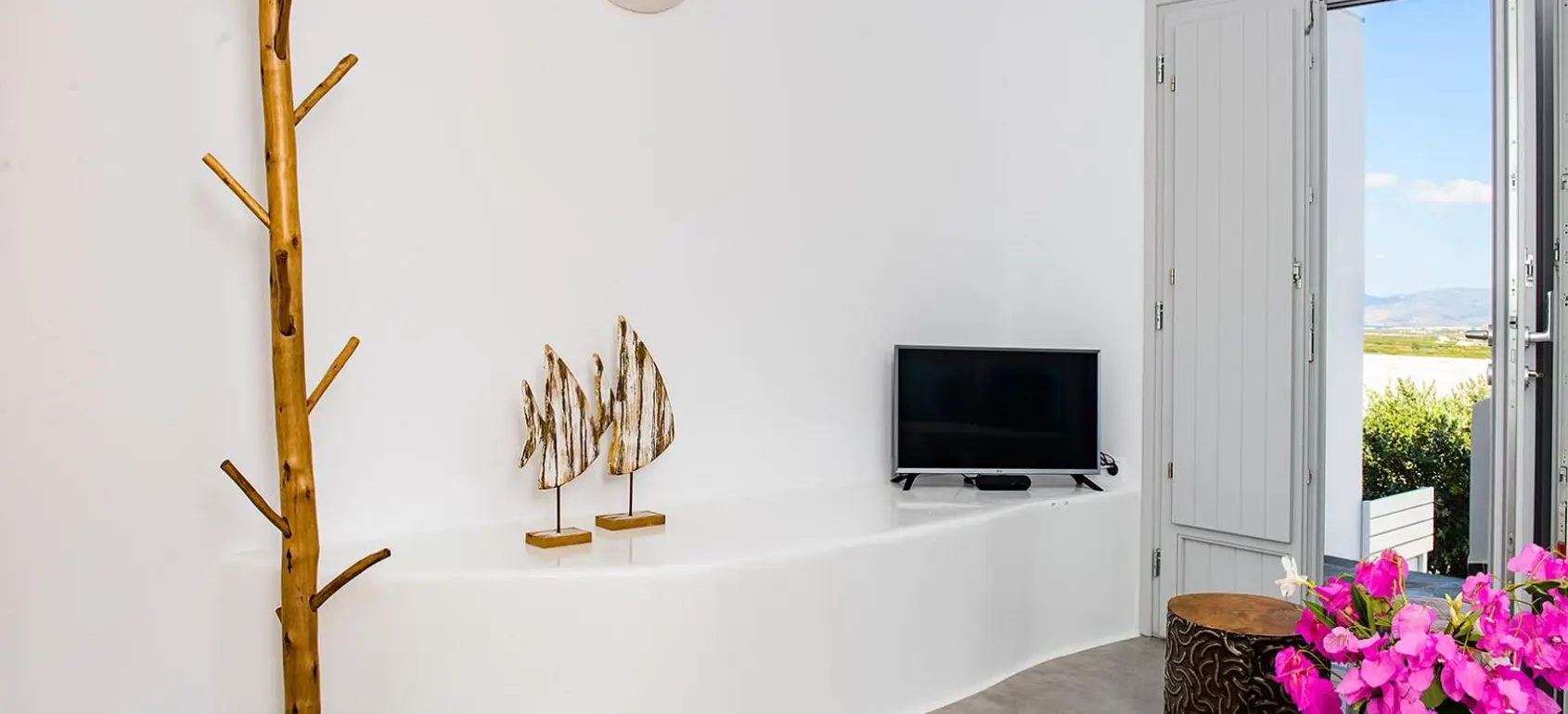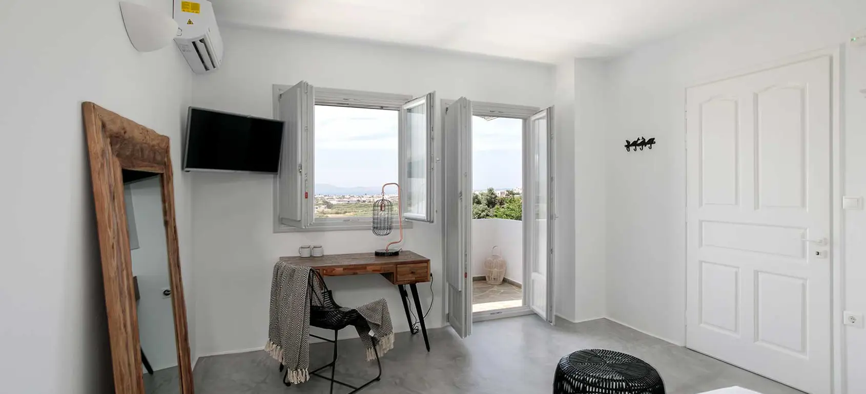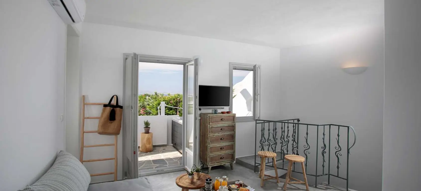 Spacious balcony with stunning panoramic views of the sea and the surrounding islands.
