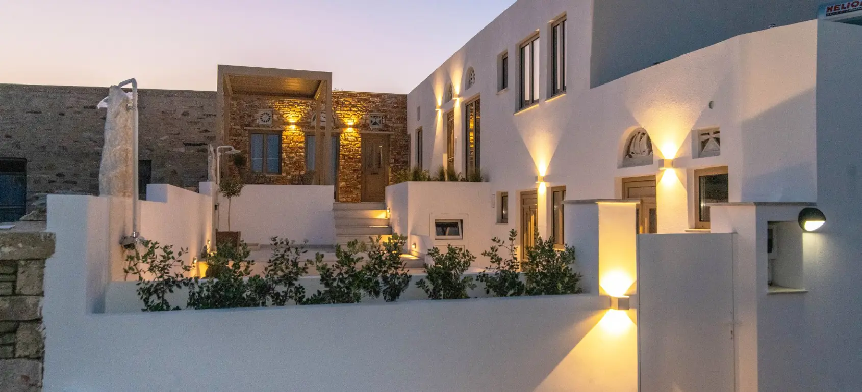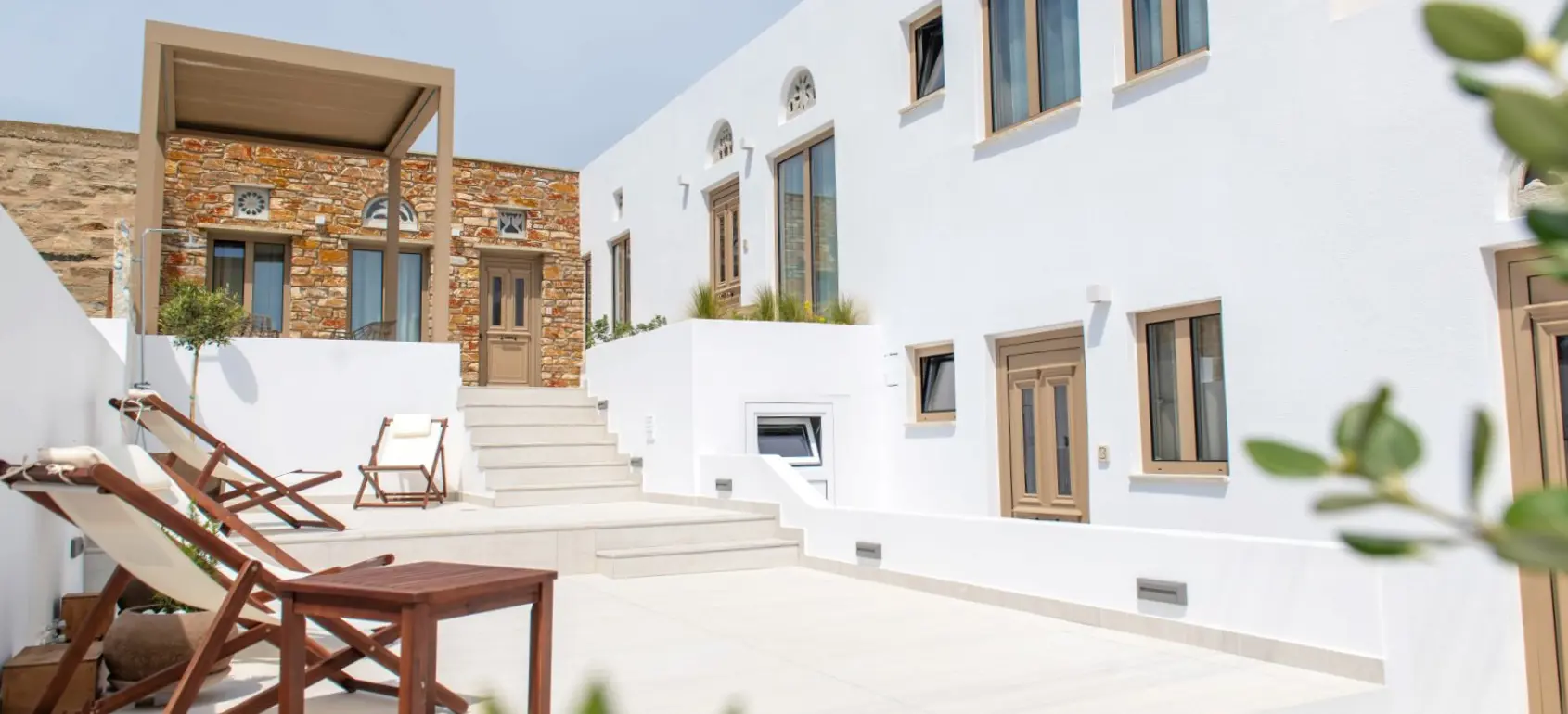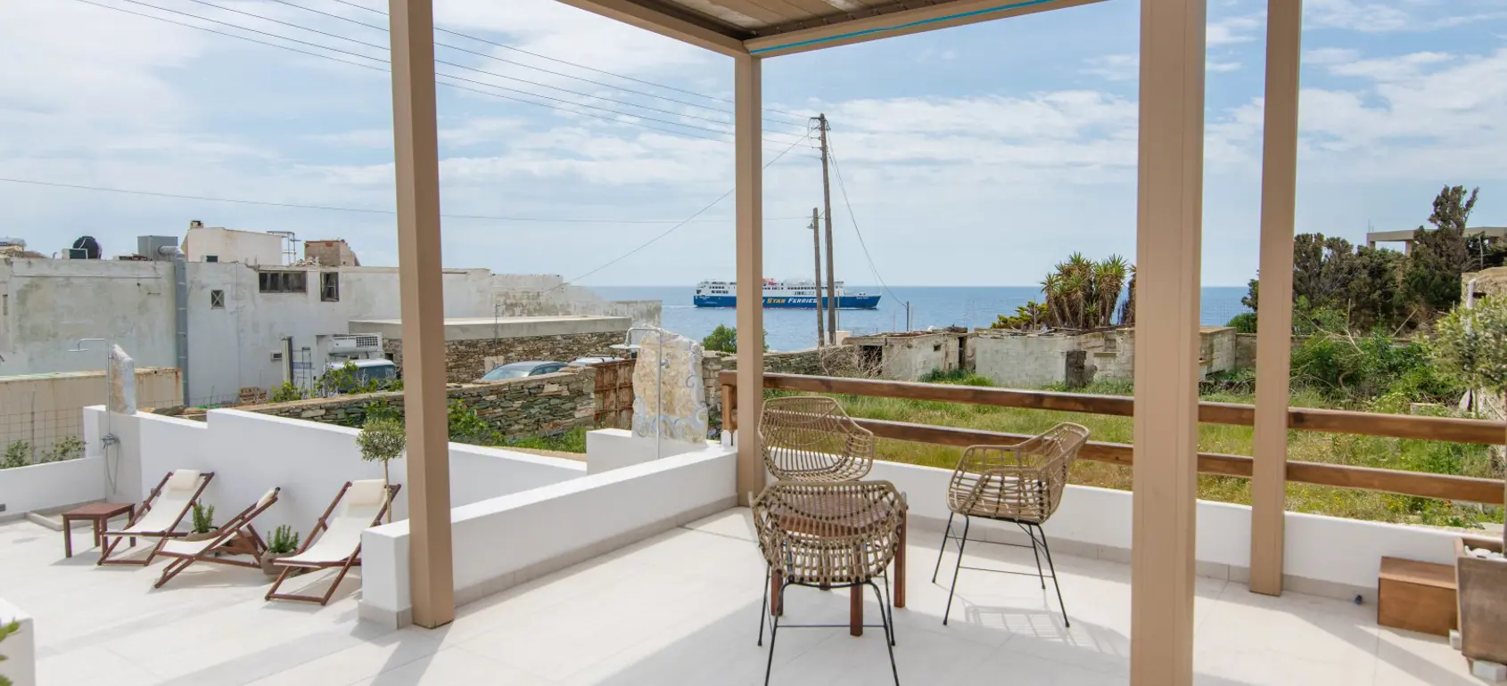 Just 50 meters from the sea, walking distance from the port and the main town (Chora) and the most beautiful beaches on the west side off the island of Megalohari.