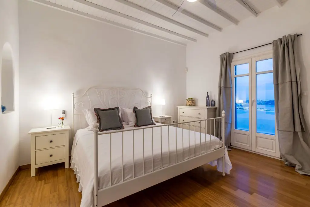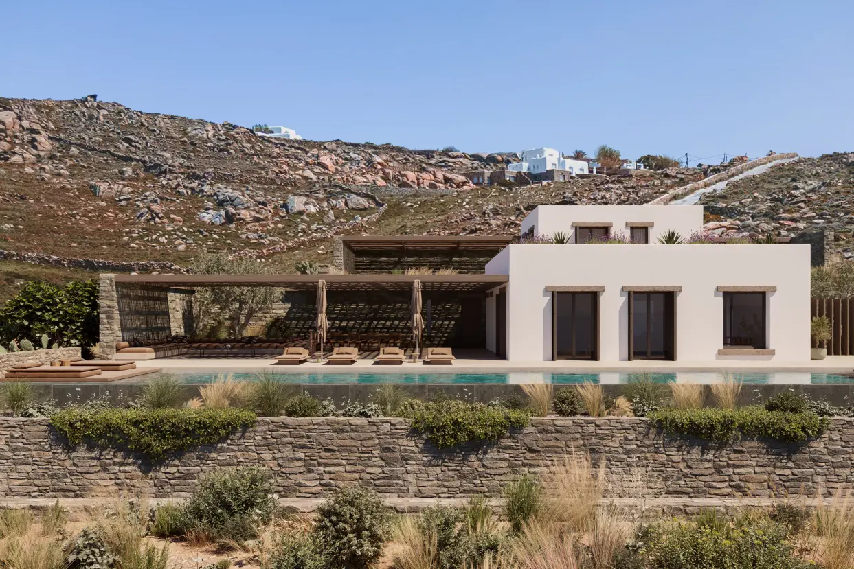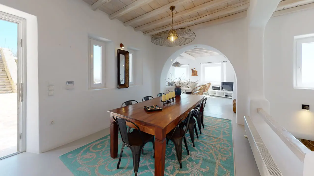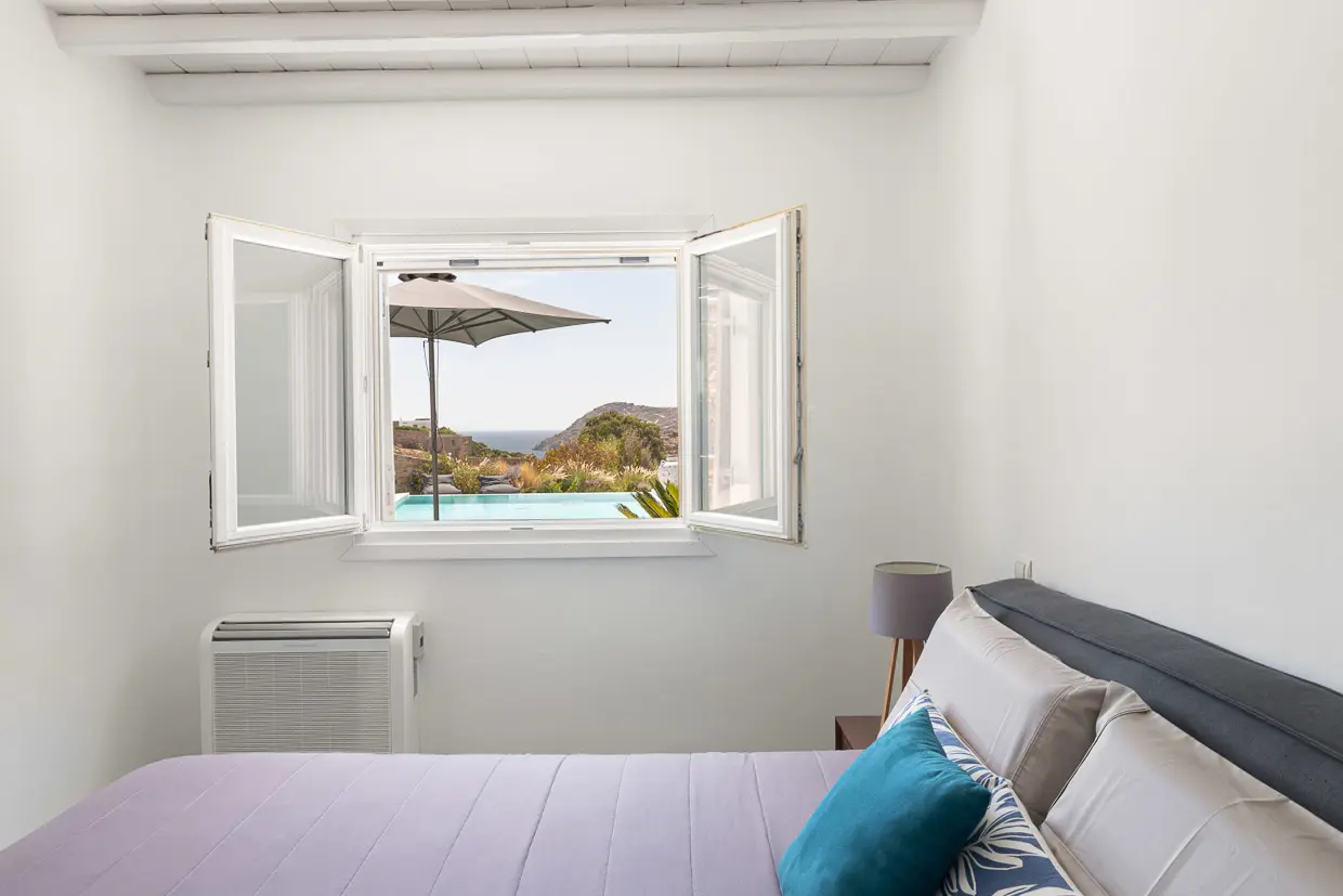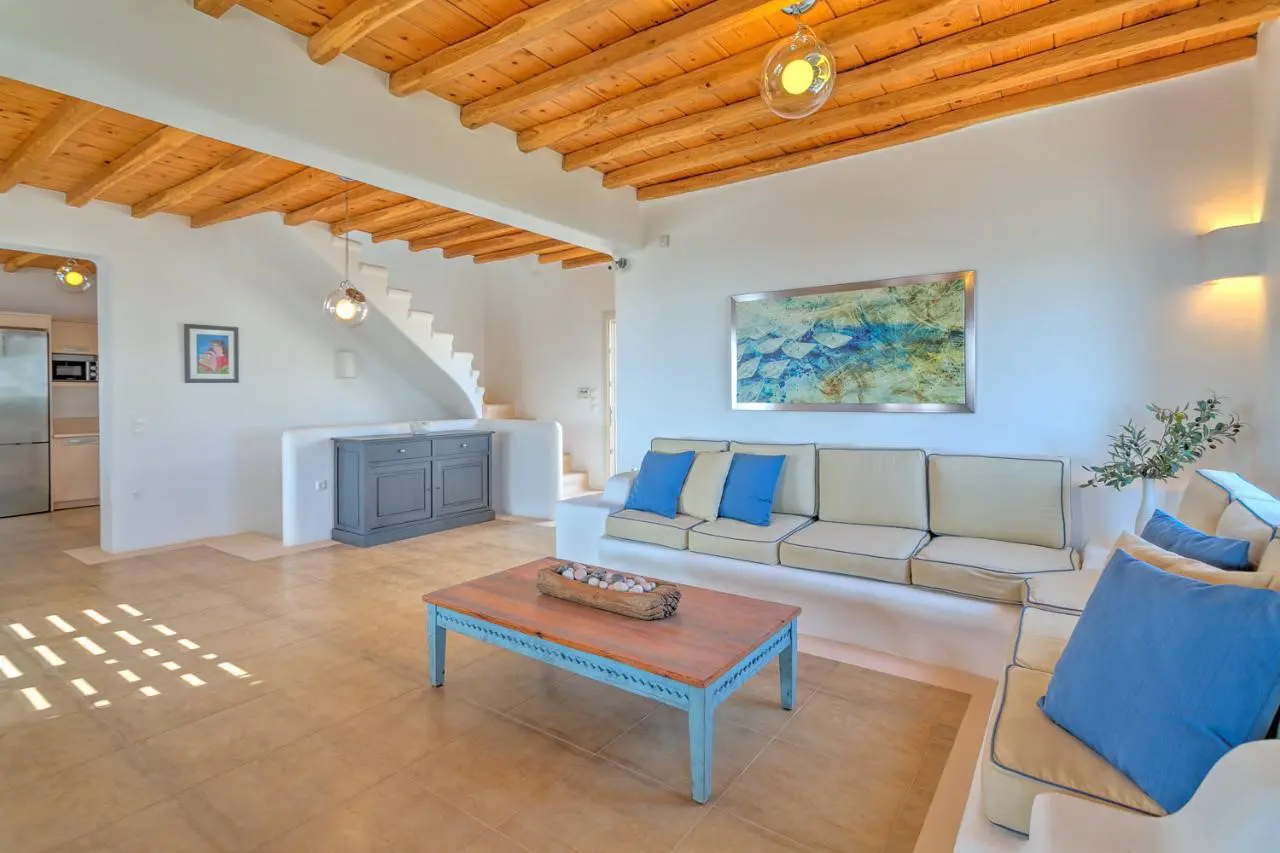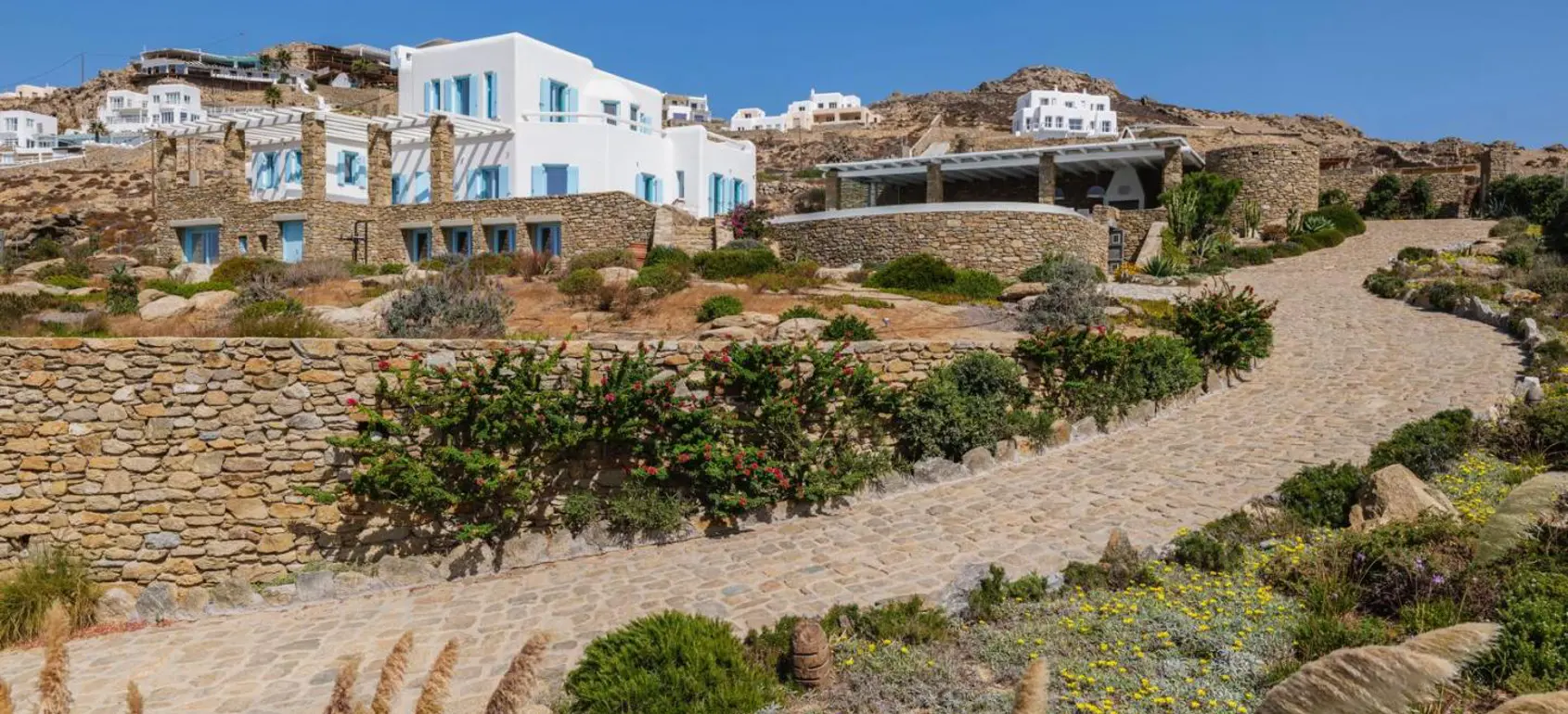 Located in Faros Armenistis area, this well-maintained villa of 500 sqm has 5 bedrooms and 4 bathrooms. The plot of 4,000 sqm, on which the property stands, has been fully landscaped. The plot includes a shaded, stone-built BBQ with dining area for up to 10 people and there is the swimming pool. The garden has an automatic irrigation system and the property is completely fenced. Only a few minutes away from the port and main town, the house provides sweeping views. Due to its strategic positioning, the property remains shielded from the prevailing north wind—an issue commonly experienced on the island. This advantageous placement results in both reduced maintenance expenses and minimal humidity worries. The nearest beach, Houlakia, is only at 3 km distance.