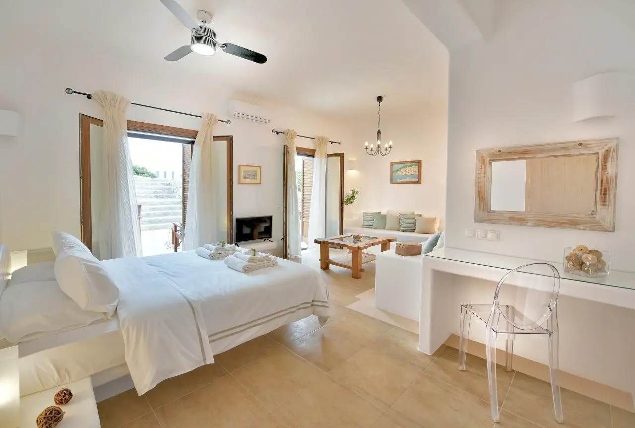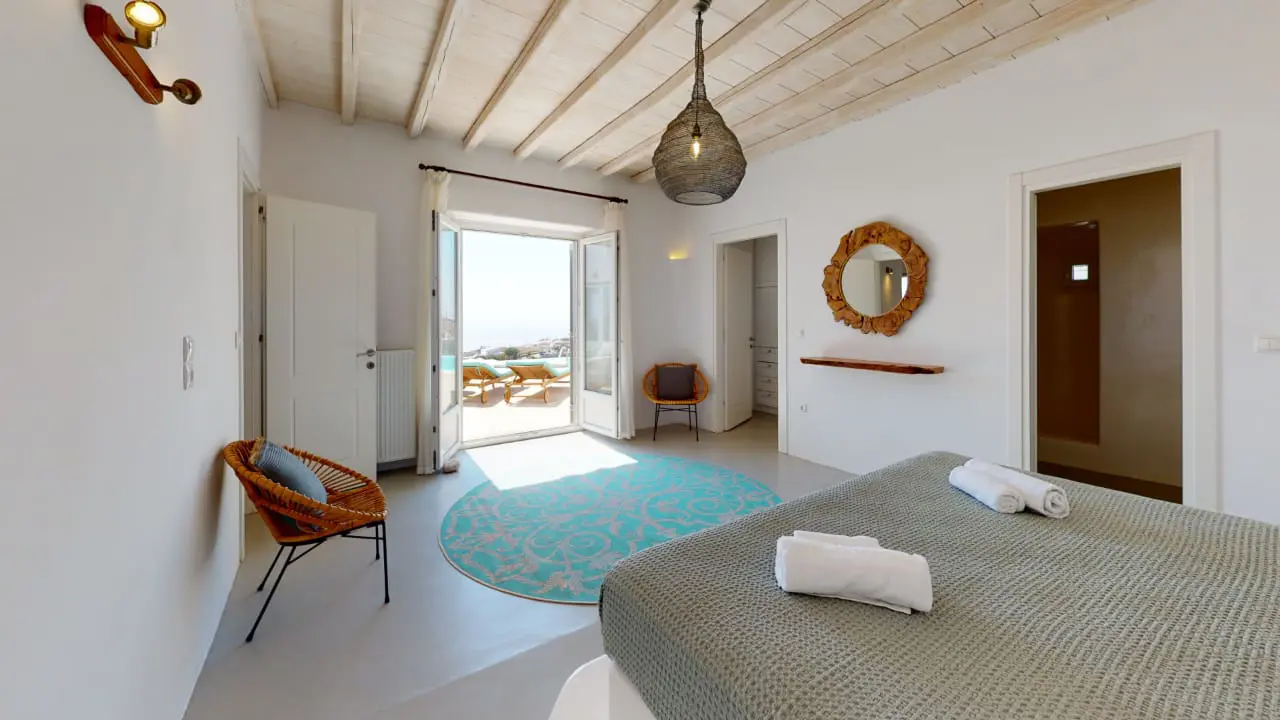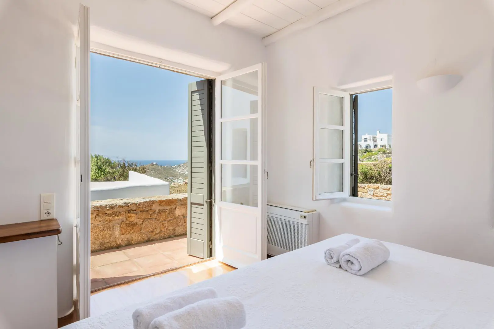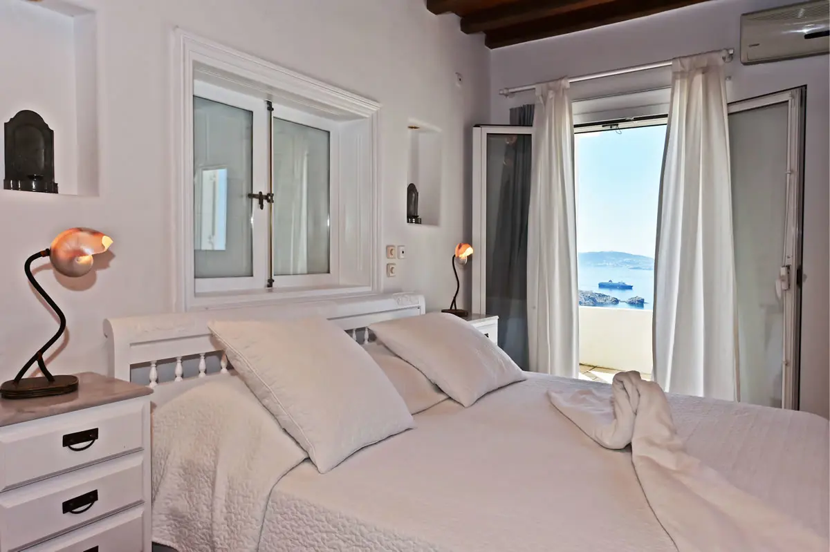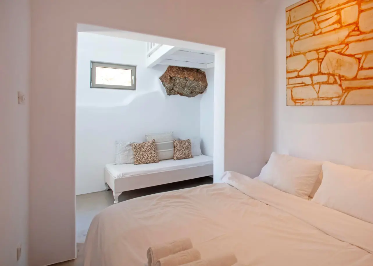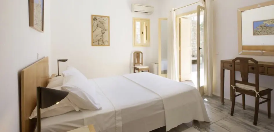 Located in Faros Armenistis area, this well-maintained villa of 500 sqm has 5 bedrooms and 4 bathrooms. The plot of 4,000 sqm, on which the property stands, has been fully landscaped. The plot includes a shaded, stone-built BBQ with dining area for up to 10 people and there is the swimming pool. The garden has an automatic irrigation system and the property is completely fenced. Only a few minutes away from the port and main town, the house provides sweeping views. Due to its strategic positioning, the property remains shielded from the prevailing north wind—an issue commonly experienced on the island. This advantageous placement results in both reduced maintenance expenses and minimal humidity worries. The nearest beach, Houlakia, is only at 3 km distance.