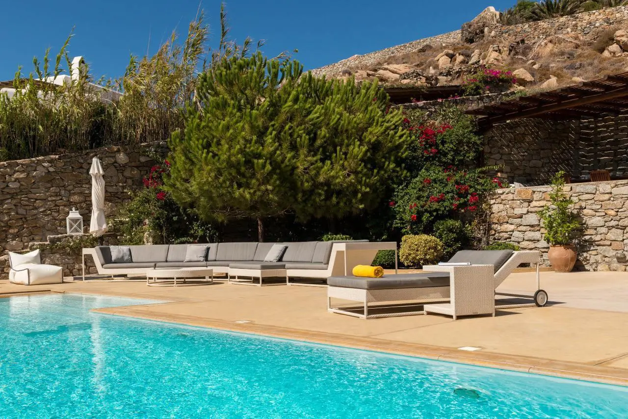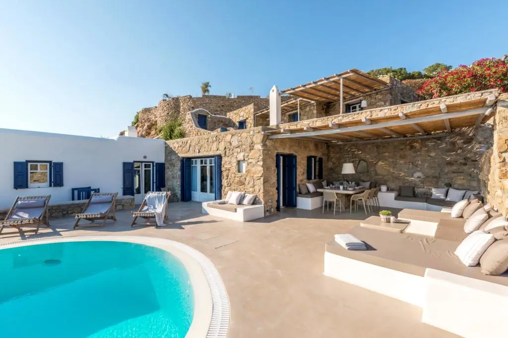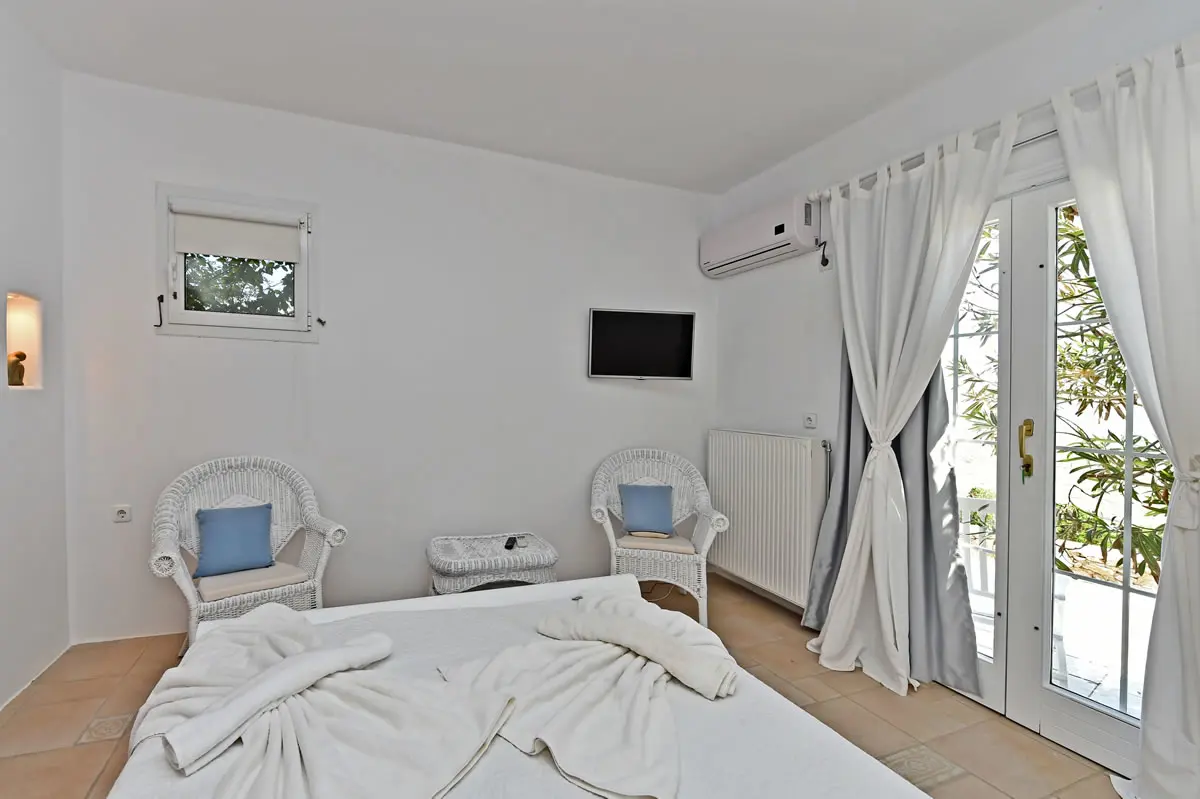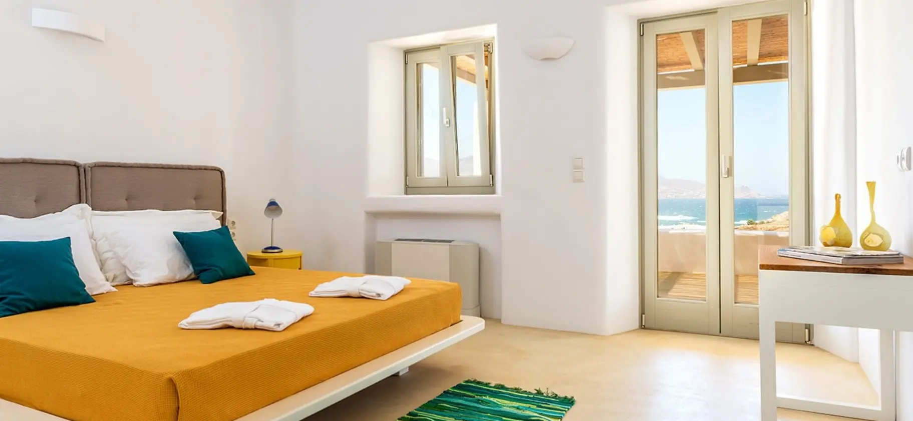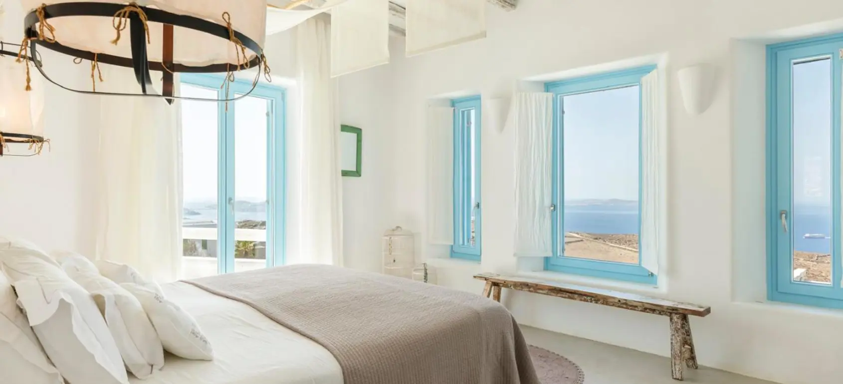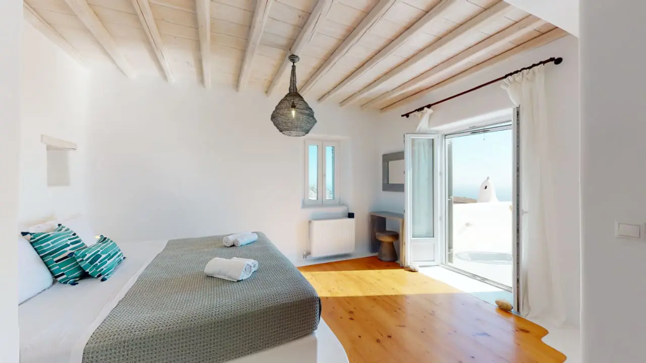Located in Faros Armenistis area, this well-maintained villa of 500 sqm has 5 bedrooms and 4 bathrooms. The plot of 4,000 sqm, on which the property stands, has been fully landscaped. The plot includes a shaded, stone-built BBQ with dining area for up to 10 people and there is the swimming pool. The garden has an automatic irrigation system and the property is completely fenced. Only a few minutes away from the port and main town, the house provides sweeping views. Due to its strategic positioning, the property remains shielded from the prevailing north wind—an issue commonly experienced on the island. This advantageous placement results in both reduced maintenance expenses and minimal humidity worries. The nearest beach, Houlakia, is only at 3 km distance.