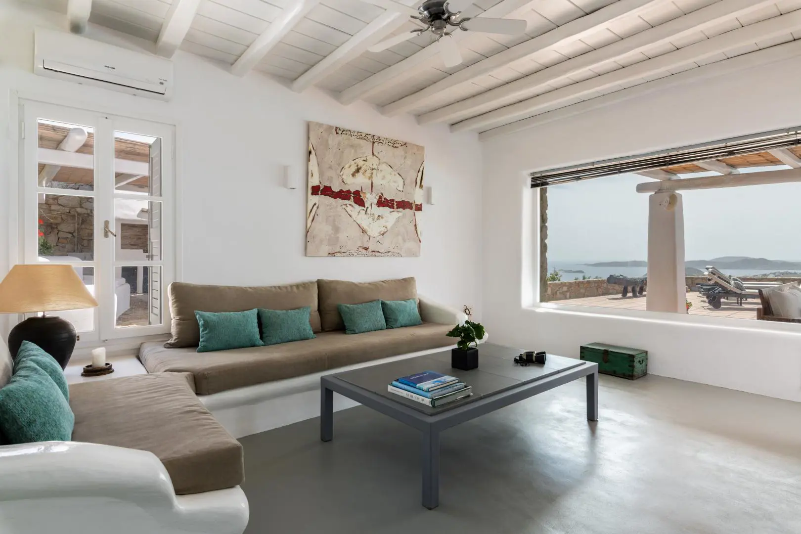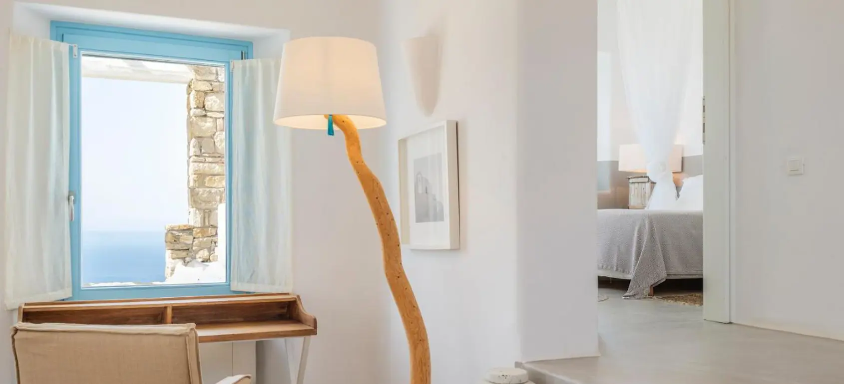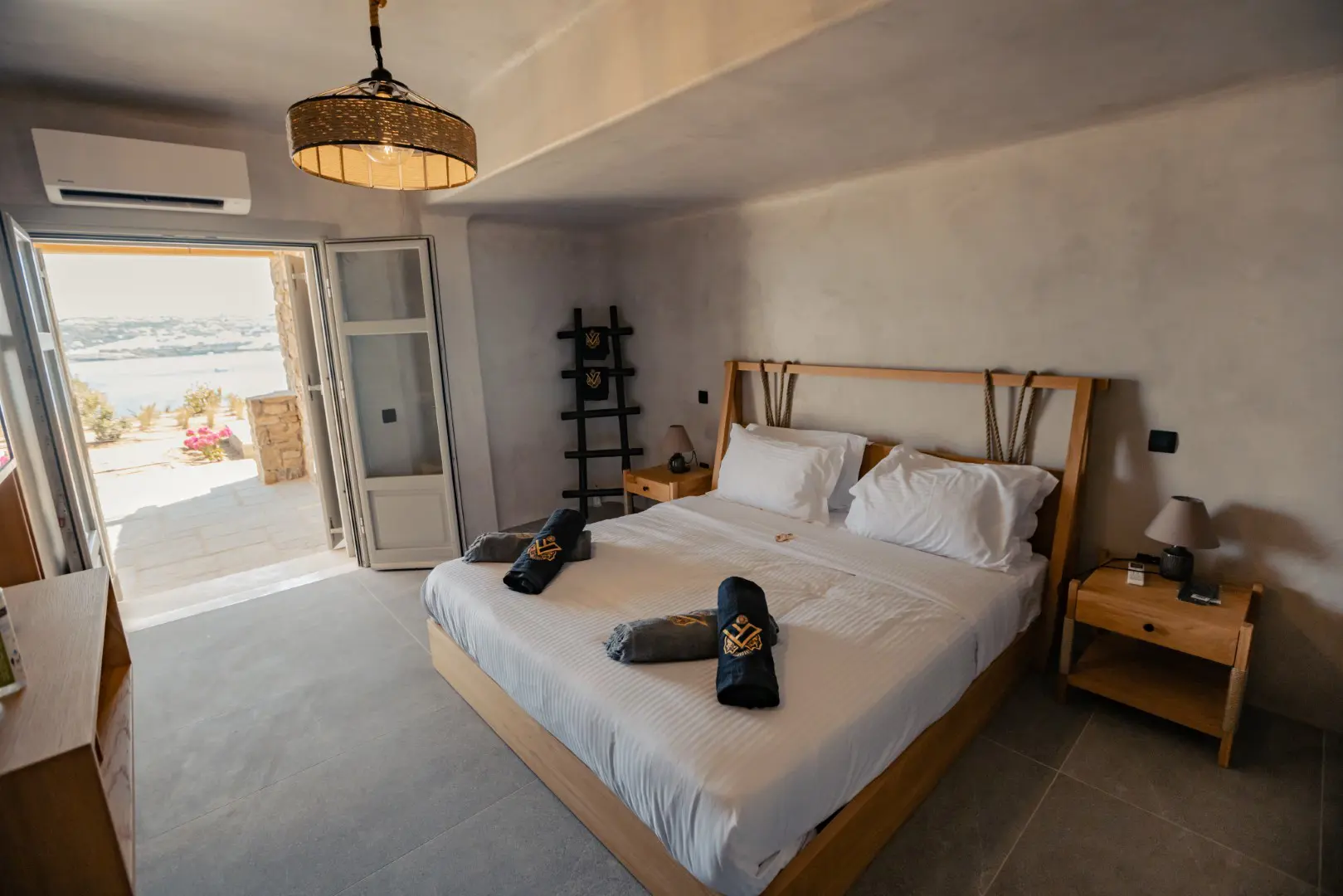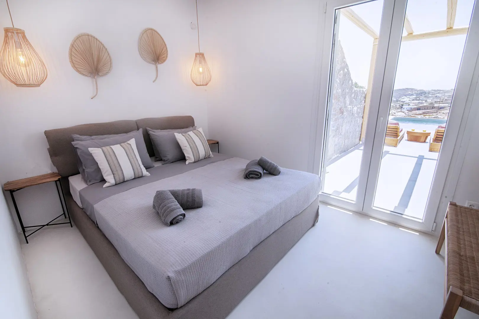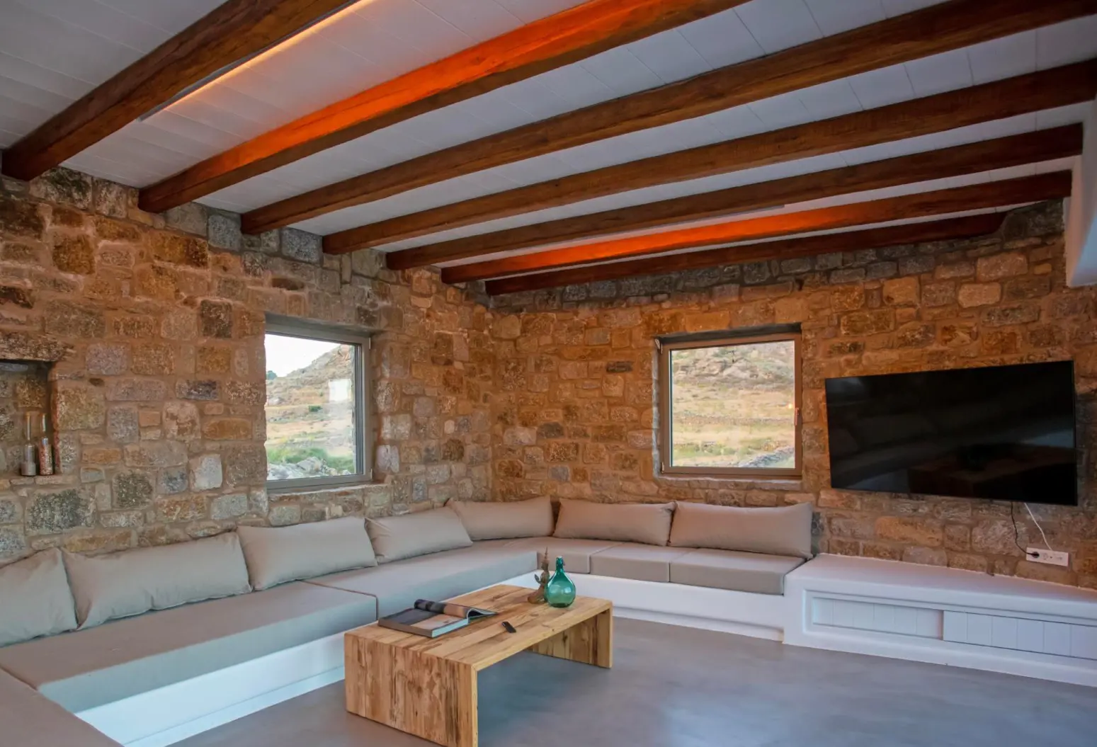 Located in Faros Armenistis area, this well-maintained villa of 500 sqm has 5 bedrooms and 4 bathrooms. The plot of 4,000 sqm, on which the property stands, has been fully landscaped. The plot includes a shaded, stone-built BBQ with dining area for up to 10 people and there is the swimming pool. The garden has an automatic irrigation system and the property is completely fenced. Only a few minutes away from the port and main town, the house provides sweeping views. Due to its strategic positioning, the property remains shielded from the prevailing north wind—an issue commonly experienced on the island. This advantageous placement results in both reduced maintenance expenses and minimal humidity worries. The nearest beach, Houlakia, is only at 3 km distance.