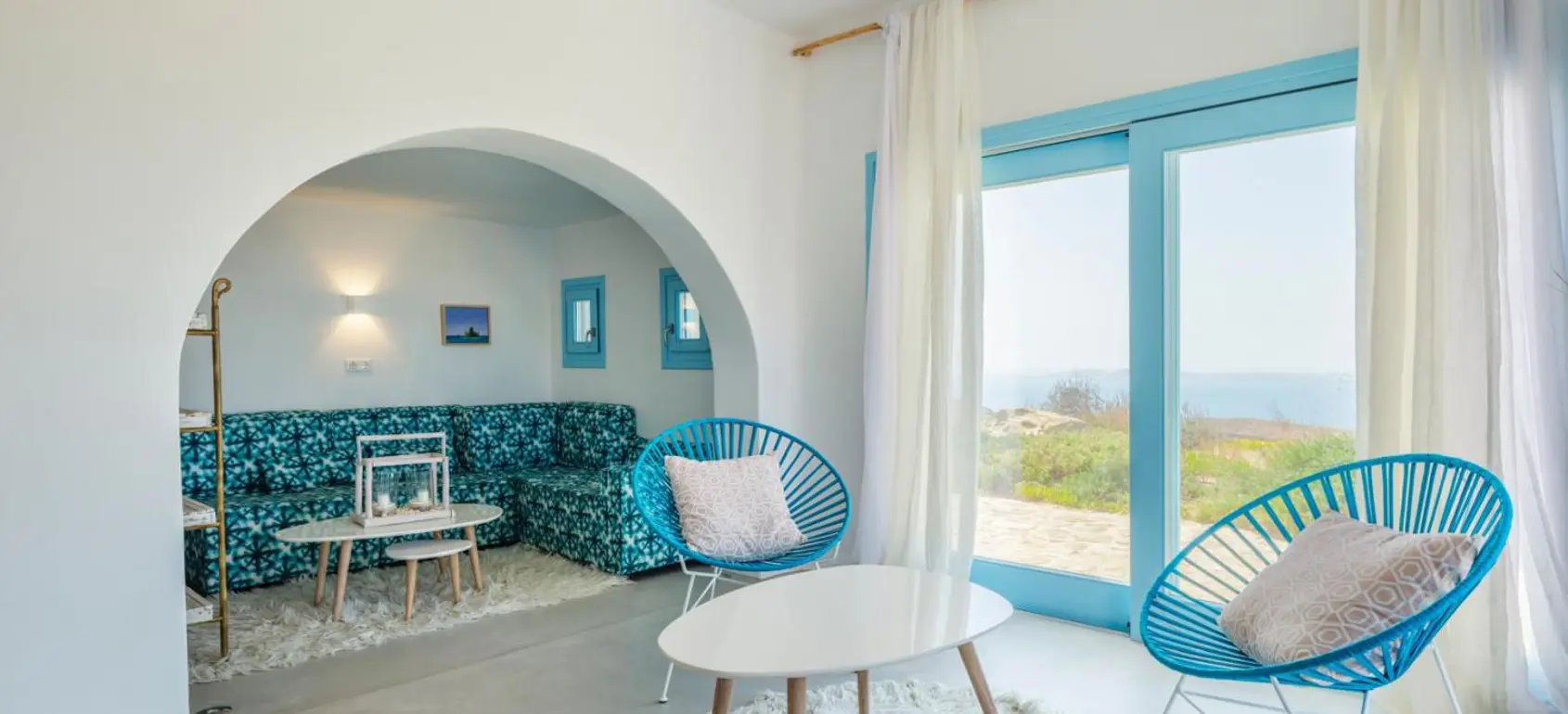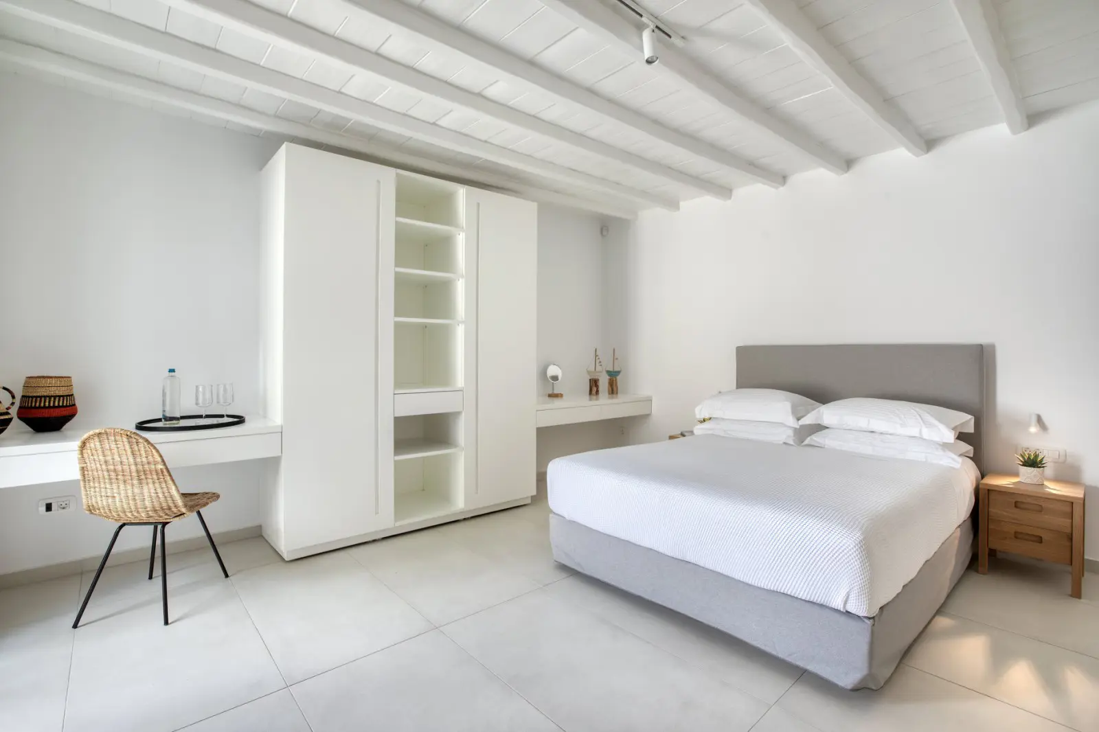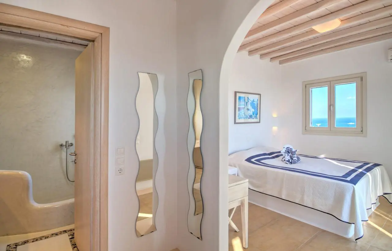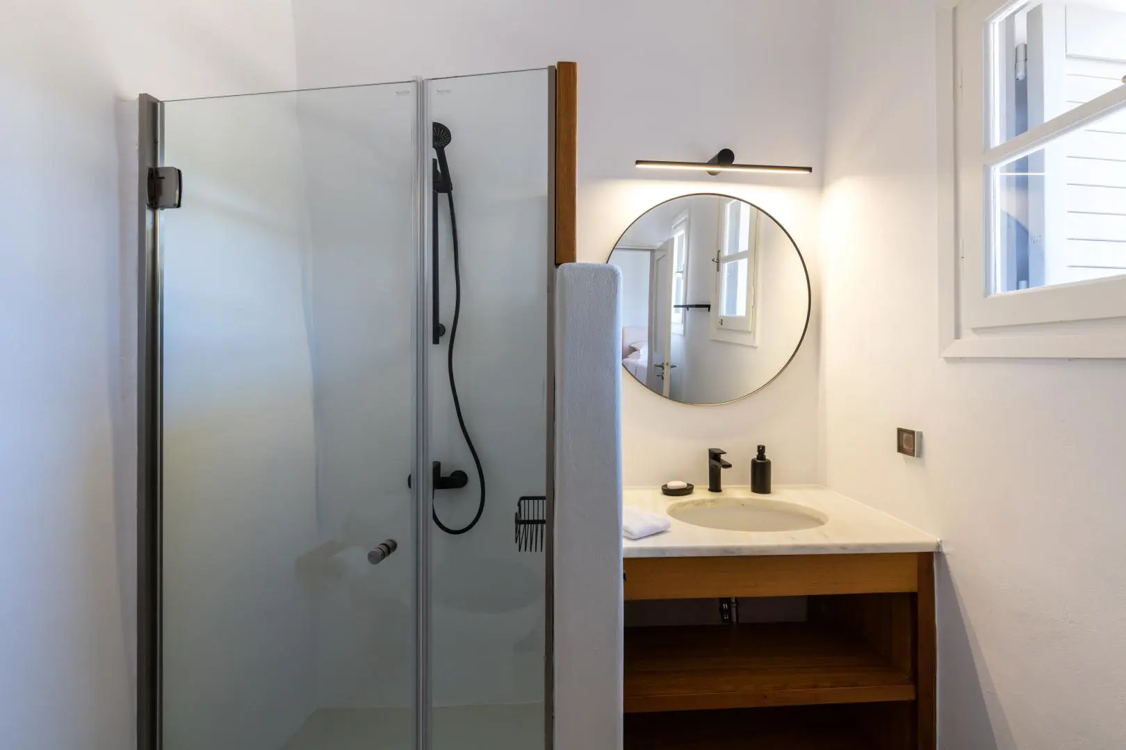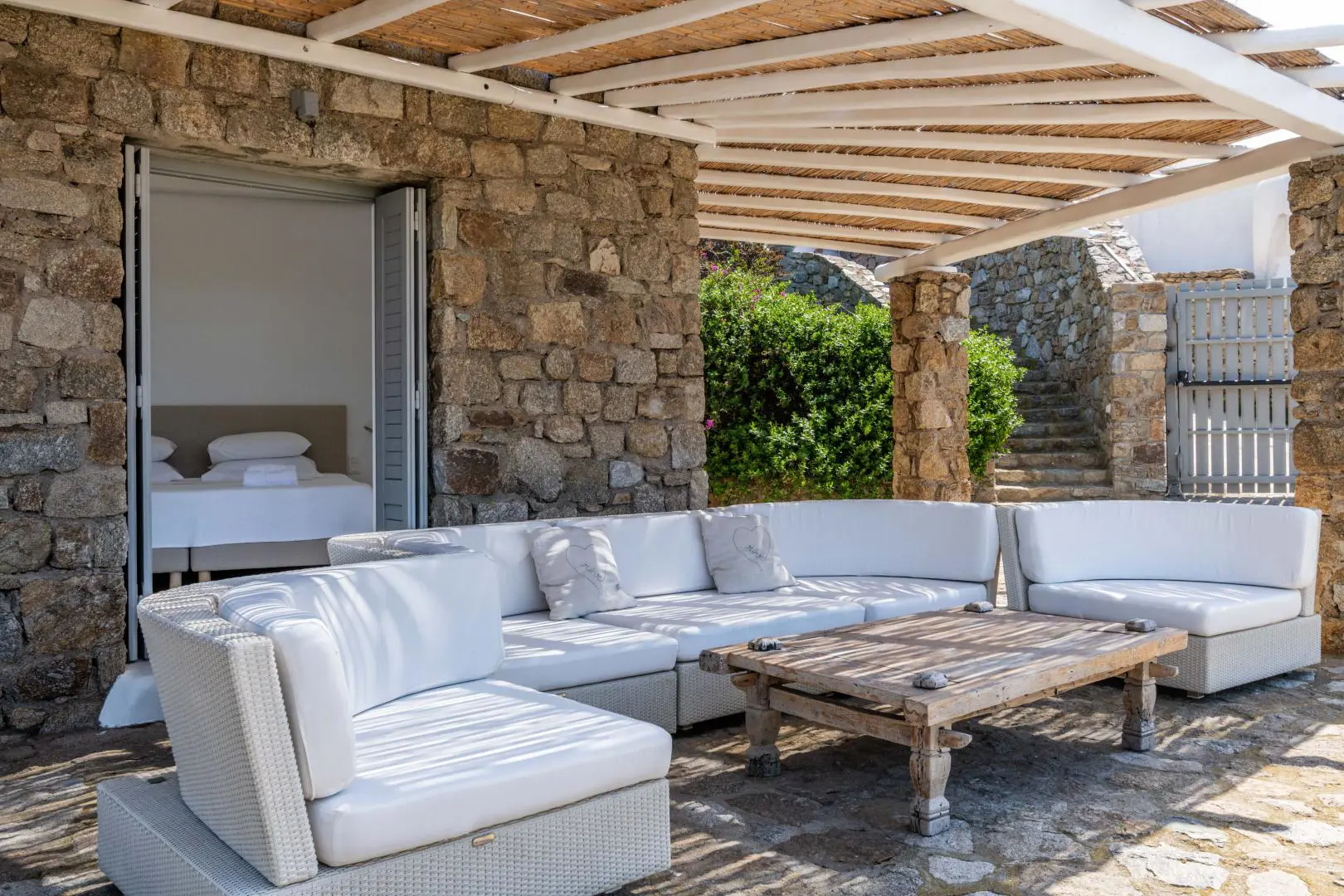 Located in Faros Armenistis area, this well-maintained villa of 500 sqm has 5 bedrooms and 4 bathrooms. The plot of 4,000 sqm, on which the property stands, has been fully landscaped. The plot includes a shaded, stone-built BBQ with dining area for up to 10 people and there is the swimming pool. The garden has an automatic irrigation system and the property is completely fenced. Only a few minutes away from the port and main town, the house provides sweeping views. Due to its strategic positioning, the property remains shielded from the prevailing north wind—an issue commonly experienced on the island. This advantageous placement results in both reduced maintenance expenses and minimal humidity worries. The nearest beach, Houlakia, is only at 3 km distance.