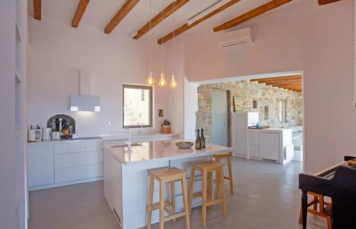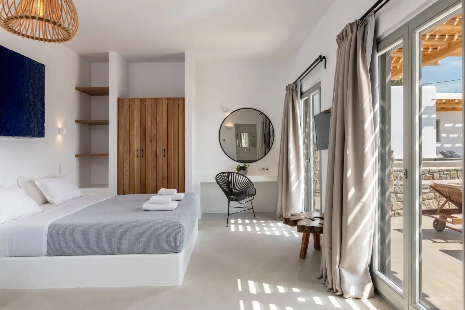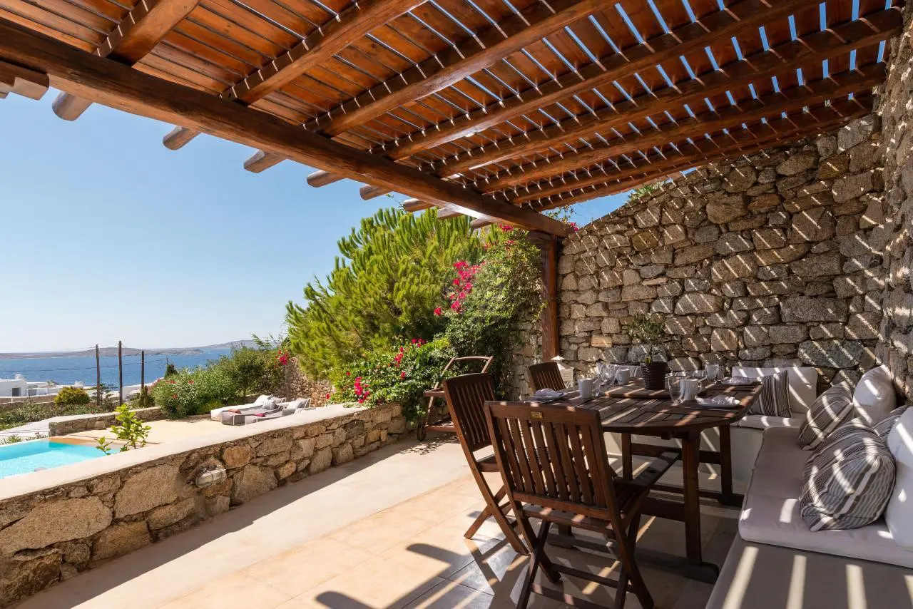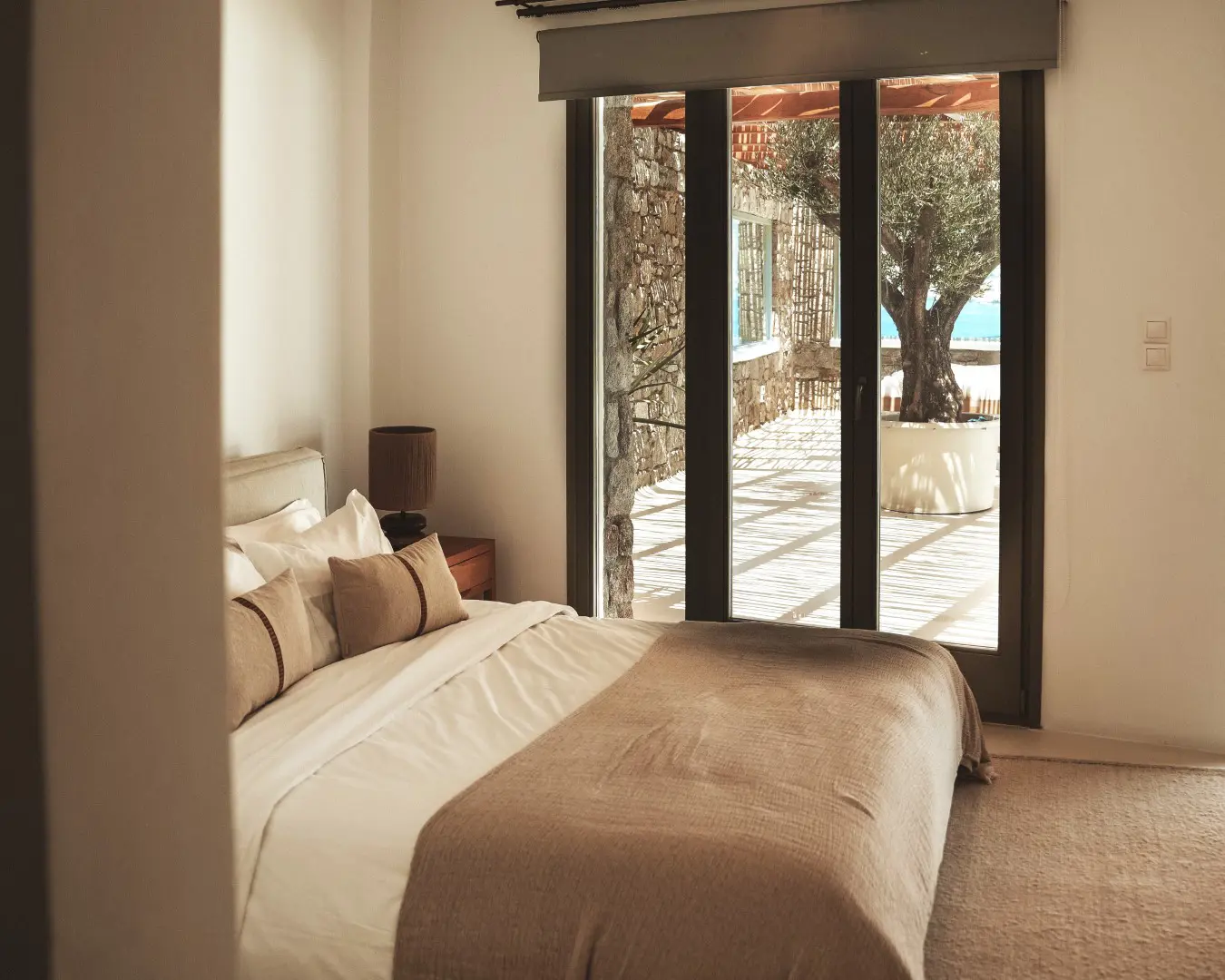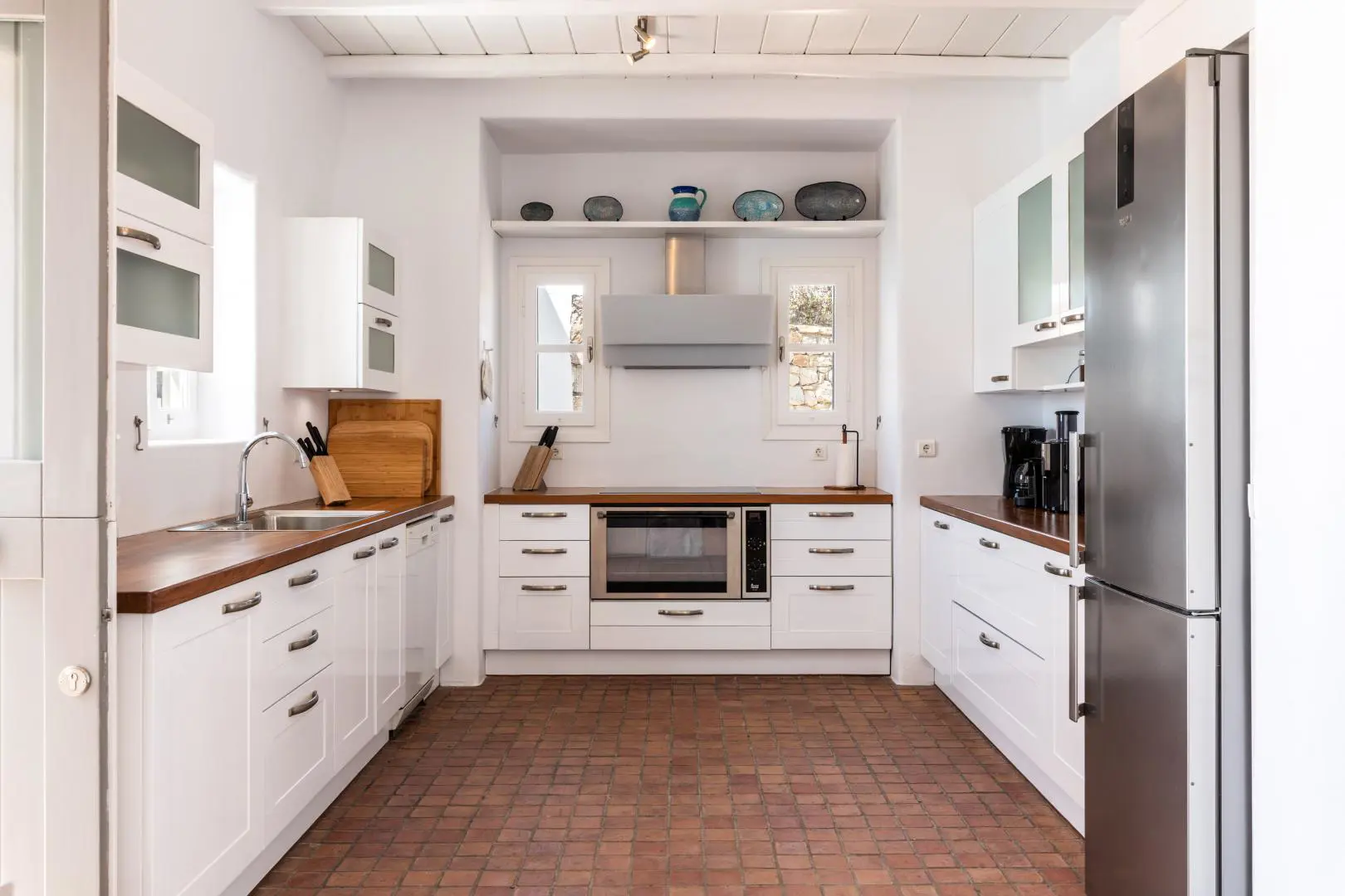 Located in Faros Armenistis area, this well-maintained villa of 500 sqm has 5 bedrooms and 4 bathrooms. The plot of 4,000 sqm, on which the property stands, has been fully landscaped. The plot includes a shaded, stone-built BBQ with dining area for up to 10 people and there is the swimming pool. The garden has an automatic irrigation system and the property is completely fenced. Only a few minutes away from the port and main town, the house provides sweeping views. Due to its strategic positioning, the property remains shielded from the prevailing north wind—an issue commonly experienced on the island. This advantageous placement results in both reduced maintenance expenses and minimal humidity worries. The nearest beach, Houlakia, is only at 3 km distance.