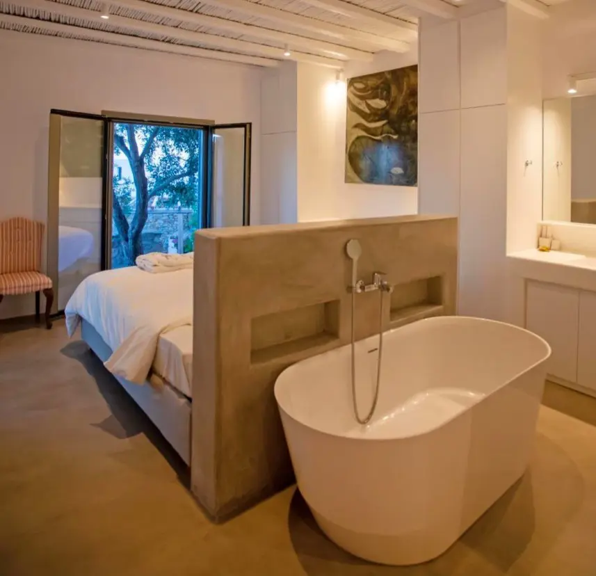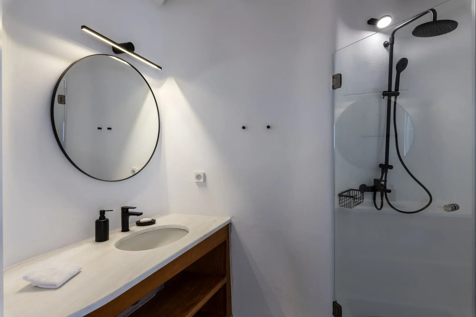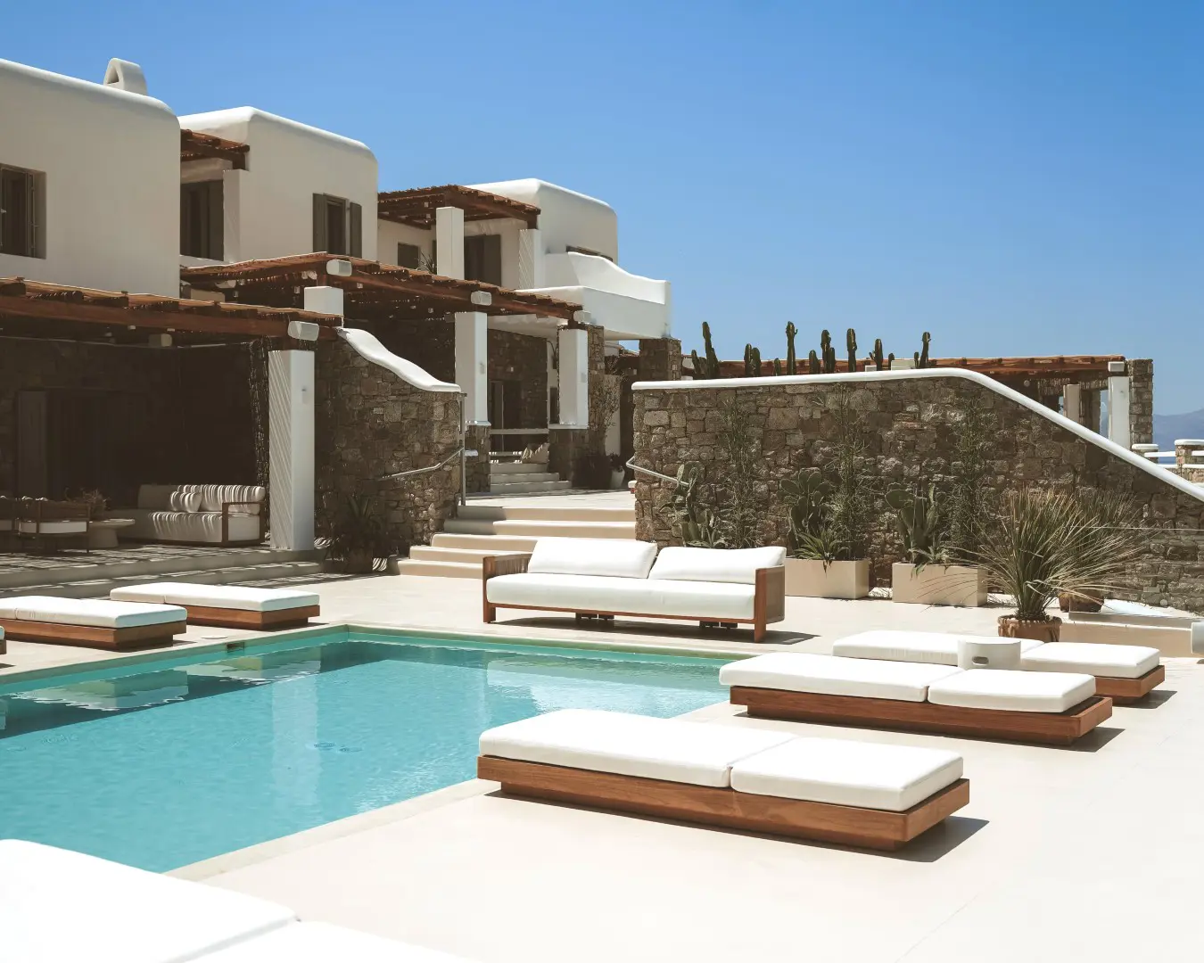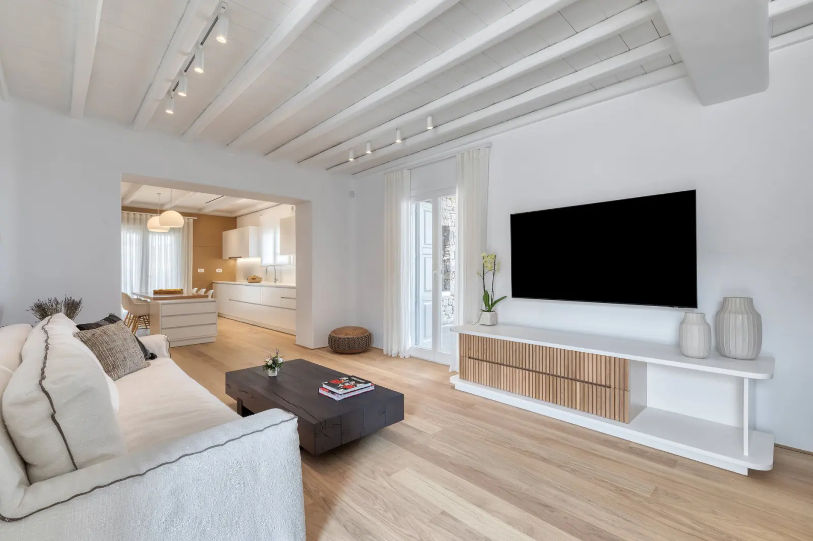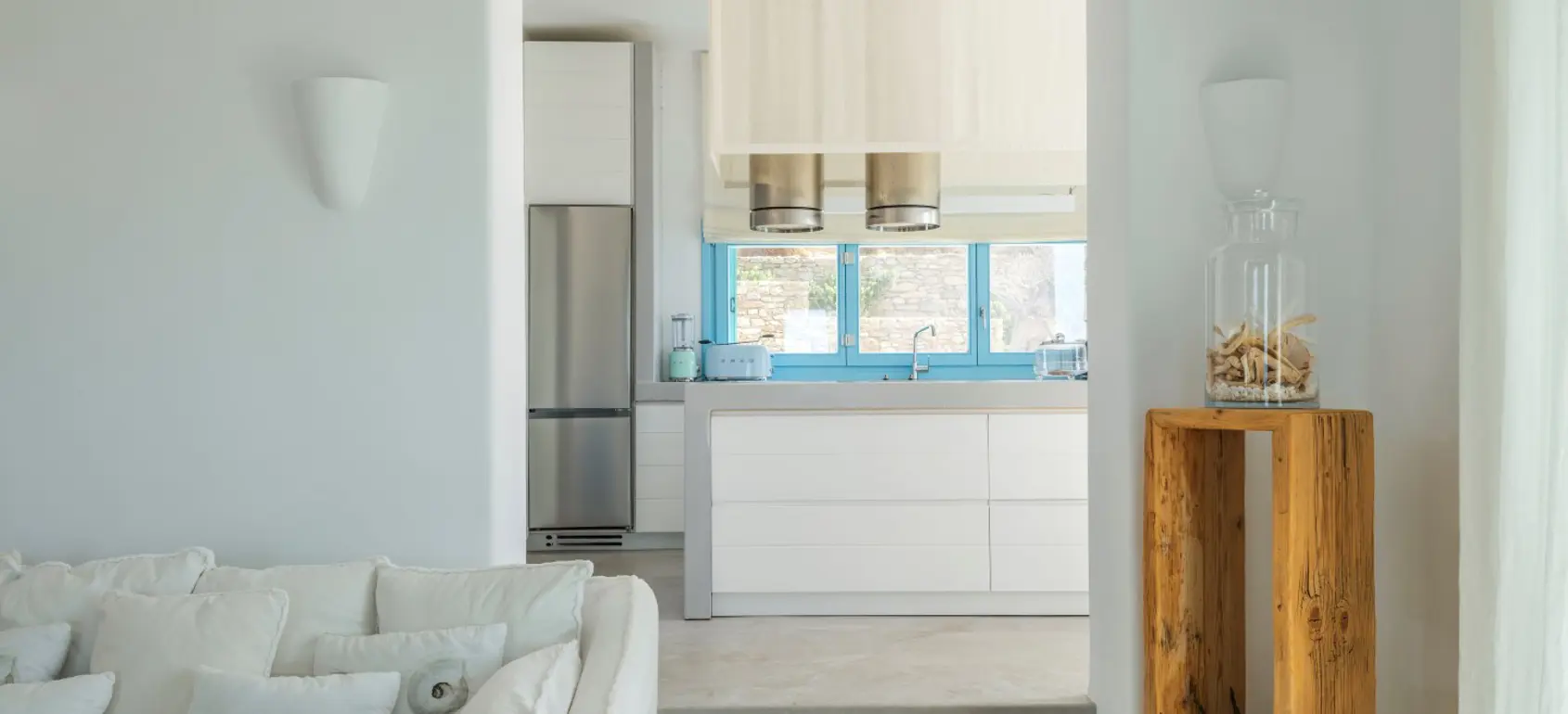 Located in Faros Armenistis area, this well-maintained villa of 500 sqm has 5 bedrooms and 4 bathrooms. The plot of 4,000 sqm, on which the property stands, has been fully landscaped. The plot includes a shaded, stone-built BBQ with dining area for up to 10 people and there is the swimming pool. The garden has an automatic irrigation system and the property is completely fenced. Only a few minutes away from the port and main town, the house provides sweeping views. Due to its strategic positioning, the property remains shielded from the prevailing north wind—an issue commonly experienced on the island. This advantageous placement results in both reduced maintenance expenses and minimal humidity worries. The nearest beach, Houlakia, is only at 3 km distance.