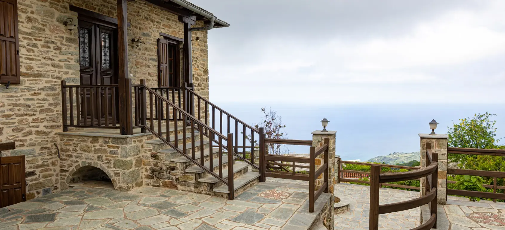This traditional stone house is located in a prominent position on the edge of Zagora offering unlimited views of the Aegean Sea. This unique house was built in 1836, while the renovation was carried out in 2012 with particular attention to detail. The two traditional elements of Pelion, stone and wood, were the central structural elements.