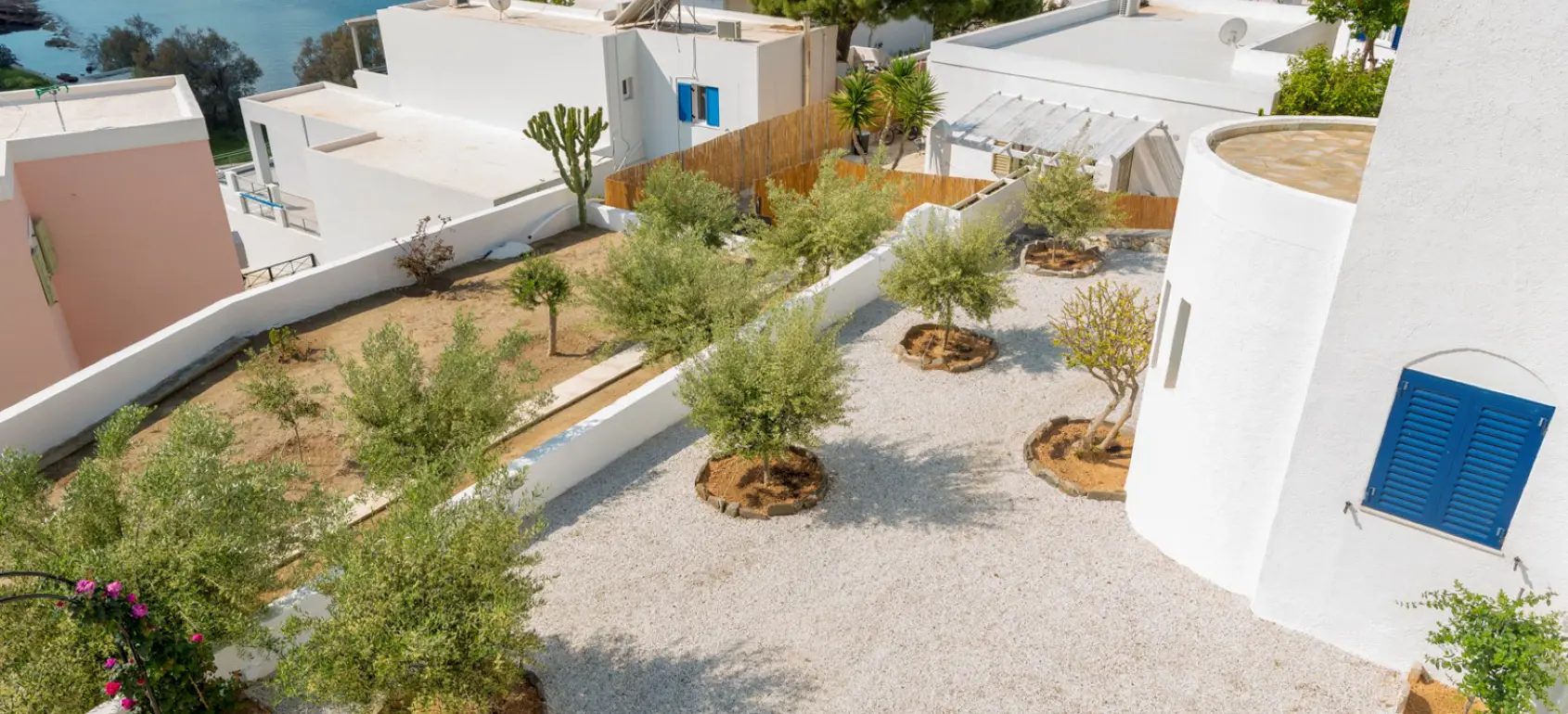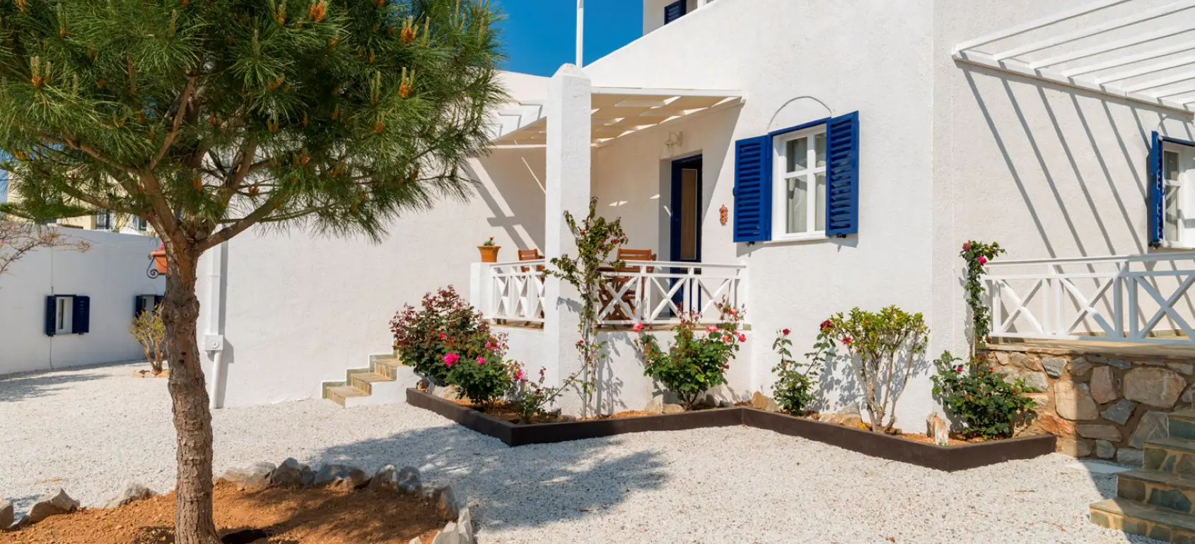 The property is built close to the seashore with a Cycladic style architecture and was used as rental apartments. It includes 4 buildings with total 10 independent apartments (11 bedrooms, 10 bathrooms, 10 kitchens).