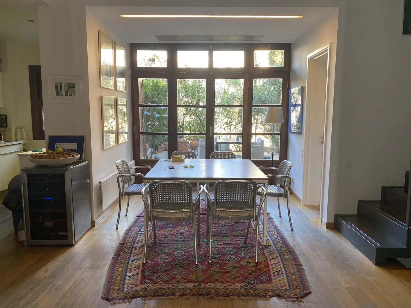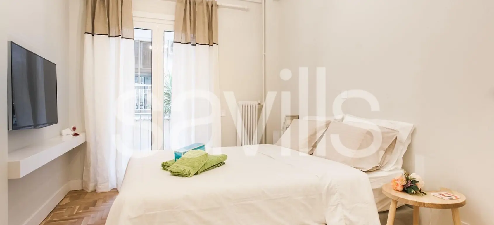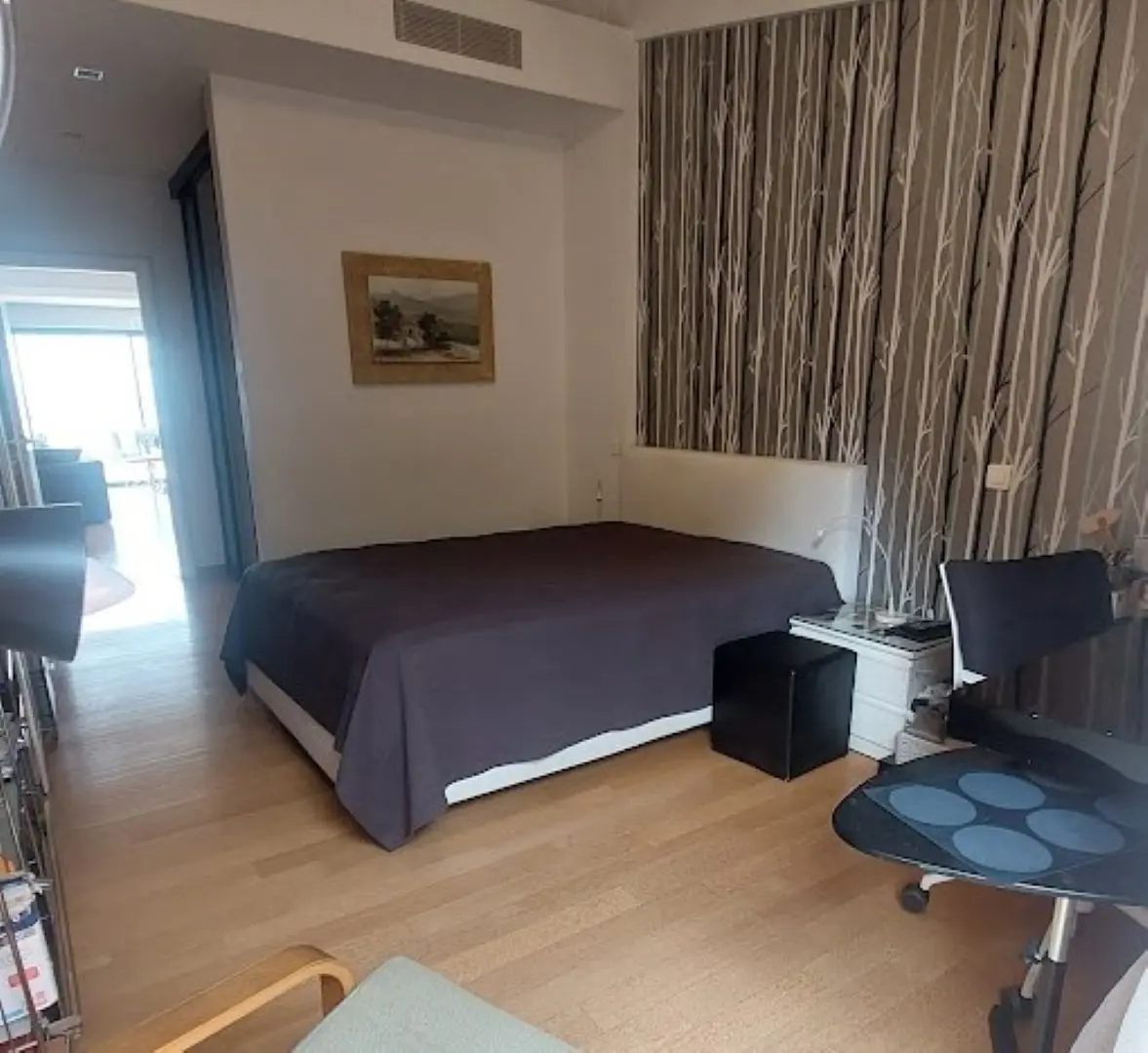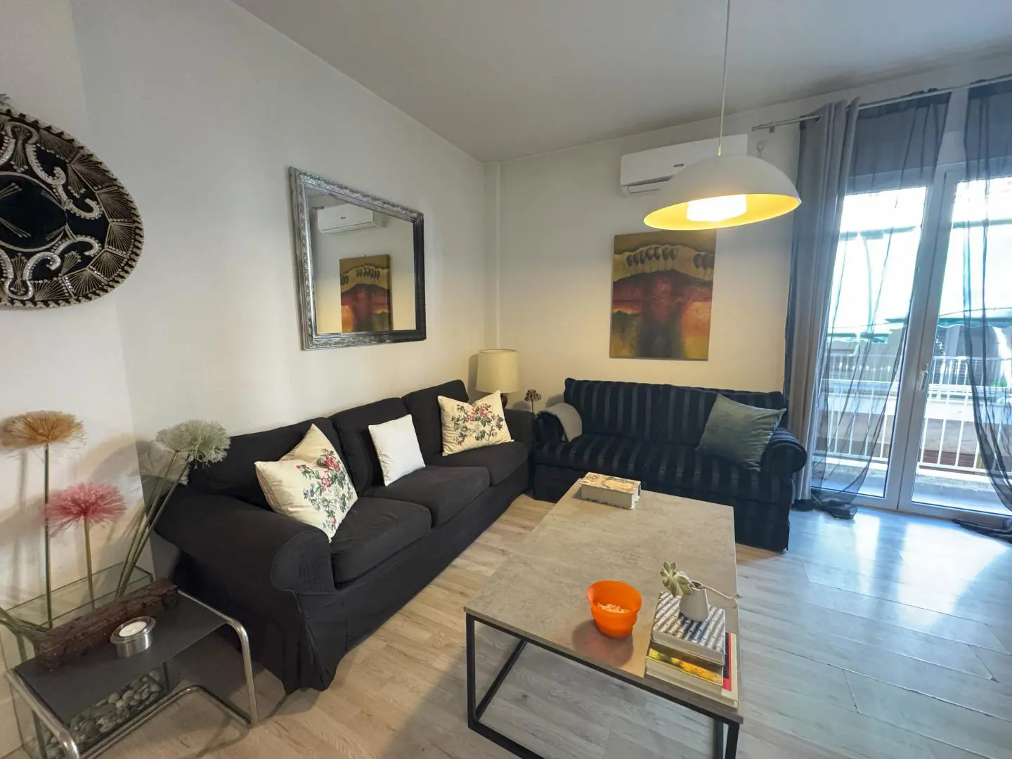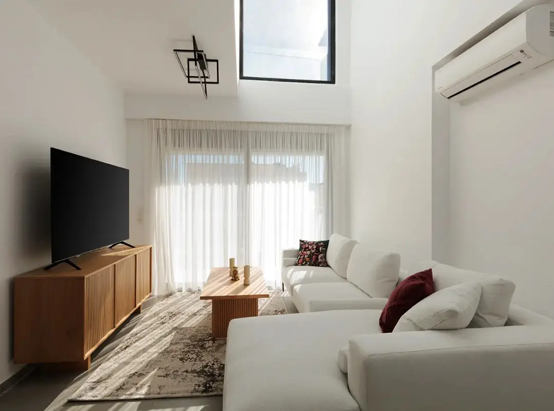 Step into a bright, open-plan living space that leads out to a serene balcony overlooking lush orange trees — the perfect spot to sip your morning coffee or unwind after a day in the city. The apartment is fully air-conditioned and heated, with ultra-fast Wi-Fi that makes remote work seamless.