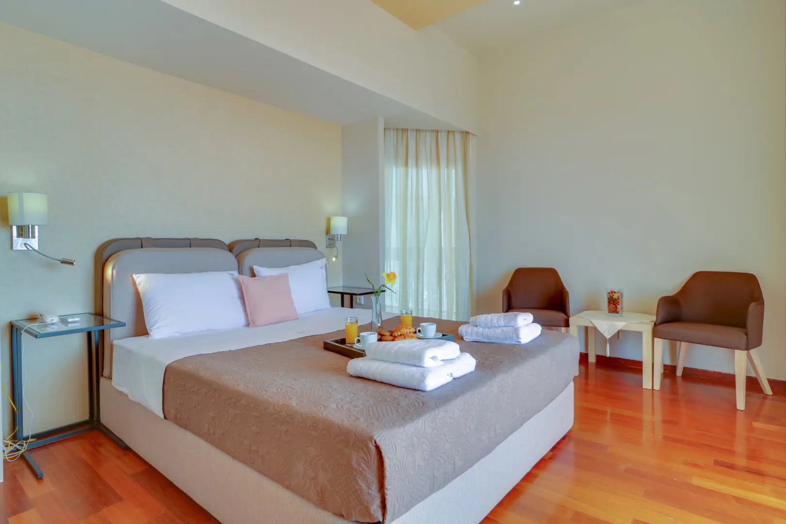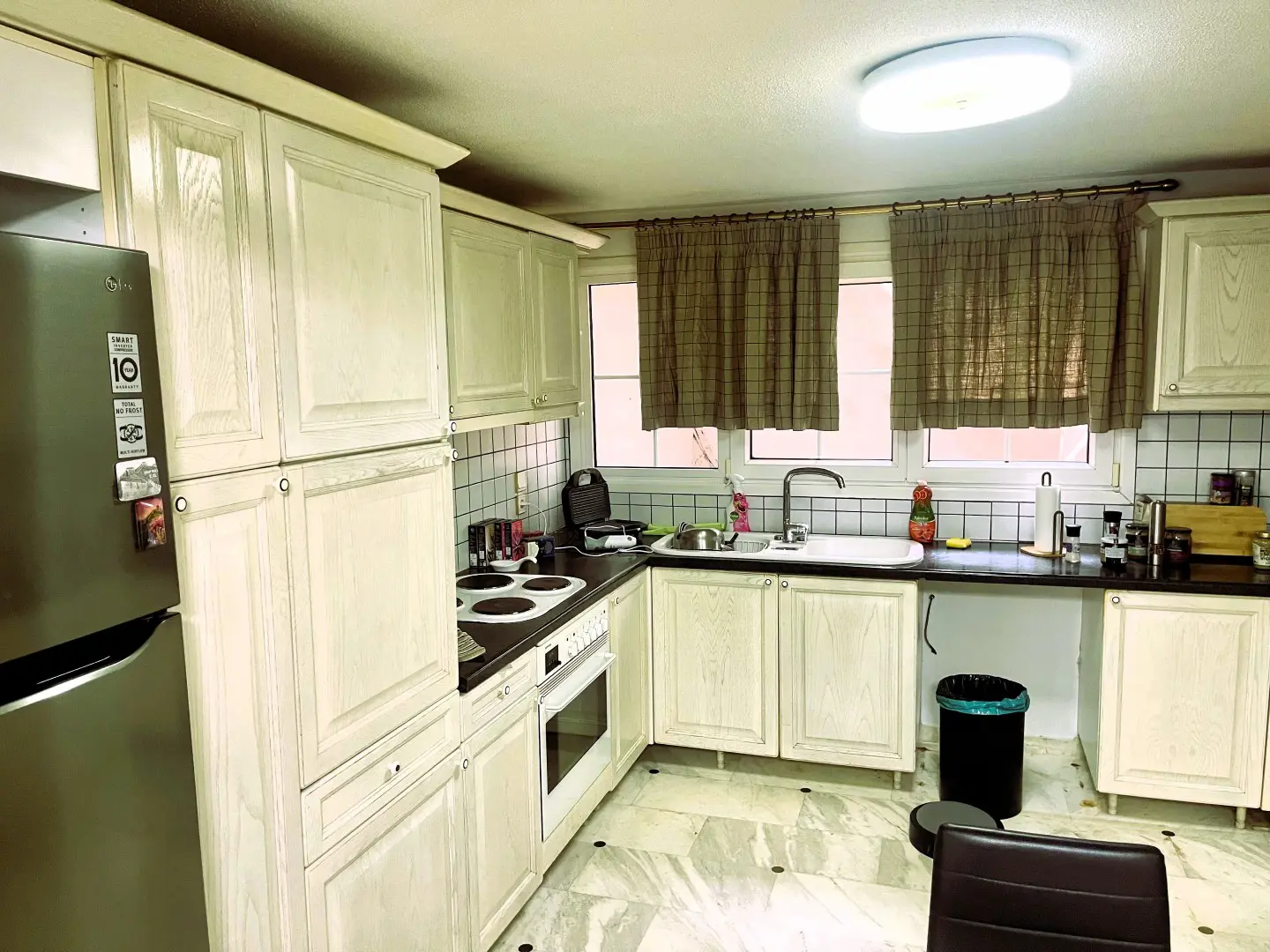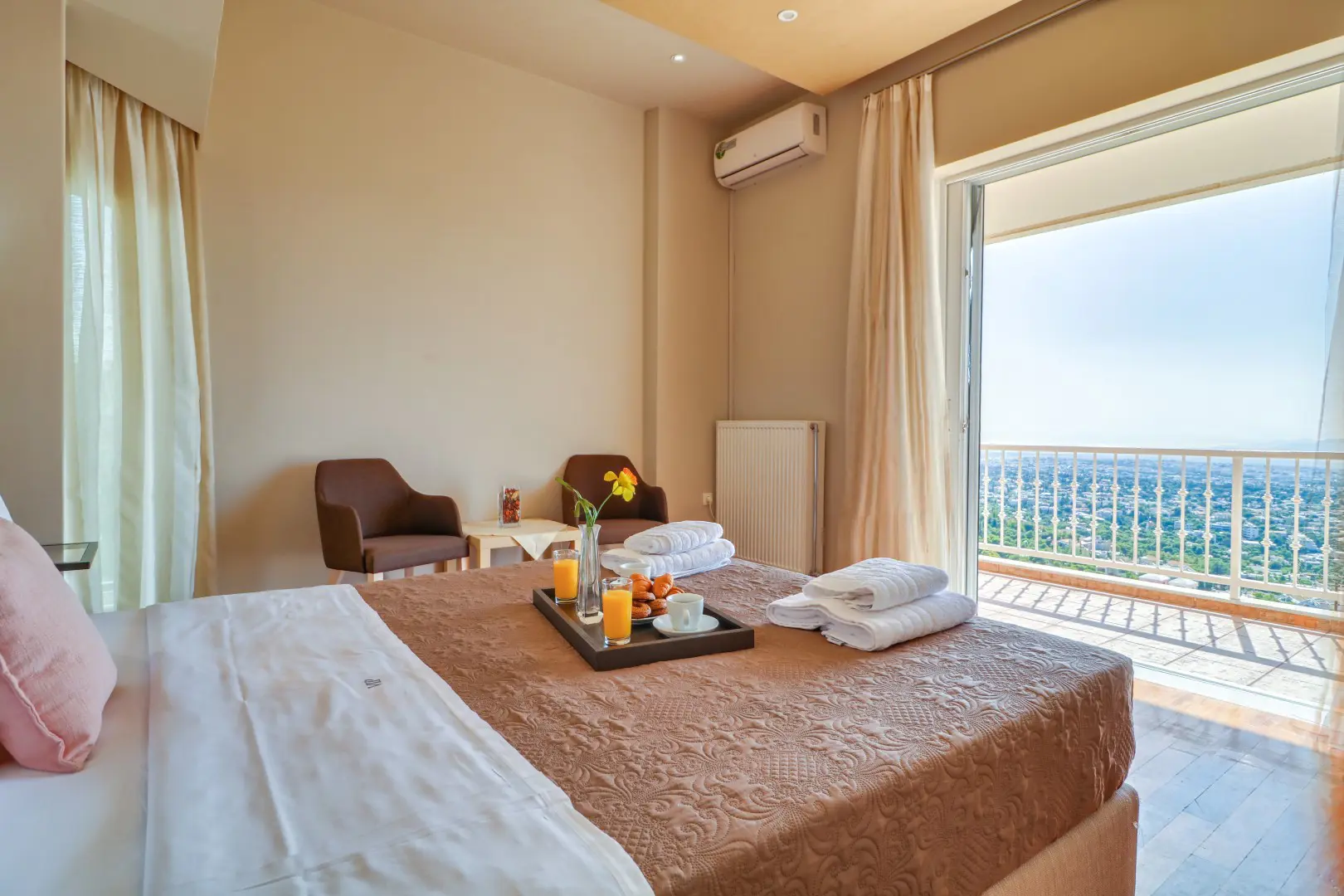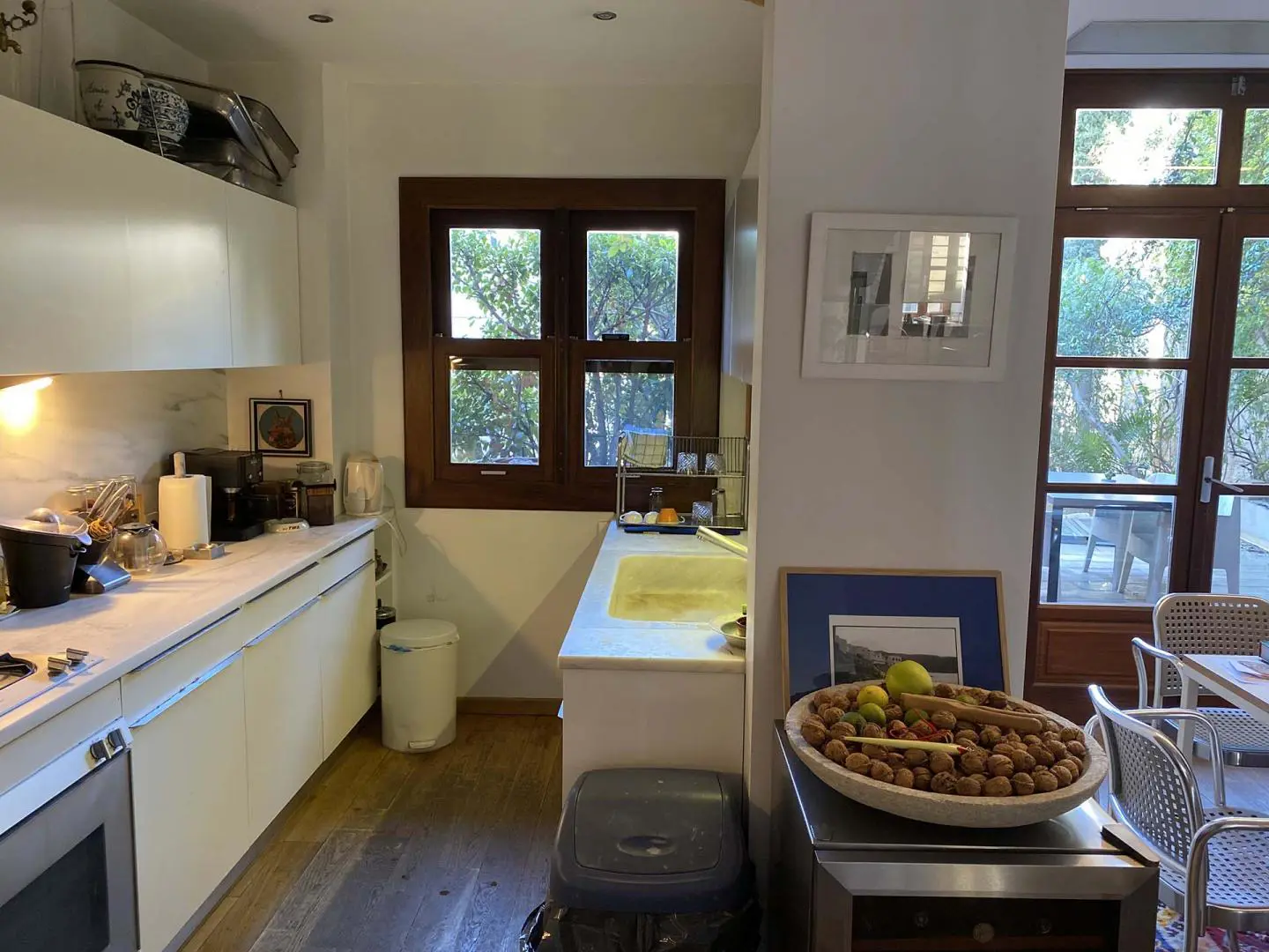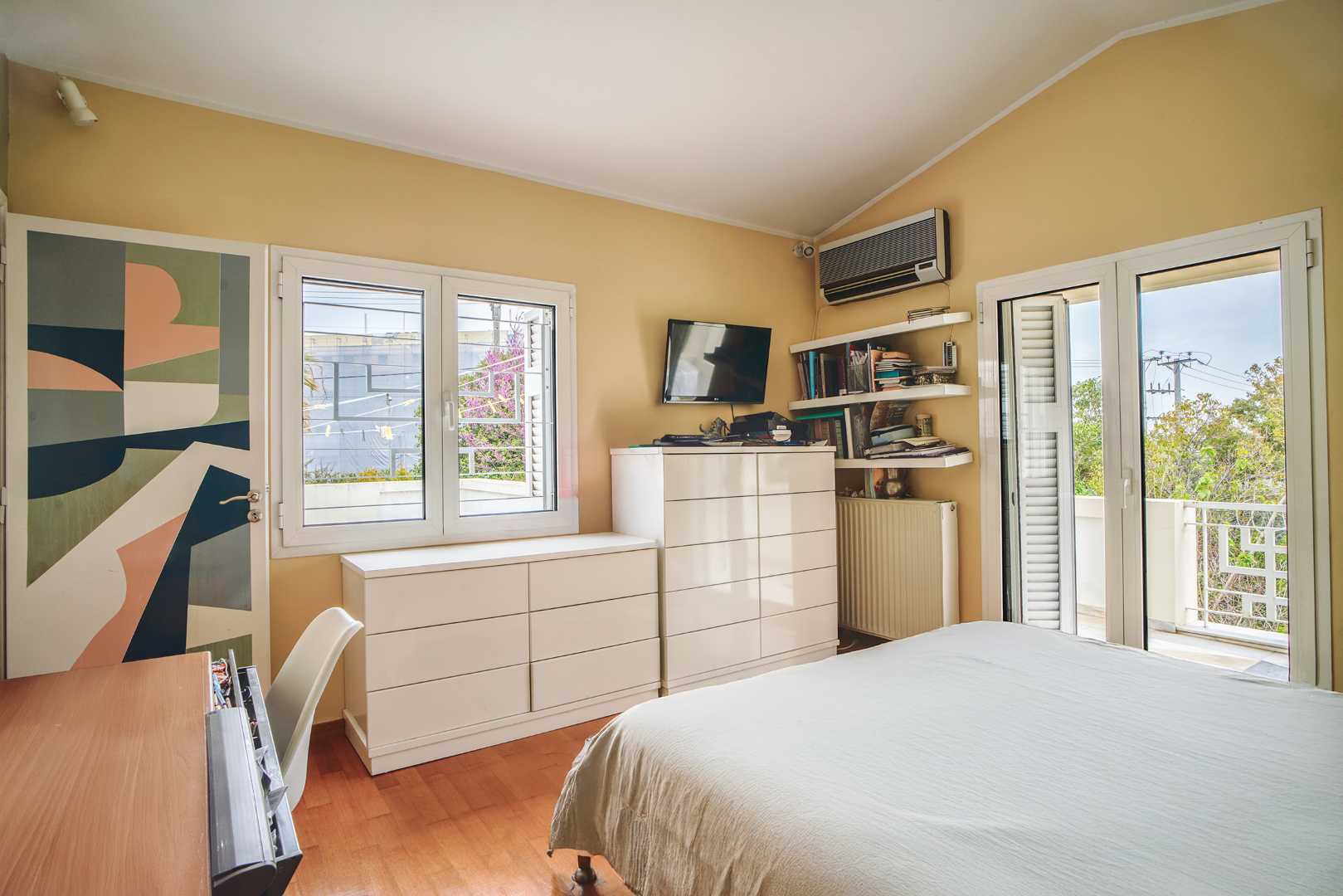 Step into a bright, open-plan living space that leads out to a serene balcony overlooking lush orange trees — the perfect spot to sip your morning coffee or unwind after a day in the city. The apartment is fully air-conditioned and heated, with ultra-fast Wi-Fi that makes remote work seamless.