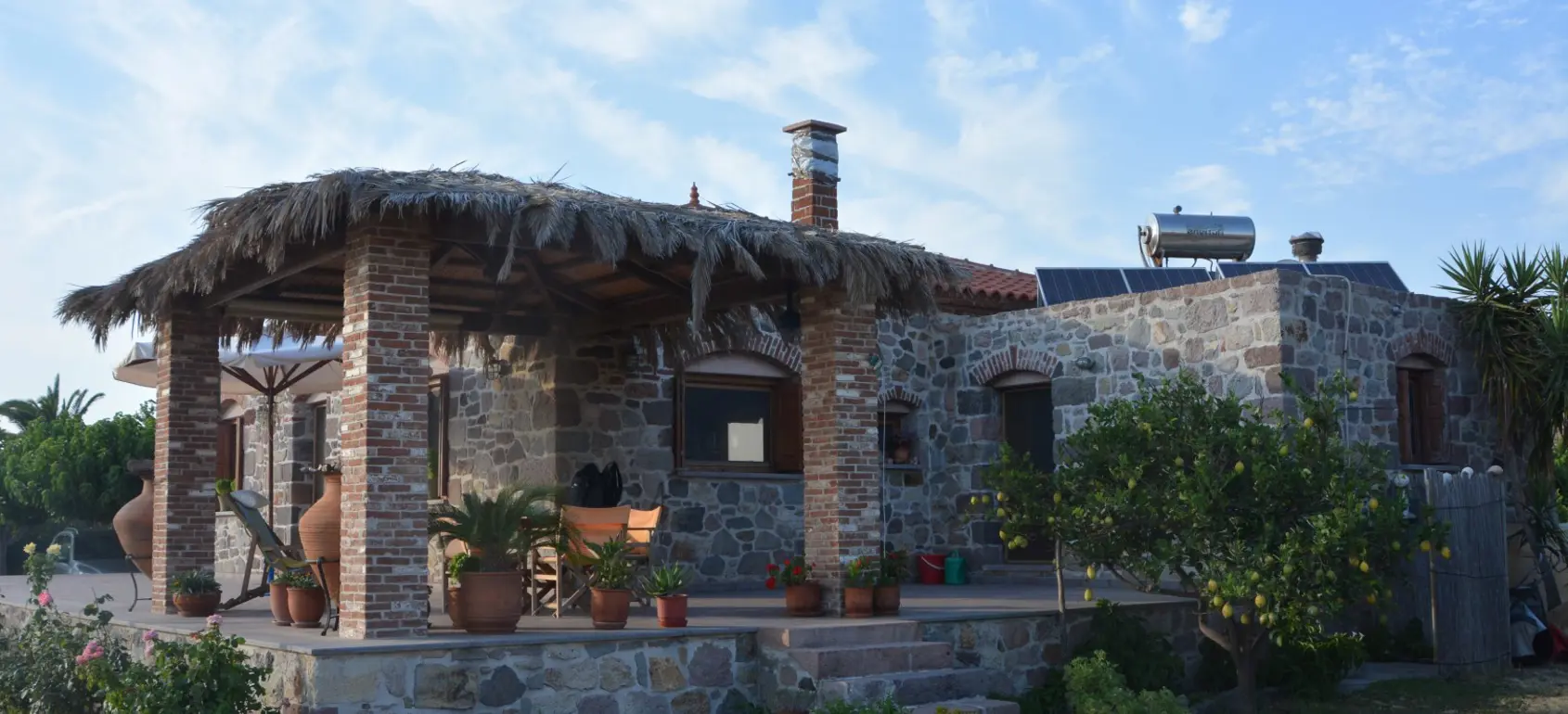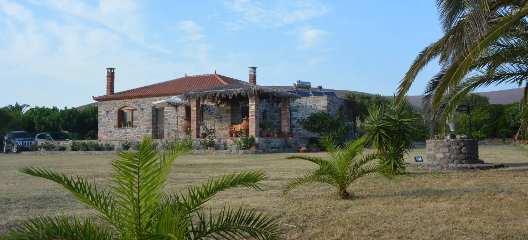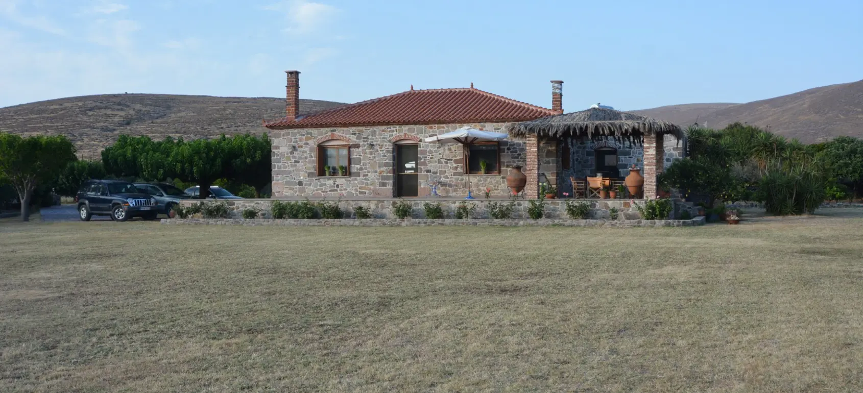 The house is located near the seaside close to Sigri village on the west part of Mytilene Island. The residence covers a total area of 118 sqm on a 10,159 sqm land plot. One level house with a living and dining area, an open plan kitchen and three bedrooms and two bathrooms. Outside there is a large terrace with a beautiful semi covered space that offer panoramic view to the sea.