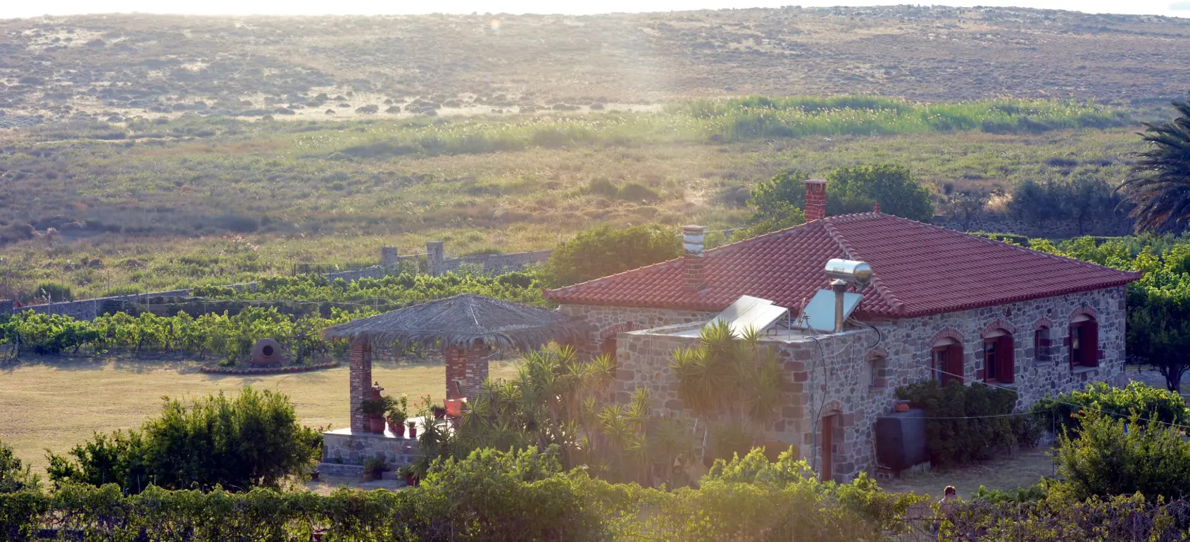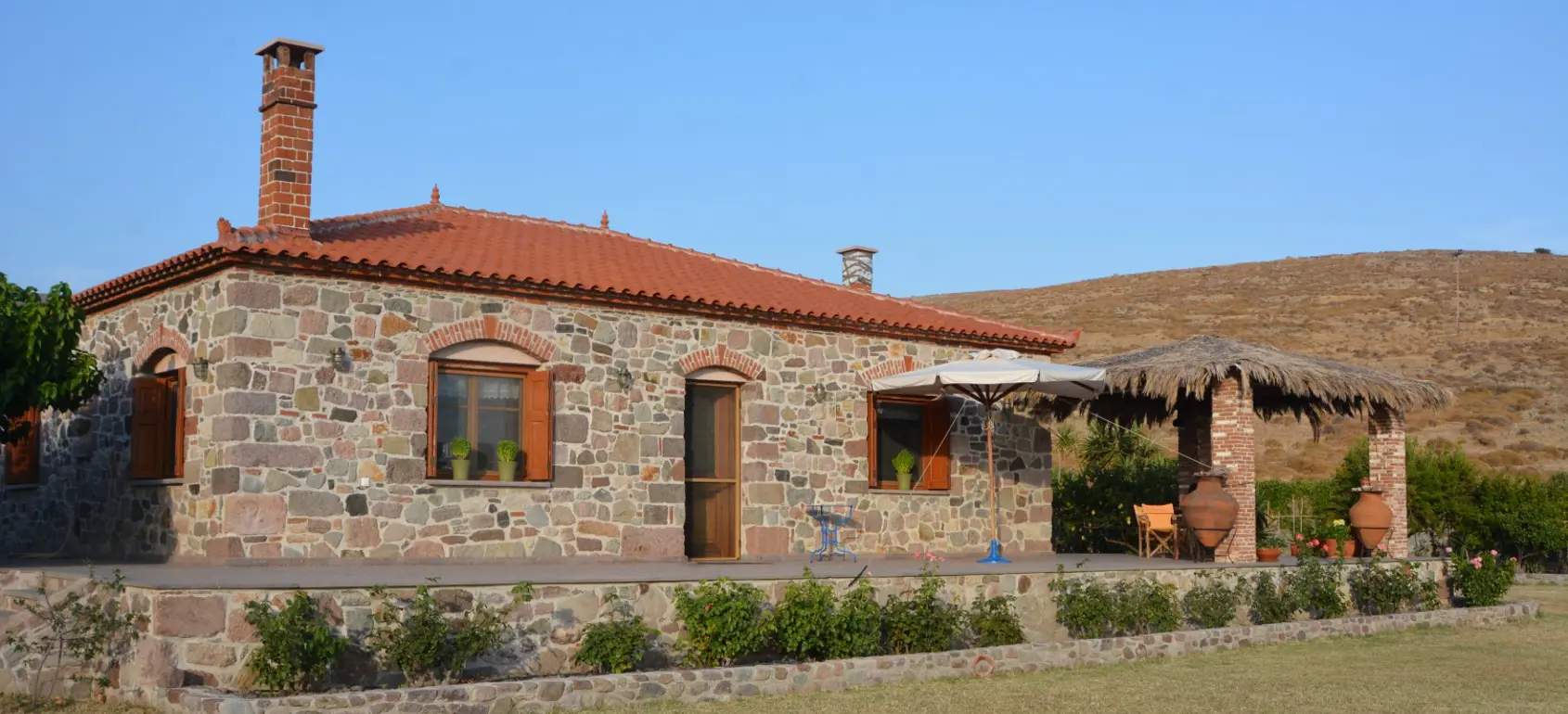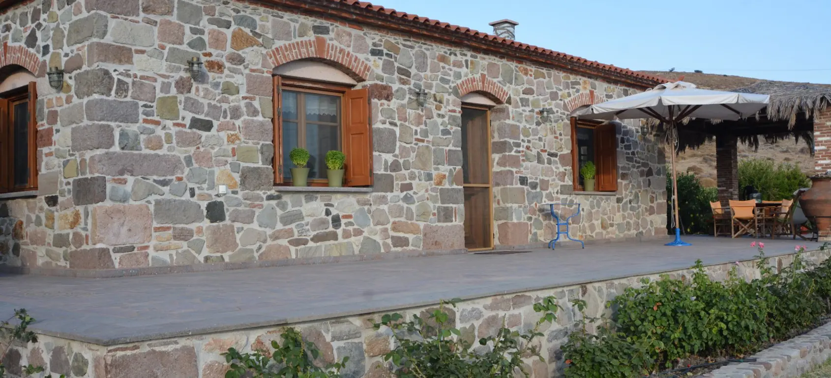 The house is located near the seaside close to Sigri village on the west part of Mytilene Island. The residence covers a total area of 118 sqm on a 10,159 sqm land plot. One level house with a living and dining area, an open plan kitchen and three bedrooms and two bathrooms. Outside there is a large terrace with a beautiful semi covered space that offer panoramic view to the sea.