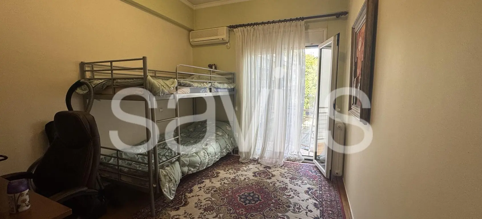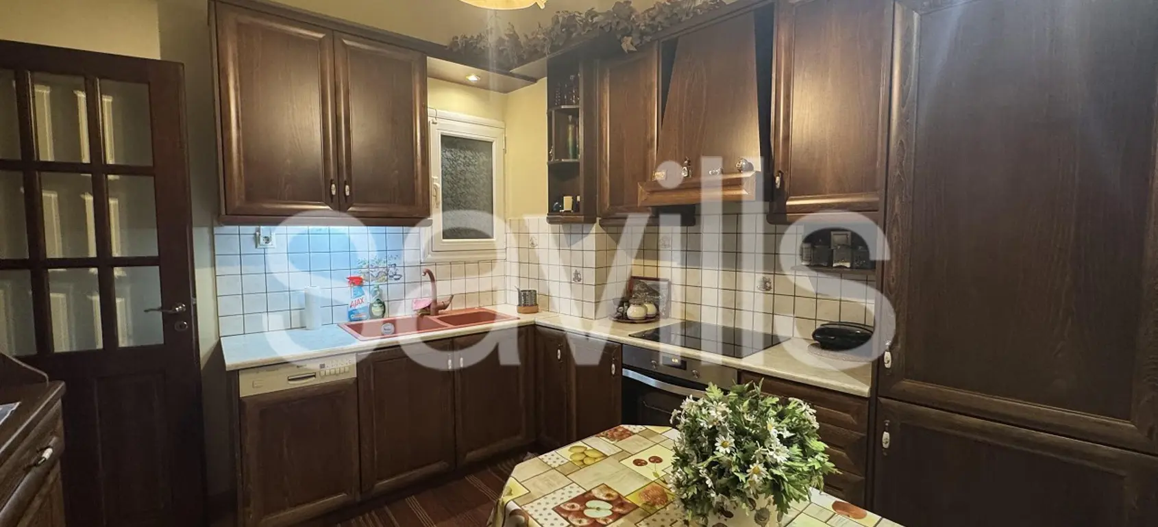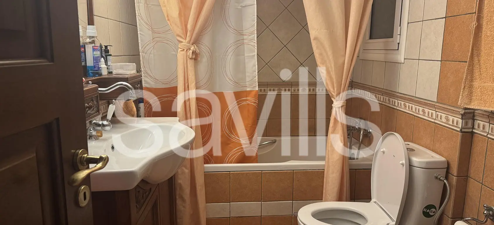 The apartment consists of the entrance area, a living room, an independent kitchen, 3 bedrooms, 1 bathroom, 1 wc. There is a front balcony, and also a smaller one at the back side. It has natural gas central heating (in operation), security door, aluminum frames with double glazing, mosquito frames, built-in electrical appliances (oven, hobs, refrigerator, washing machine laundry), 4 air condition inverters, alarm, solar water heater, automatic watering system on the front balcony, electric awnings and electric blinds on the facade. Suitable for residential or commercial use.