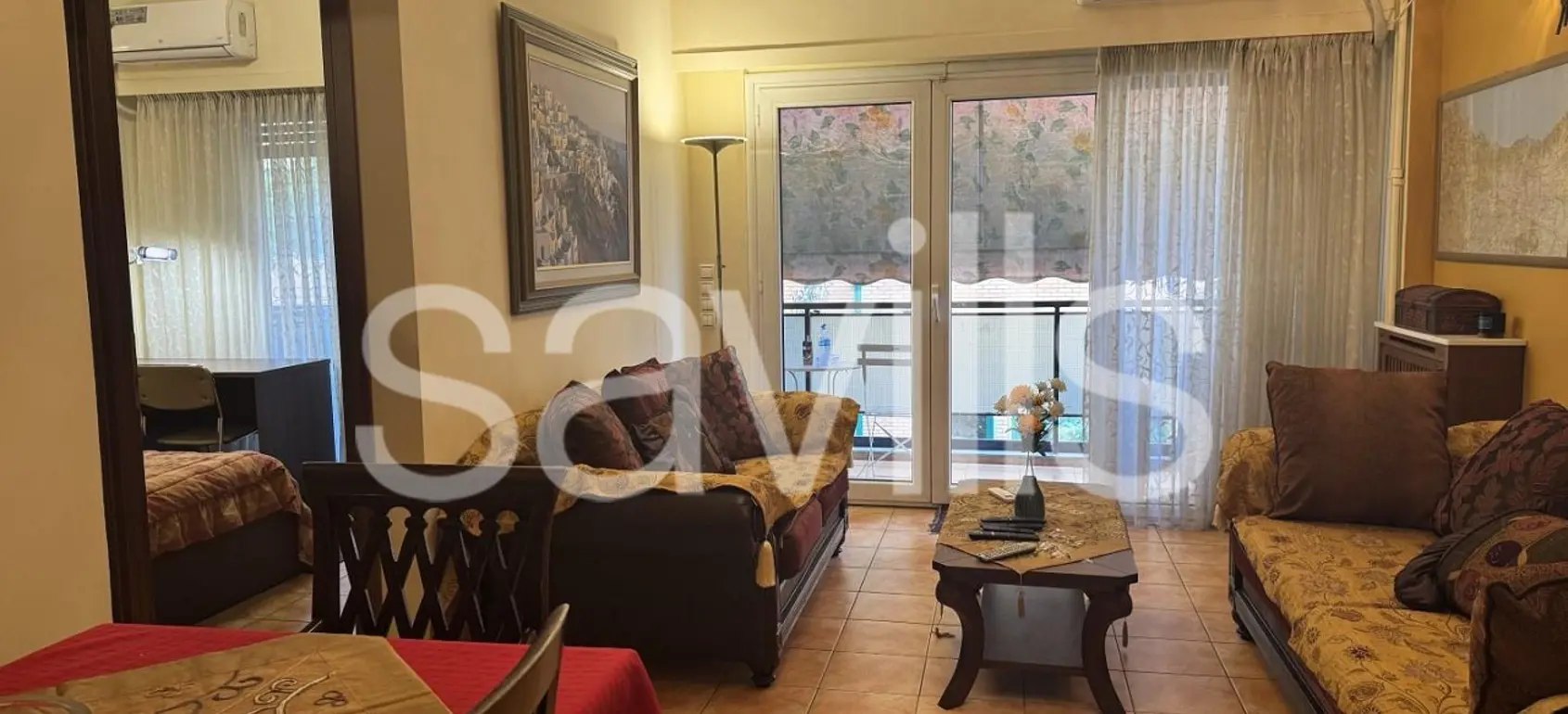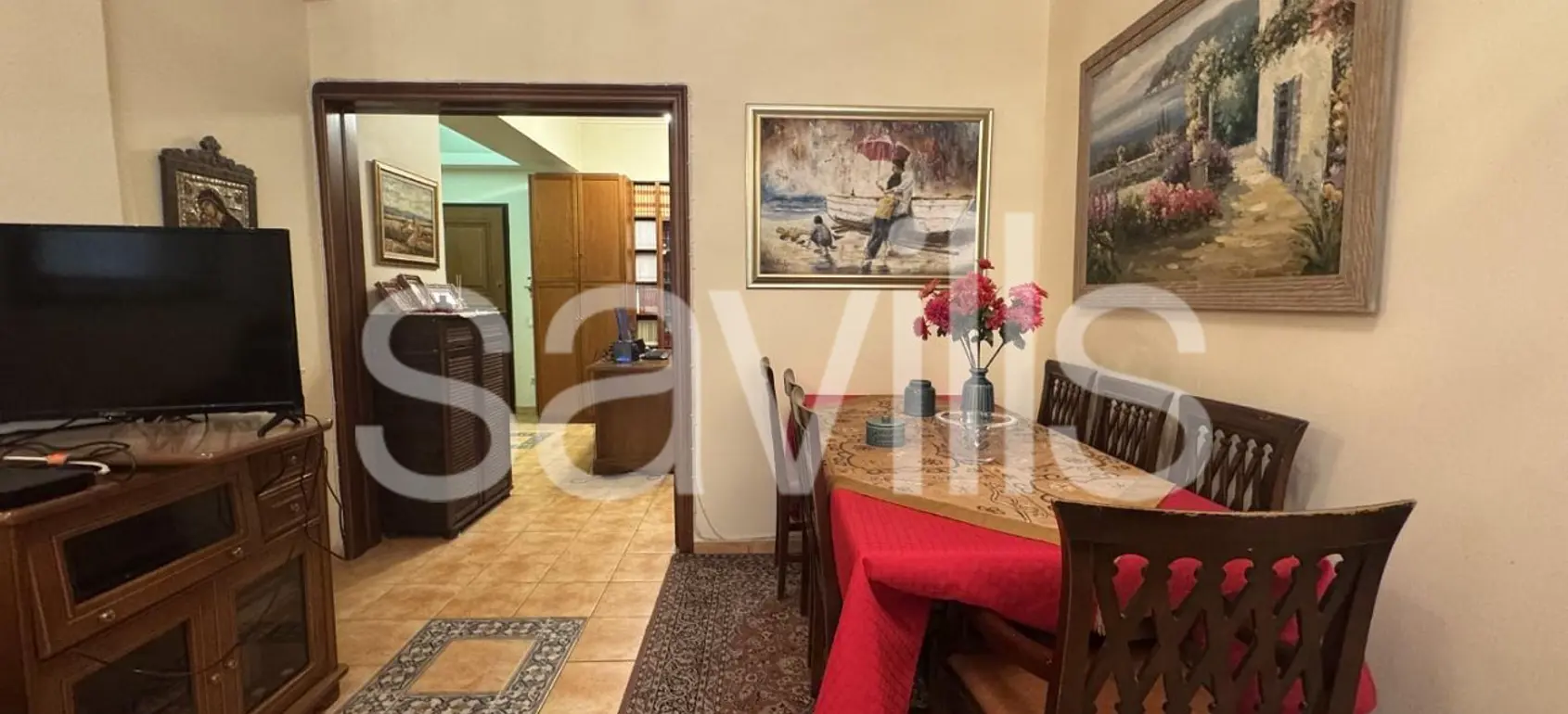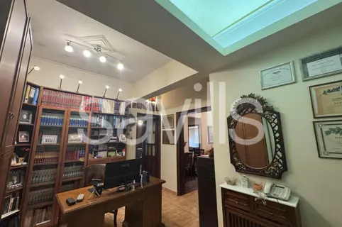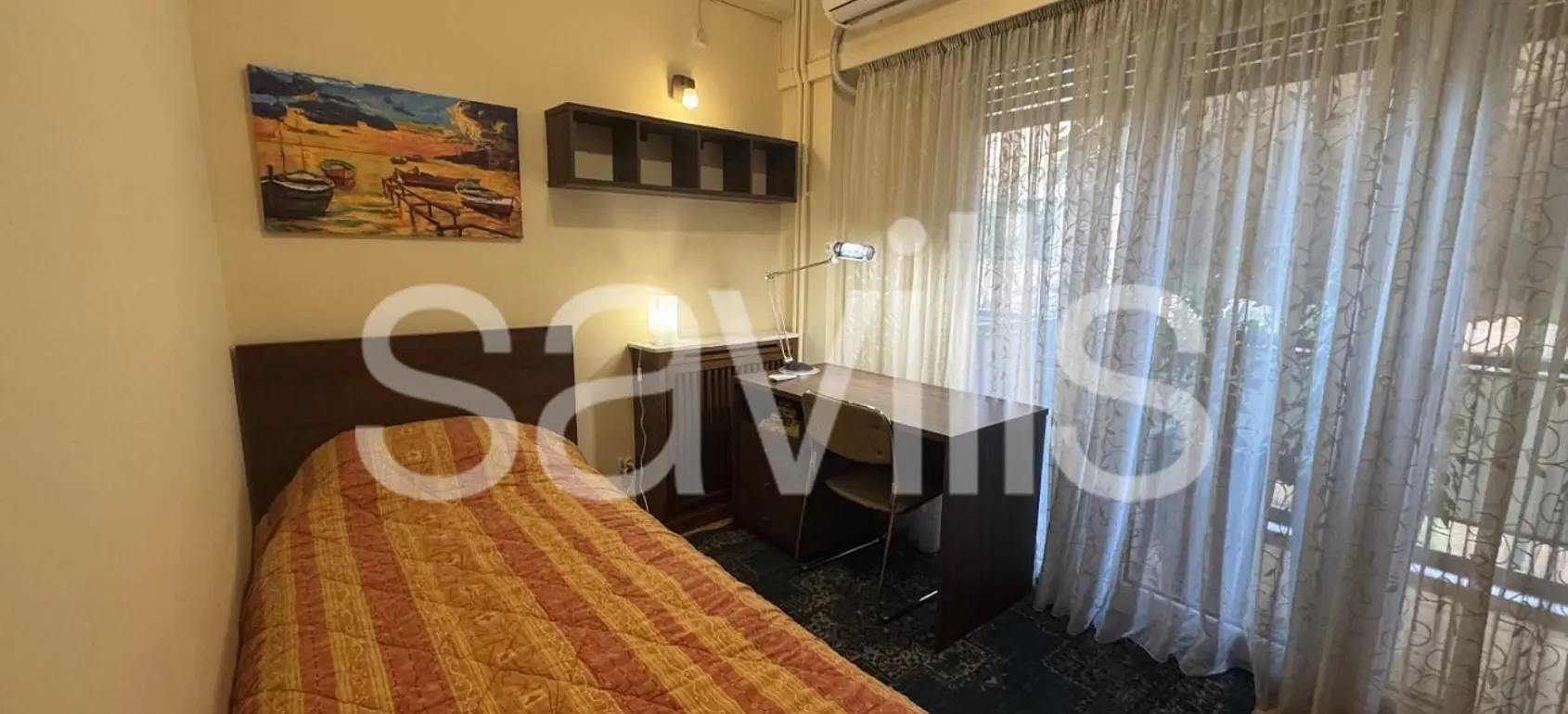 The apartment consists of the entrance area, a living room, an independent kitchen, 3 bedrooms, 1 bathroom, 1 wc. There is a front balcony, and also a smaller one at the back side. It has natural gas central heating (in operation), security door, aluminum frames with double glazing, mosquito frames, built-in electrical appliances (oven, hobs, refrigerator, washing machine laundry), 4 air condition inverters, alarm, solar water heater, automatic watering system on the front balcony, electric awnings and electric blinds on the facade. Suitable for residential or commercial use.