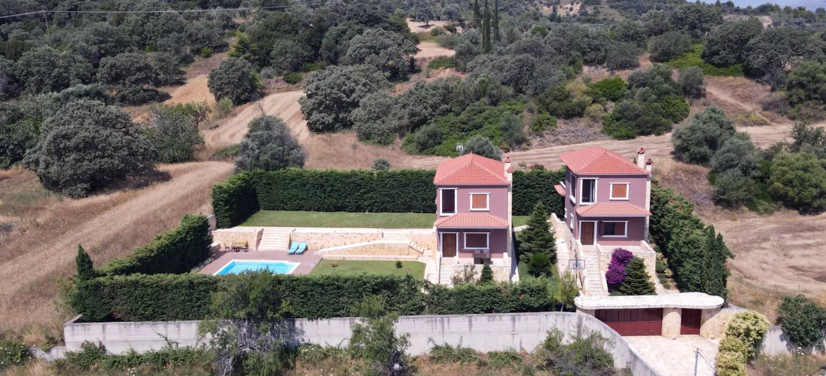 In a peaceful and green area of Avlonari, two exquisite maisonettes with a total surface of 290 sq.m. are available for sale, situated on a privately owned plot of 1,600 sq.m. The properties are developed on two levels and stand out for their luxurious character, refined architecture, and unobstructed views of the surrounding nature. The maisonettes consist of 4 bedrooms, 4 bathrooms, 2 fully equipped kitchens and 2 spacious living rooms with fireplaces. It also features an internal staircase and a functional layout that offers comfort and privacy. The outdoor area impresses with a large garden, swimming pool, two storage rooms, and two open garages, providing an ideal environment for family moments or entertaining guests. This property is ideal for permanent residence, vacation home and also professional or investment use (e.g. holiday rental). A home that combines quality, comfort, and the authentic beauty of the Greek countryside, offering a unique opportunity for those seeking a high-standard residence in nature.