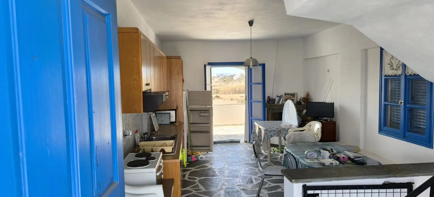 Beautiful Cycladic maisonette of 121 sqm that consists of three bedrooms and three bathrooms, a kitchen and a spacious living room with fireplace. The house has astonishing view. You can see the beaches of Agia Anna and Agios Prokopios and the boats that dock in the port of Naxos and Portara. The house is close to the airport, the city of Naxos and close to many beaches and amenities.