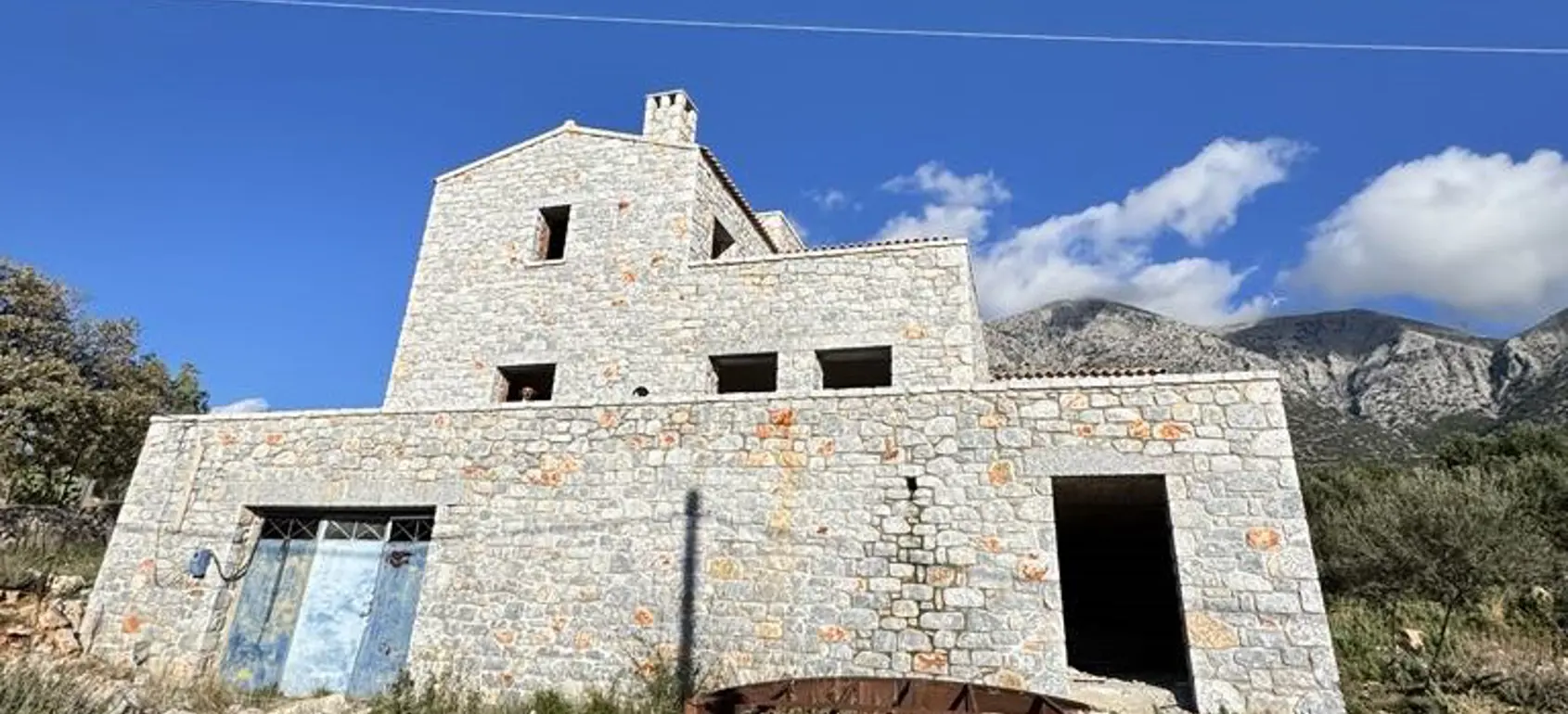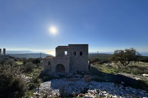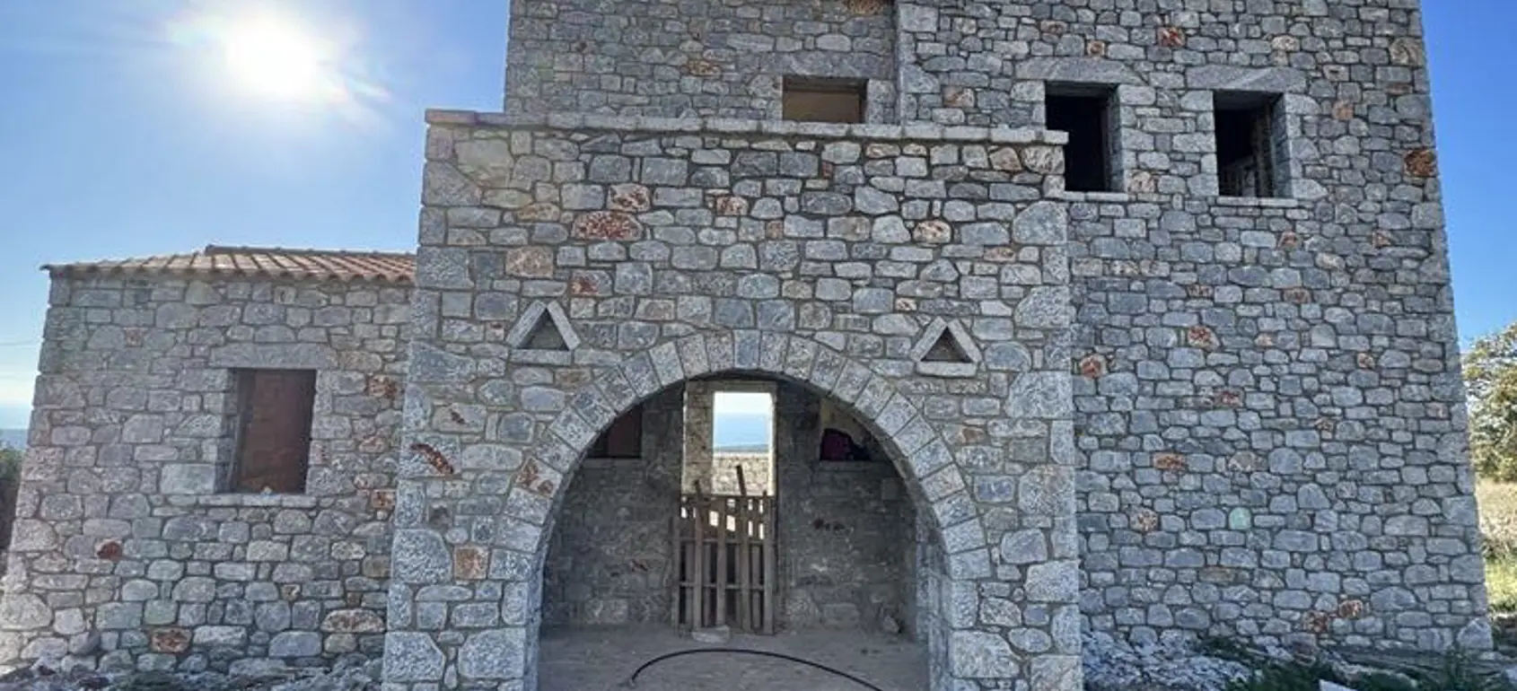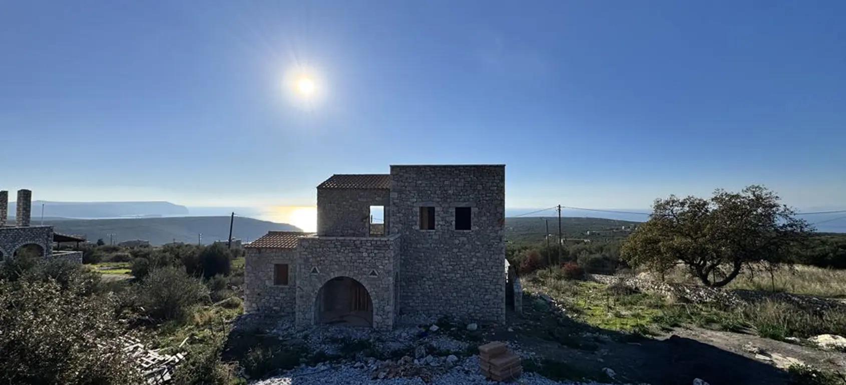Stone built villa of 320 sqm on a plot of 5,000 sqm with a unique view of the endless blue sea. The villa contains four bedrooms, two bathrooms and a kitchen. It is just 5 minutes from the unique beauty of the caves of Diros and 10 minutes from the beautiful historical Areopolis.