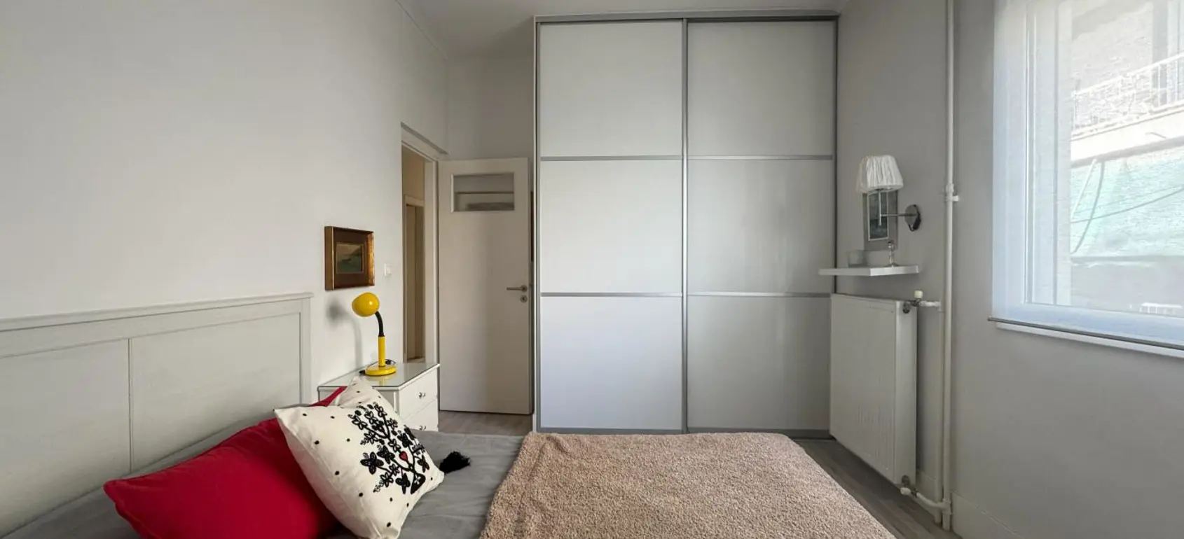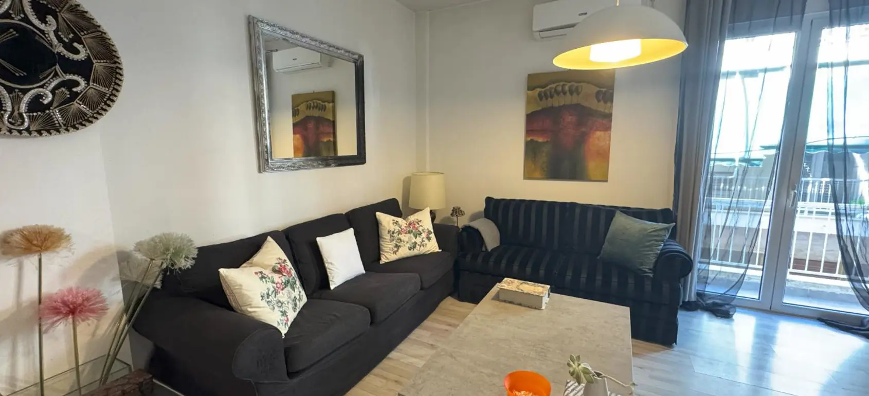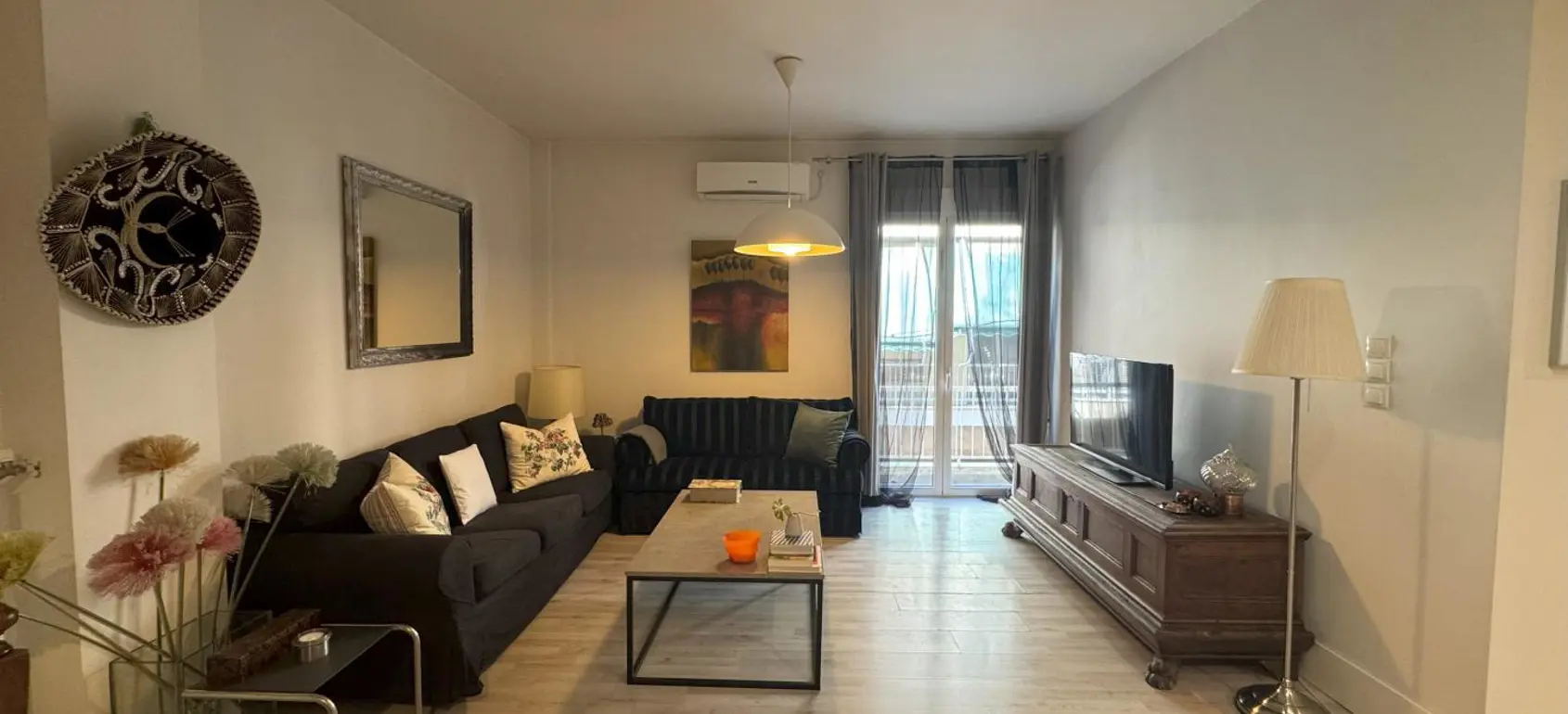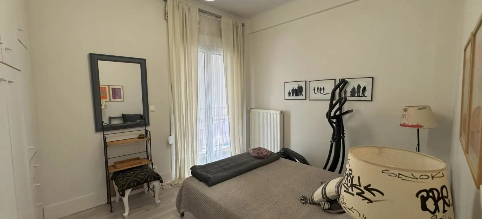 Beautiful apartment located in a quiet spot near Koukaki square. It consists of 2 comfortable bedrooms (with large wardrobes), 1 bathroom and 1 small WC, living room with fireplace and open plan comfortable kitchen. It has also narrow balconies on both sides (full length). It is renovated (plumbing, electrical, internal insulation, floors, bathroom, kitchen etc) in 2016. It is offered with all electrical appliances and fully furnished/equipped (on request). It’s location is unique because it is very close to the historic center of Athens and less than 10 minutes walk from Sygrou-Fix metro station.