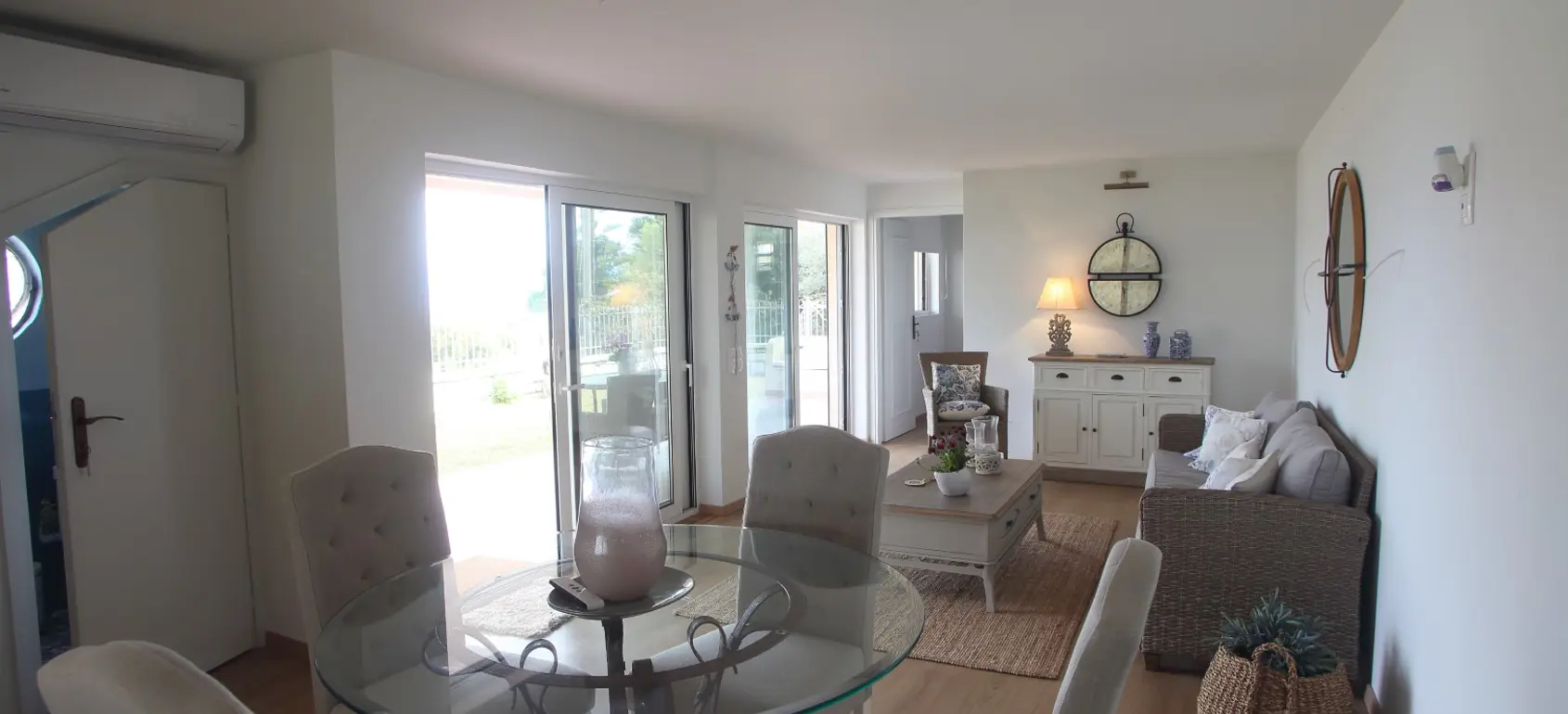 Beautiful two-level house with astonishing view to the sea. On the ground floor is the small space of 49 sqm which contains one bedroom, one bathroom, the living room and the kitchen. On the upper floor there is a space of 76 sqm which includes two bedrooms, bathroom and a living room with a kitchen. The best part is the terrace with unlimited view of the sea. Αt the front of the plot there is a beautiful garden and on the back side is the rest of the plot οn which an additional house can be built.