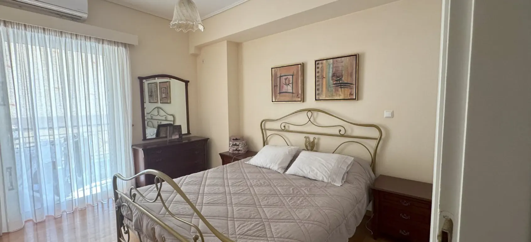 Fourth floor apartment of 100 square meters in Peiraiki. It consists of a spacious living room with fireplace, kitchen, three bedrooms, bathroom and wc. In addition, it has aluminum frames, double glazing and a security door. From the balcony you can admire the sea. The apartment also includes a parking space and a storage room. It is just a two-minute walk from the coastal road of Peiraiki.
