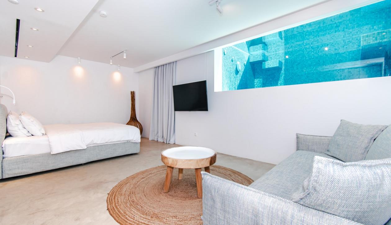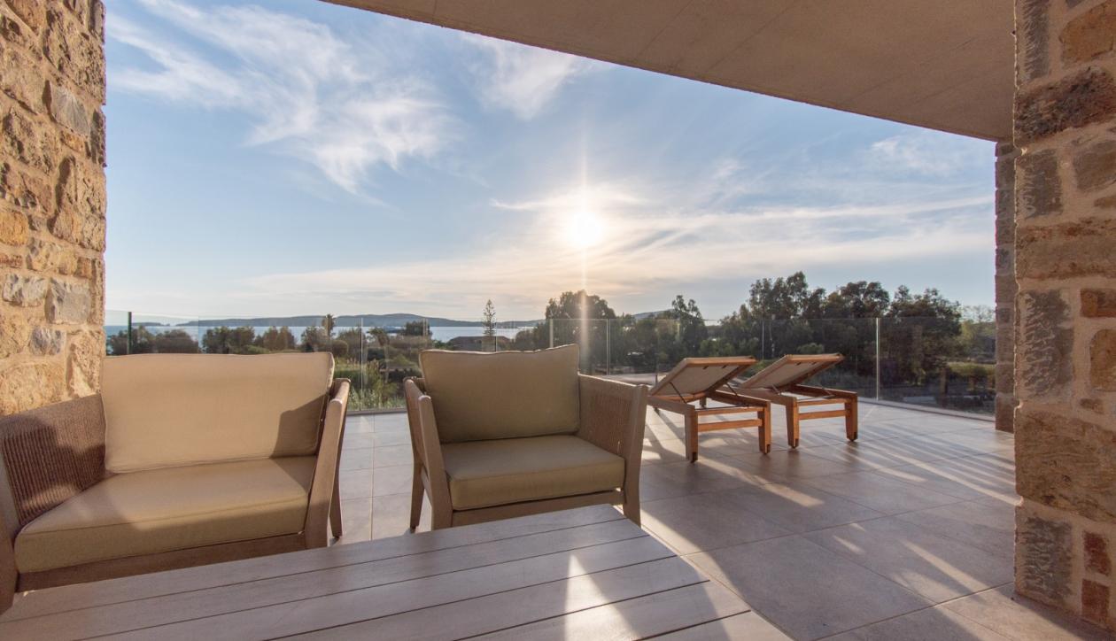 Nestled within an exclusive residential complex overlooking the scenic seaside village of Gialova, this elegant villa boasts panoramic views of the Ionian Sea, Navarino Bay, and the historic town of Pylos. Ideally situated, the property lies within walking distance of all essential amenities and just moments from four world-class, 18-hole championship golf courses. Offered fully furnished and equipped, the villa features a distinctive architectural highlight—an en suite bedroom uniquely illuminated by natural light filtered through the pool above, creating a serene and luxurious ambiance. Other amenities include private sauna, jacuzzi, parking area, private swimming pool.